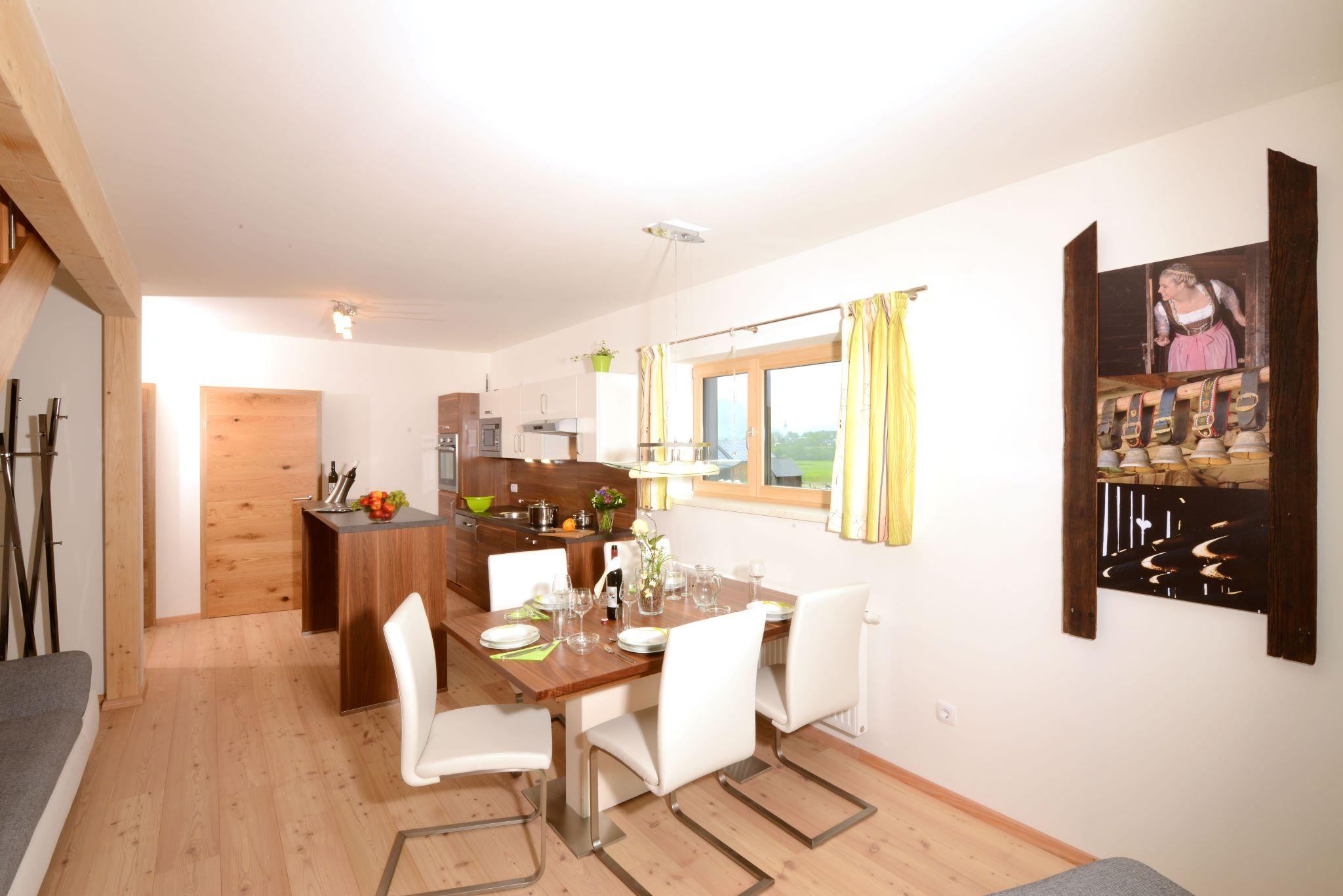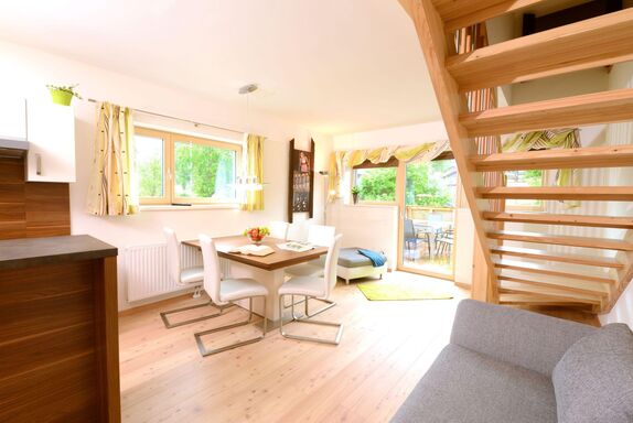 Traditionelle urige mit modernen Elementen; mit großzügiger Terasse zum Verweilen und Entspannen. Schwalbennest - ein besonderer Platz zum Zurückziehen. Das Appartement Schwalbennest befindet sich im ersten Stock und im Appartement befindet sich noch eine Stiege, welche in die Schlafräume führt.