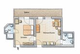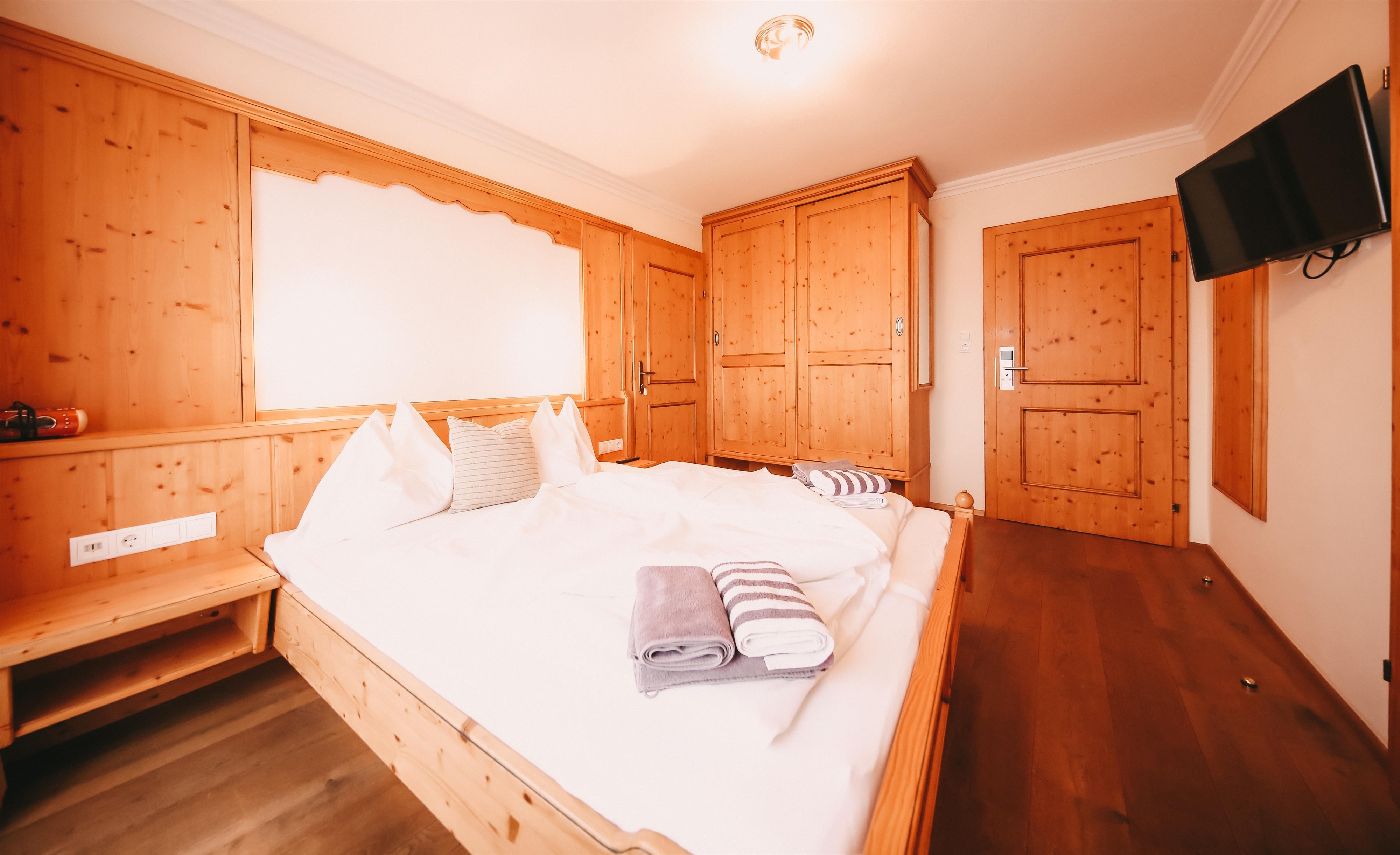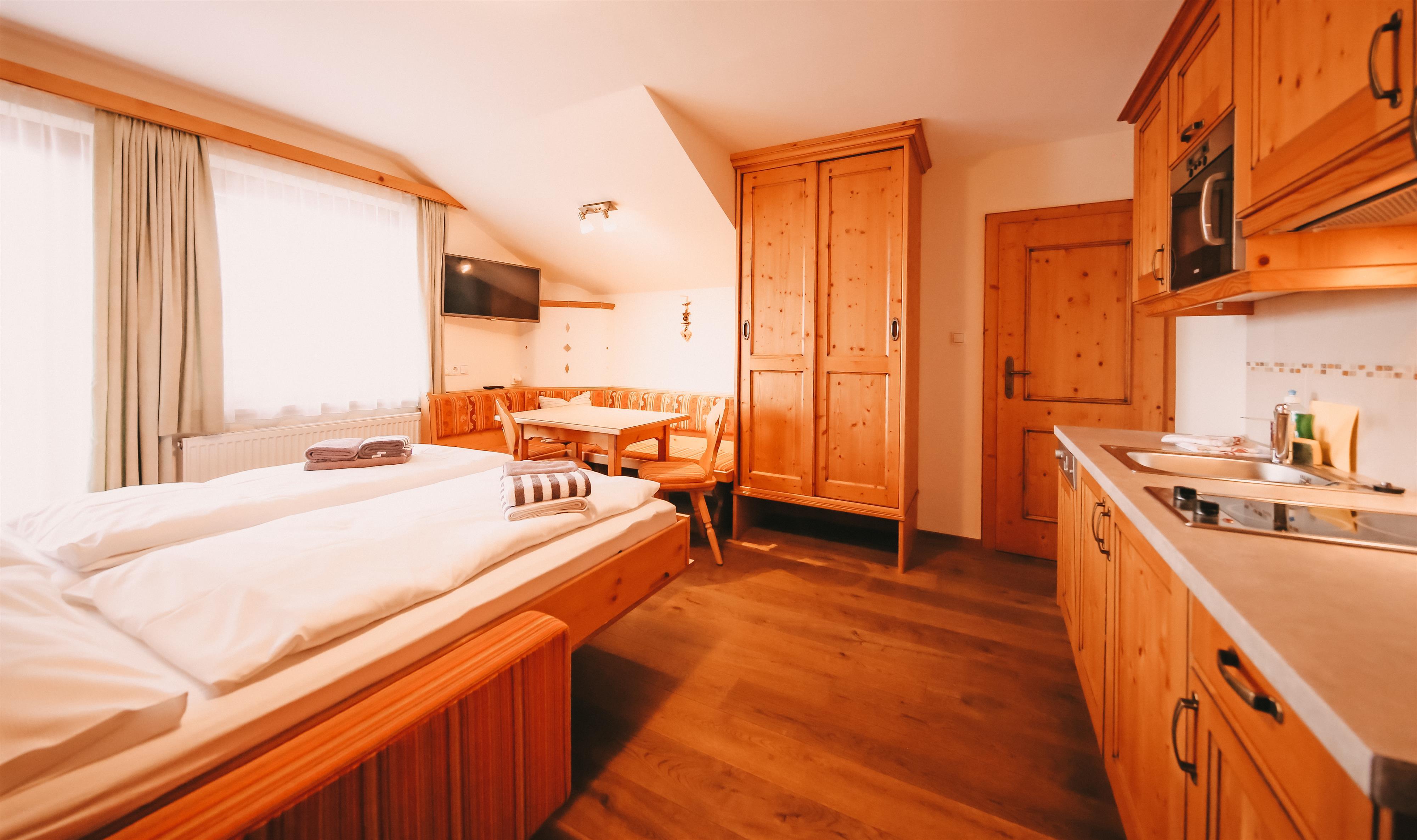 Appartement im Stammhaus mit einem Doppelzimmer und einem vollwertigem Klappbett für zwei Personen in der Wohnküche.