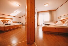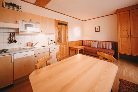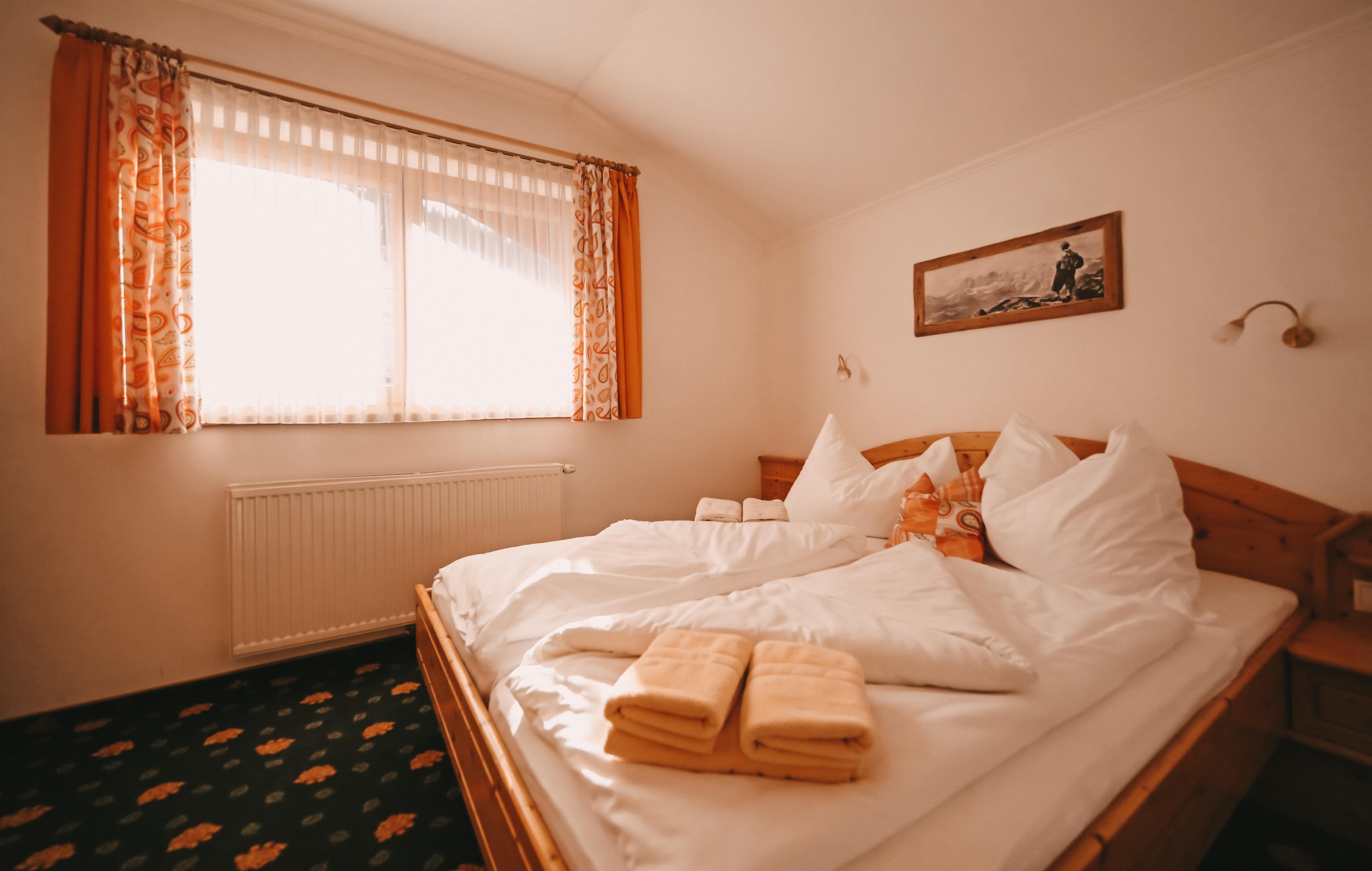 geräumiges Appartement im Stammhaus mit zwei Doppelzimmern. Wenn man das Sofa in der Wohnküche mitbenützt, bietes das Dachstein platz für bis zu 6 Personen. Ein Zusatbett in einem der Schlafzimmer ist auch noch möglich. Die zwei Balkone bieten einen wunderbaren Rundumblick zum Dachsteinmassiv.