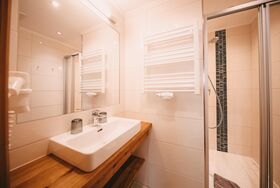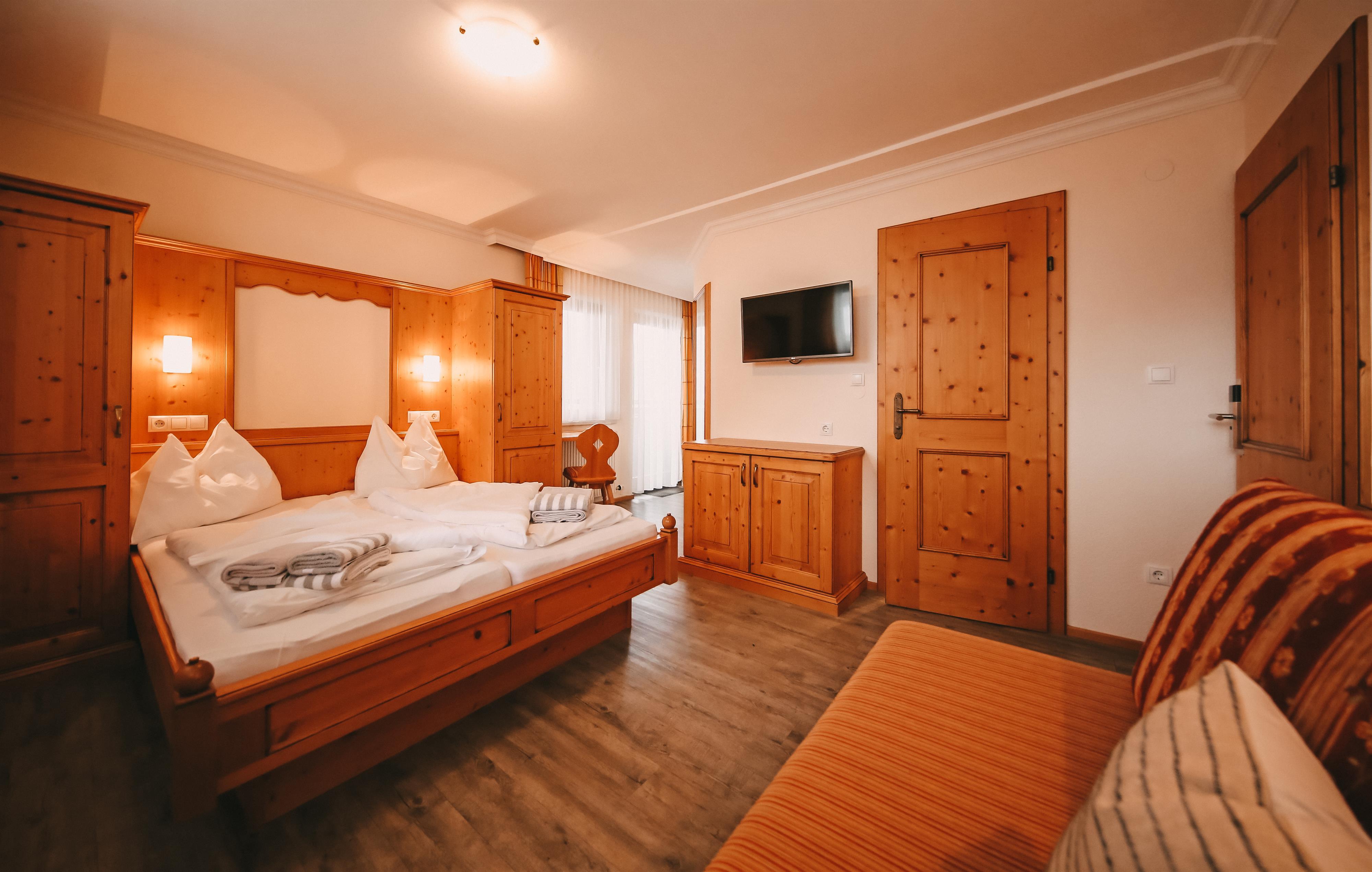 traditionelles Doppelzimmer im Stammhaus mit Balkon, Dusche und WC.