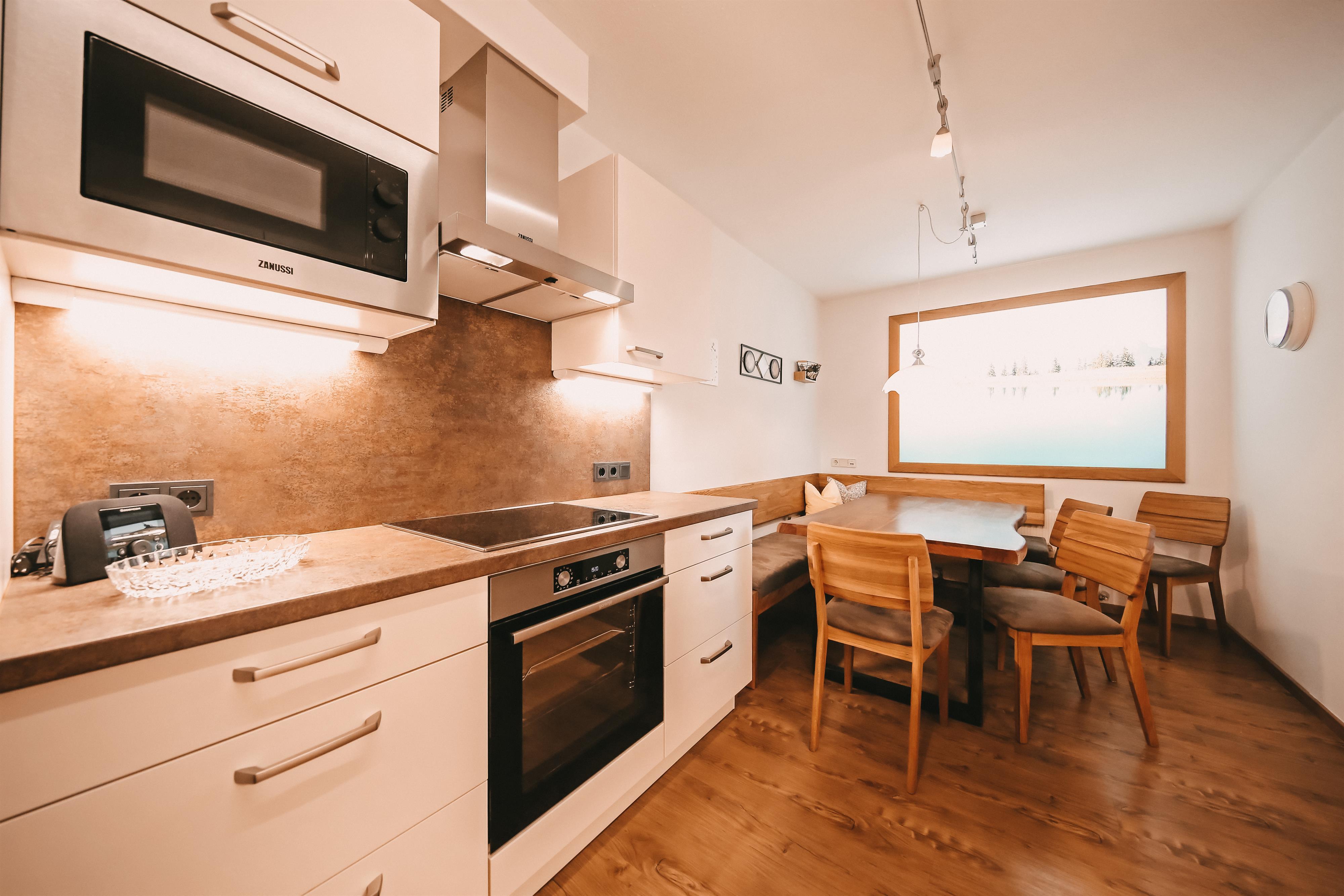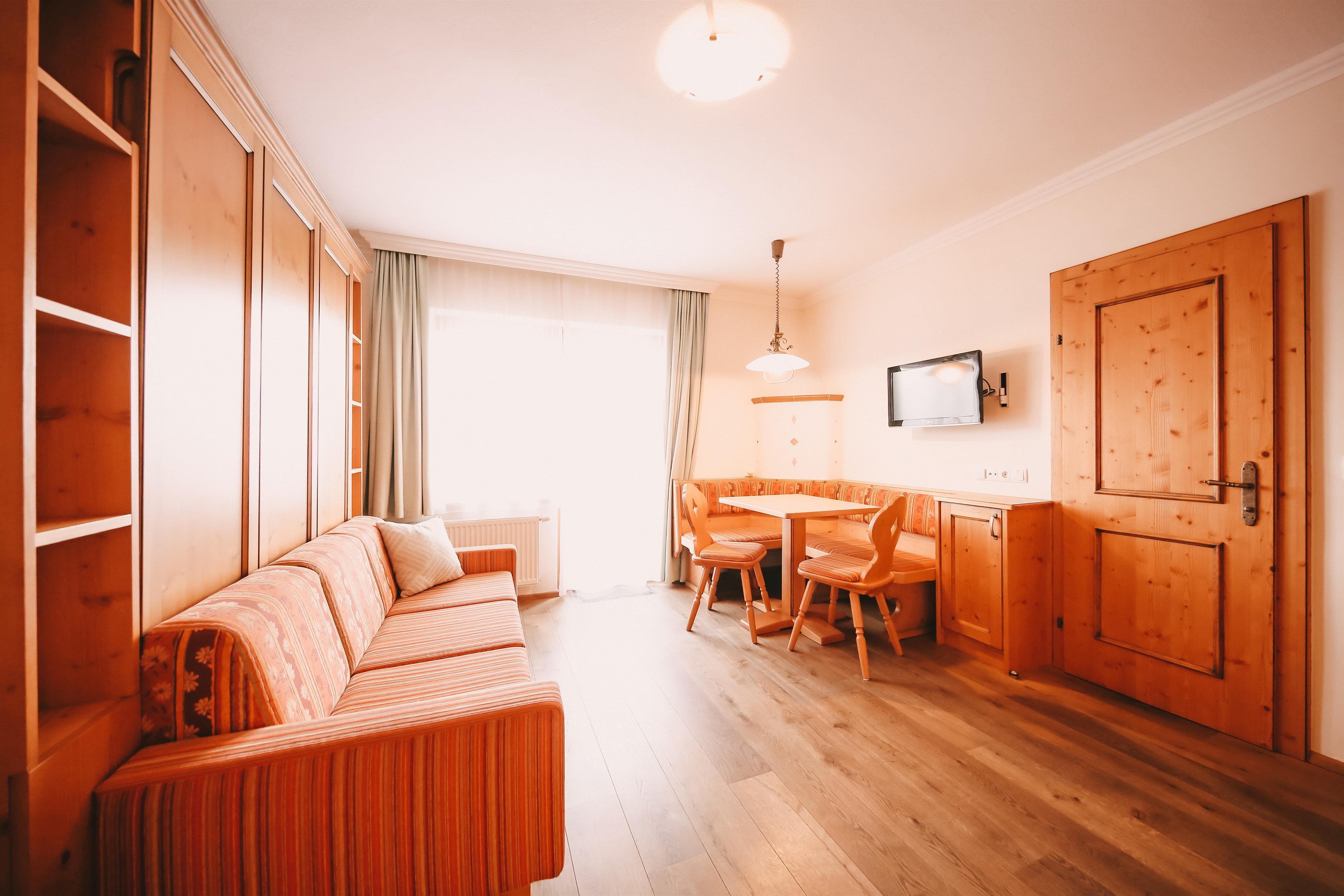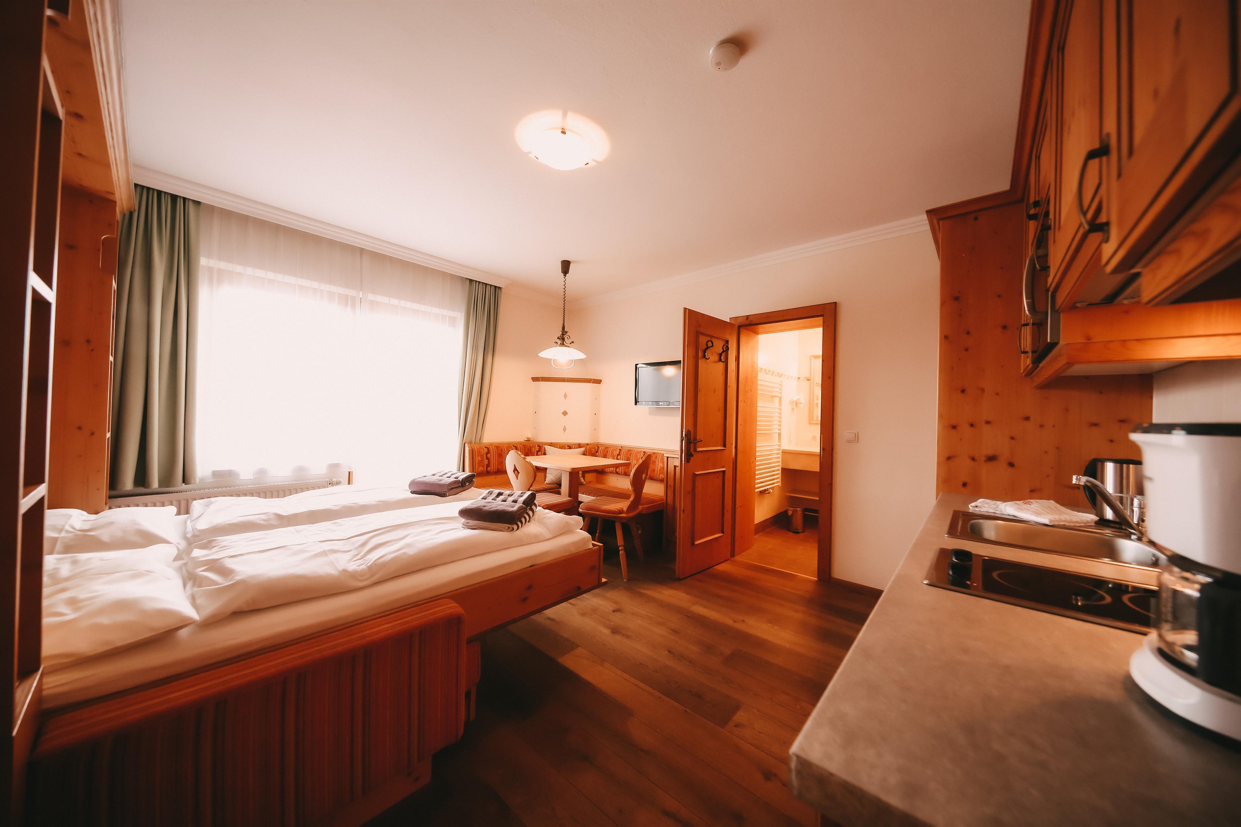 Appartement im Stammhaus mit einem Doppelzimmer und einem vollwertigem Klappbett für zwei Personen in der Wohnküche.