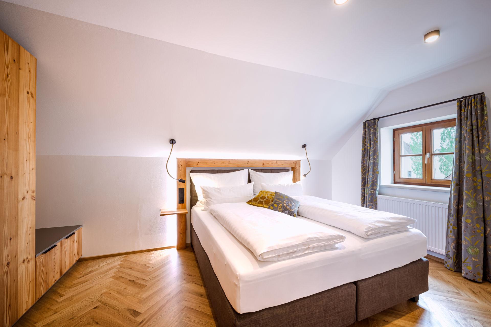 In unserem Schlosserhaus, einem Gebäude der Thorbäck Gut Apartments, erwarten Sie Ferienwohnungen der Extraklasse! Natürliche Materialien, viel Holz und eine stilvolle Auswahl edler Stoffe, Farben und Muster schaffen eine perfekte Balance zwischen stylischem Flair und behaglicher Gemütlichkeit. Und das Beste: In jedem Apartment wartet Ihre ganz private Sauna auf Sie - perfekt zur Entspannung nach einem ereignisreichen Urlaubstag!