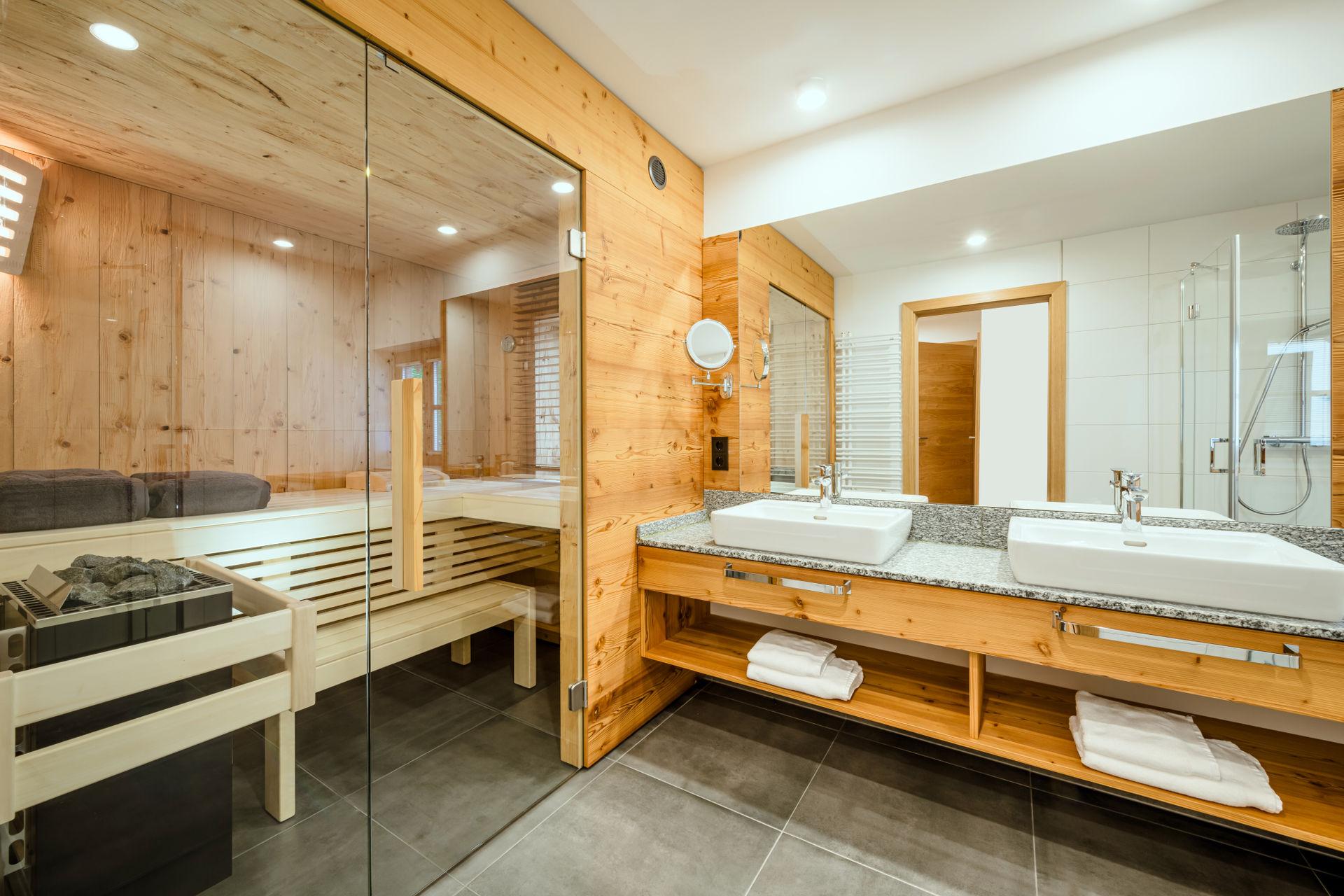 60 m² Wohnfläche für 2-4 Gäste, eigene Sauna im Apartment, Balkon mit Blick zum majestätischen Grimming