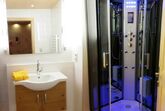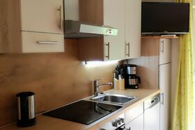 1 Ferienwohnung für 2 Personen, 45 qm Wohnfläche, 1 Schlafzimmer, Wohnraum, Küche mit Essecke, Bad mit Dusche.