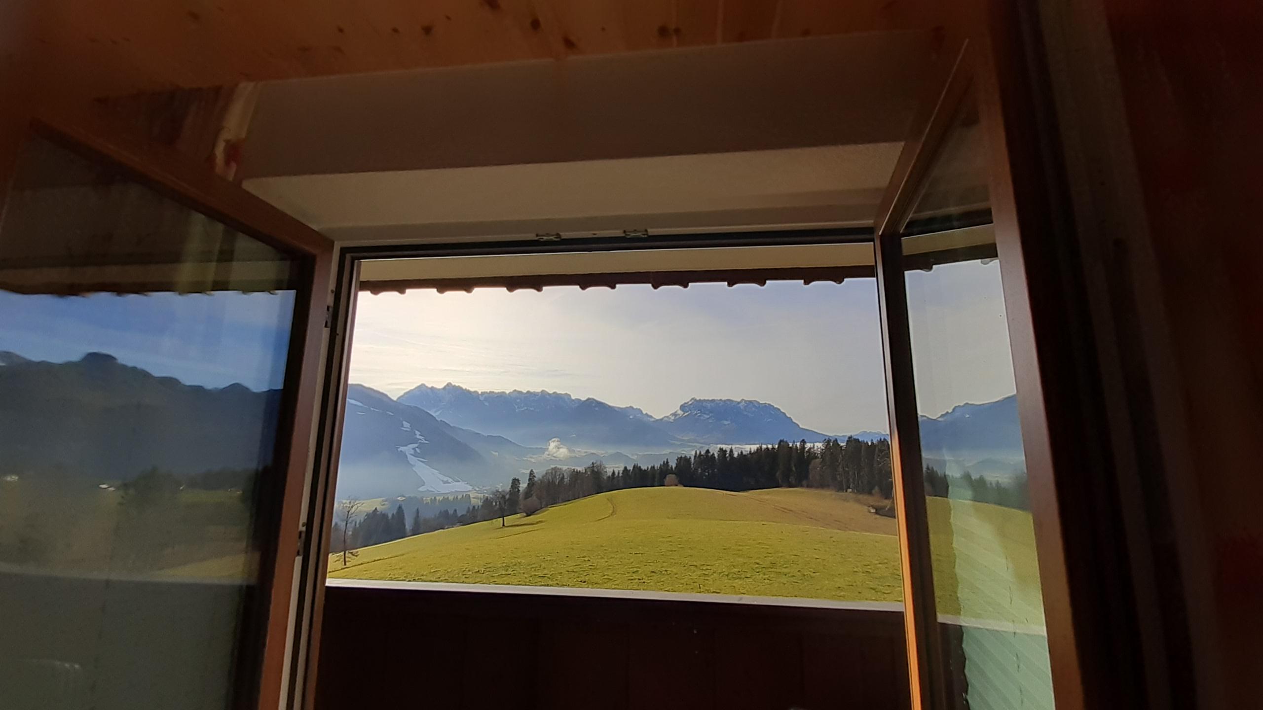 großer Eckbalkon zur Südwestseite mit freiem Blick zum Kaisergebirge und nordseitig Blick Geigeigelstein und Taubensee
