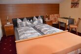 Standard Doppelzimmer zur Straßenseite gelegen mit Dusche/WC, Balkon und SAT-TV mit LCD-Fernseher.