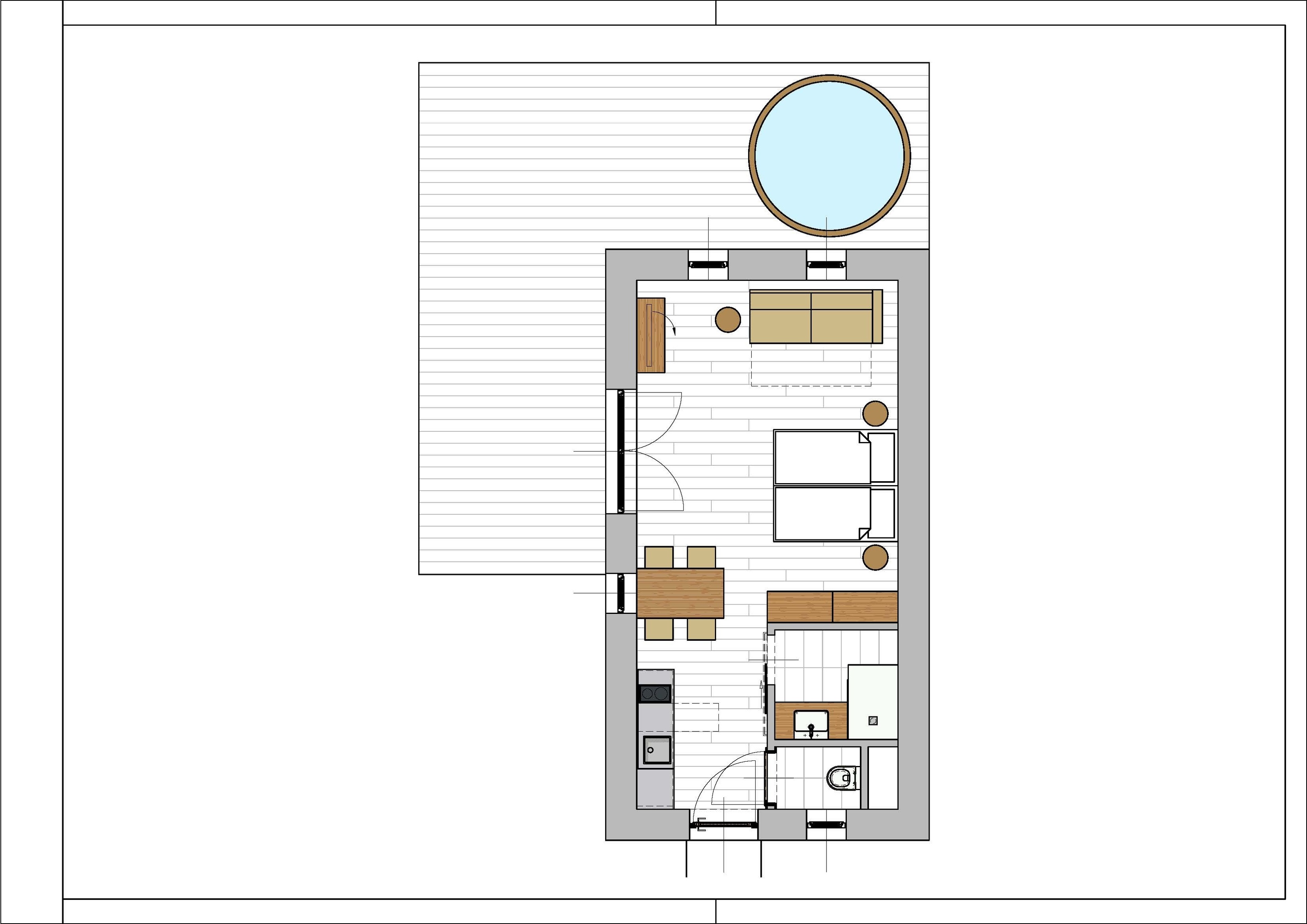 Unsere Winzerstöckl bieten auf 40 m² ein Wohn/Schlafzimmer, ein Badezimmer und eine Küchenzeile.