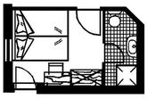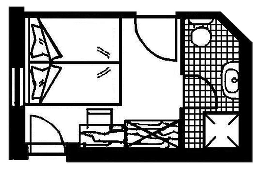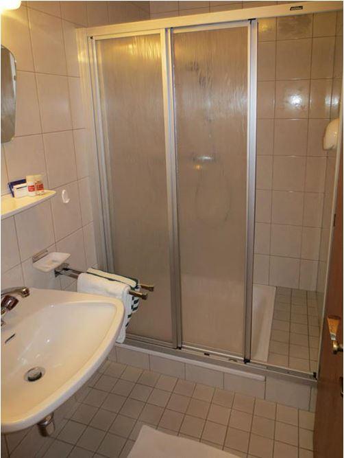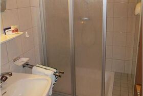 Kleines Doppelzimmer im 1. Stock, ausgestattet mit einem großen französischen Bett, ca. 12 m² groß, mit Dusche/WC, Kabel-Flat-TV in HD, Radio,Wireless-Lan, Safe und Balkon !