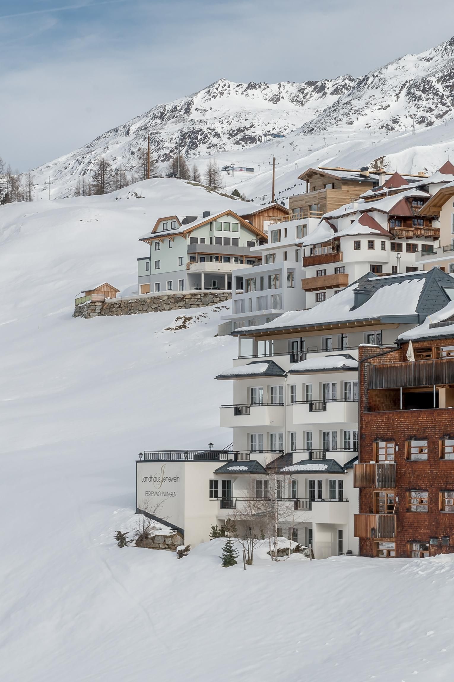 Bei Ihrer Ankunft sehen Sie nur die Rückseite während sich die Schokoladenseite mit den Balkonen auf die ruhige Sonnenseite erstreckt. Von dieser Seite aus umfasst das Haus mehrerer Etagen - allesamt mit ungestörtem Blick auf die herrlichen Berge. Unser Haus ist am Ortsanfang in freier Hanglage gelegen. Man braucht ca. 5-7 Minuten ins Zentrum bzw. zum Hotel Jenewein. In unserem Landhaus Jenewein befinden sich Appartements für 2, 4 und 6 Personen, ein Lift und eine Saunalandschaft.