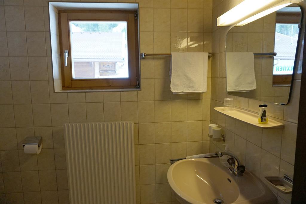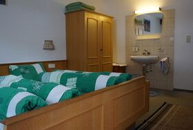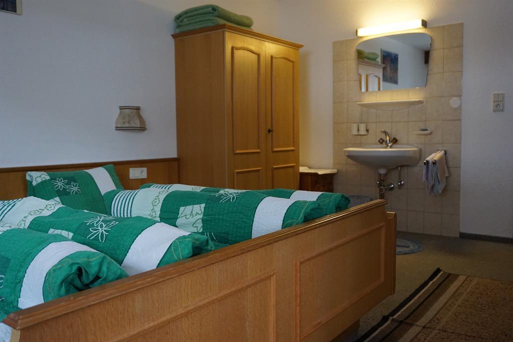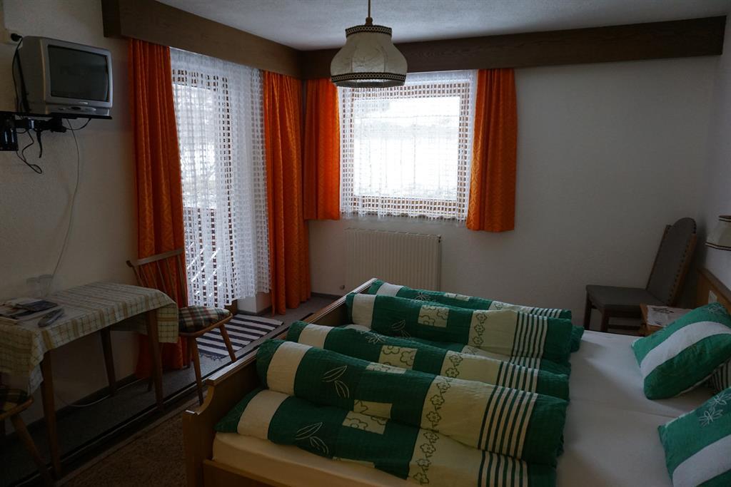 Low-Budget-Zimmer: Doppelzimmer mit Fließwasser; Badezimmer: Etagen-Dusche/WC am Gang (benützt wird dieses von einem weiteren Zimmer); Kabel-TV und Balkon. Getrennte Betten auf Anfrage möglich. Größe: ca. 18 m².