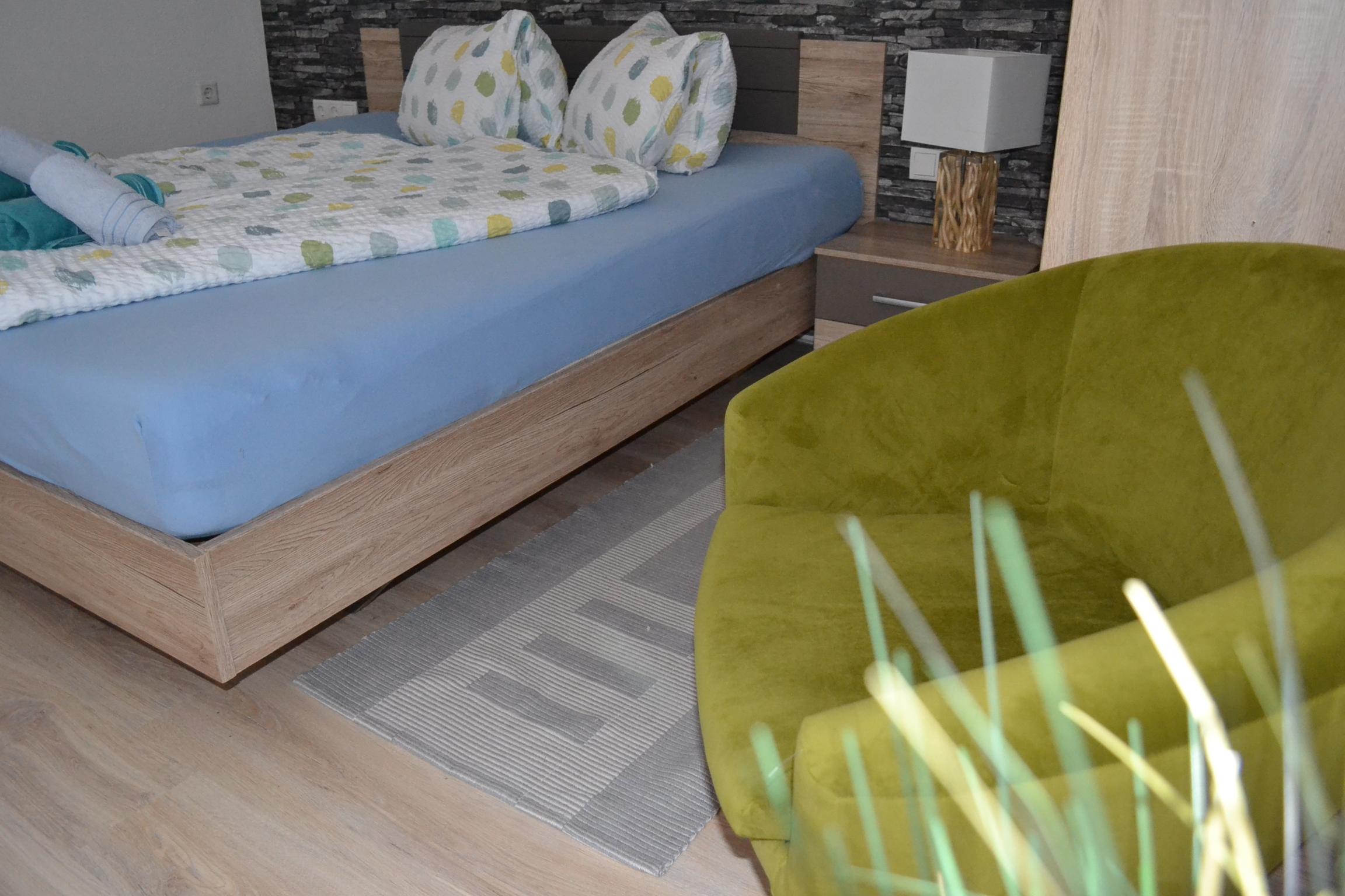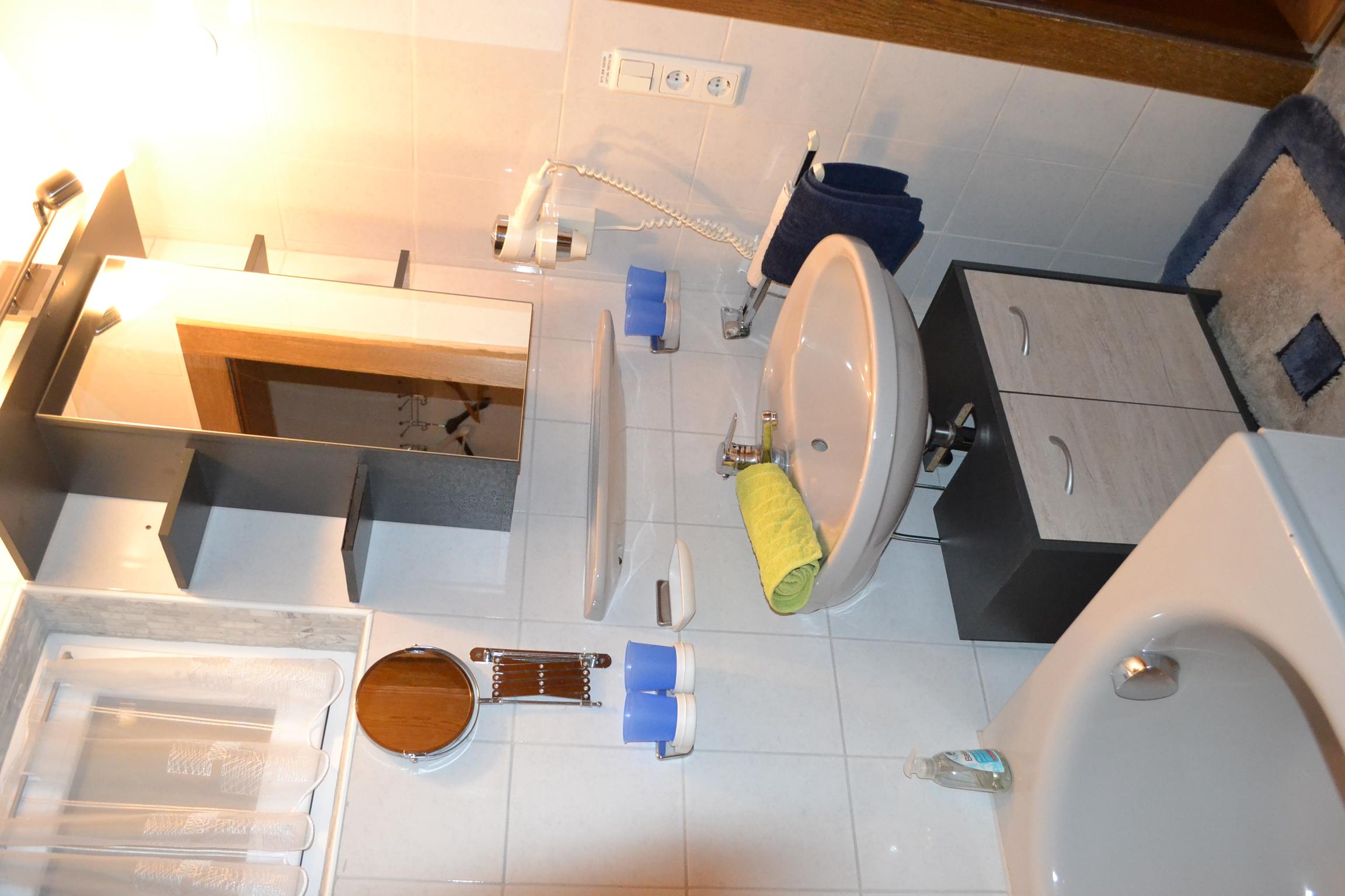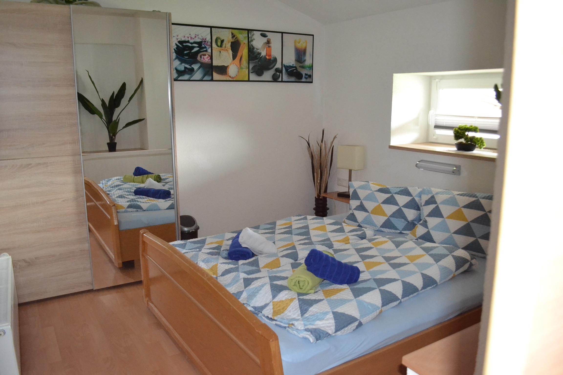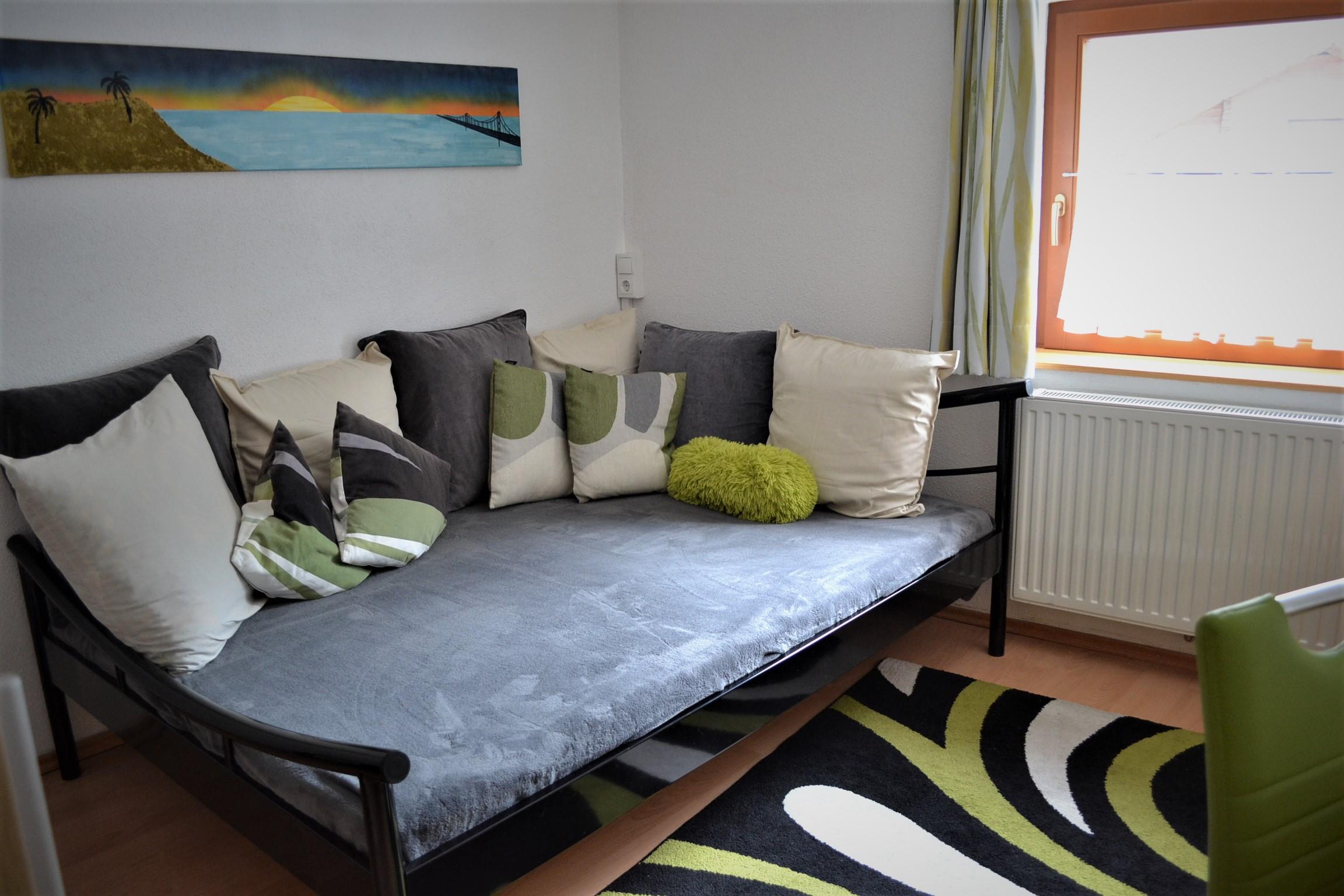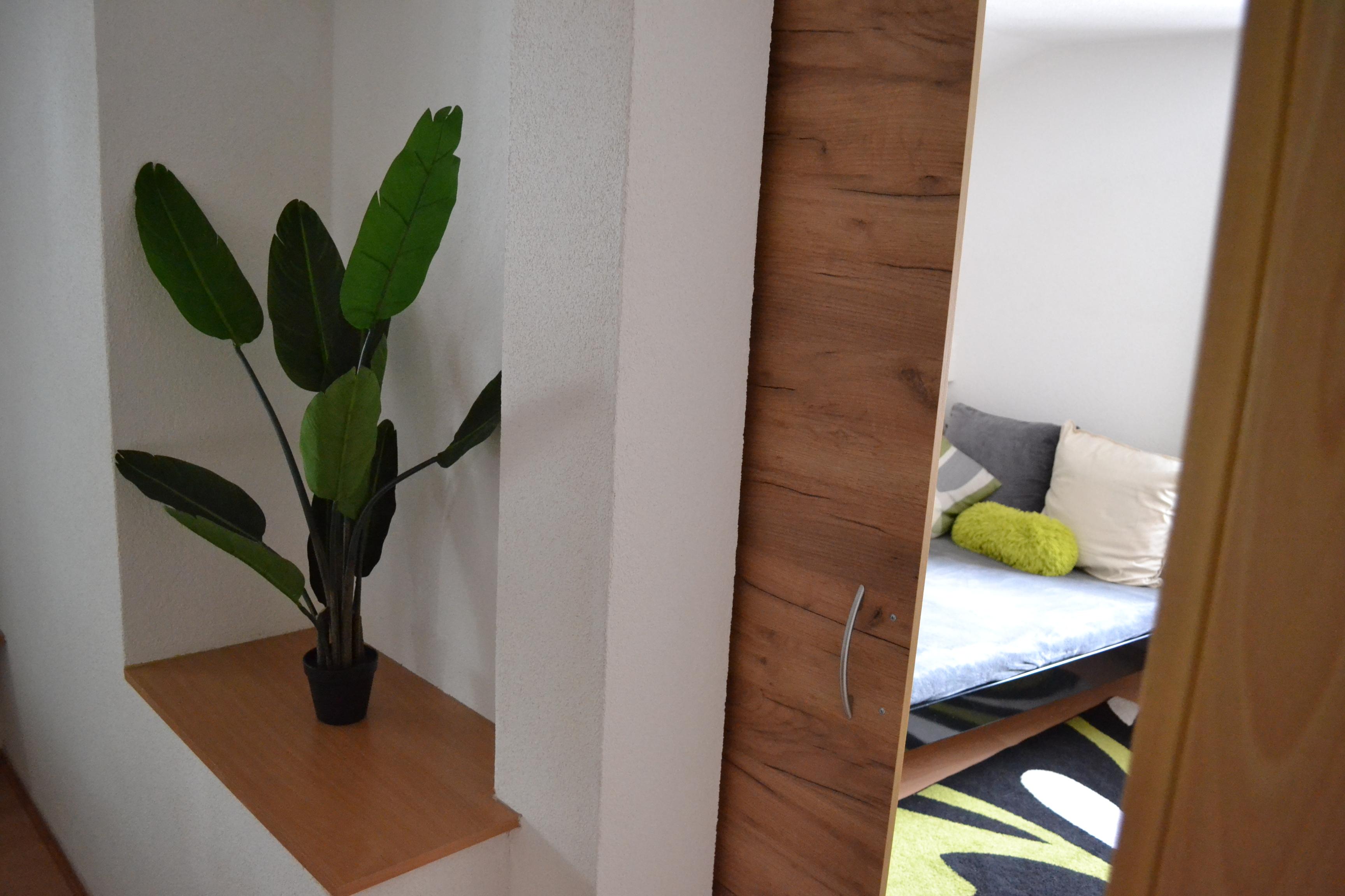 Großes Appartement (ca. 60 m²) besteht aus einem Doppelzimmern mit Wlan-TV, einem weiteren Doppelzimmer, dieses Doppelzimmer ist mit einer Schiebetür von einem Raum mit gemütlicher Wohnlandschaft (Schlafmöglichkeit für die 5. Person) mit Wlan-TV und Schreibtisch abgetrennt, einem Badezimmer mit Badewanne, Dusche/WC, WC separat, großzügige Wohnküche (Cerankochfeld, Backofen, Geschirrspüler, Wasserkocher, Filter-Kaffeemaschine und Tab (Senseo) -Kaffeemaschine, Kühlschrank/Gefrierfach, Mikrowelle, Grundausstattung mit Zucker, Salz, Kaffee usw.) mit TV. Zugang zum möblierten Balkon von einem der Doppelzimmer und der Wohnküche.
