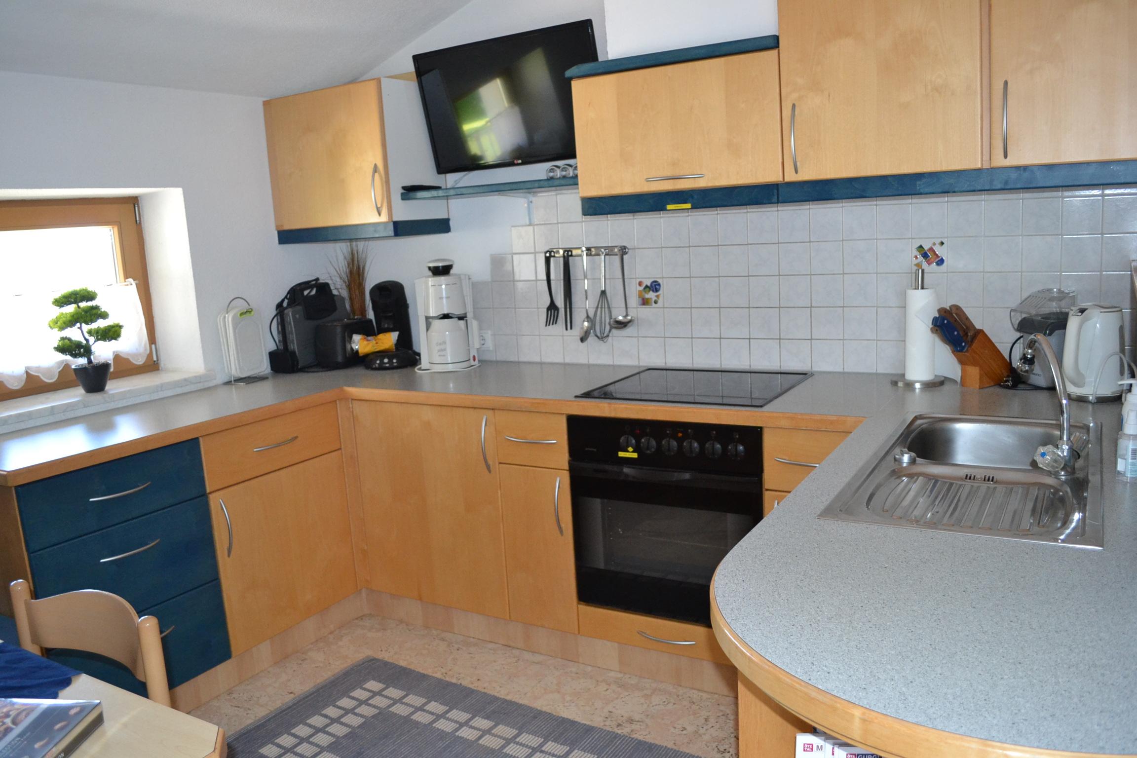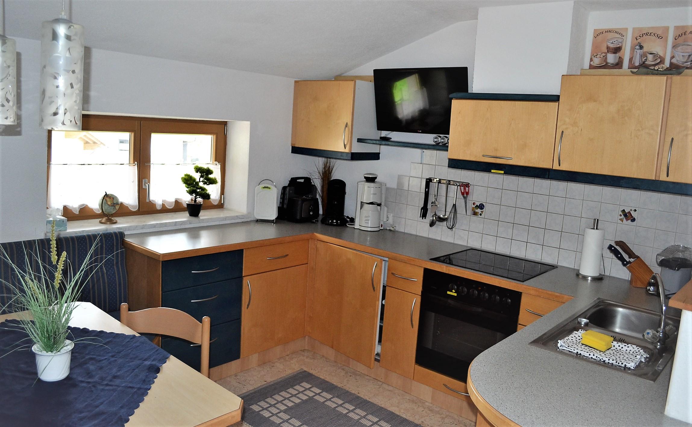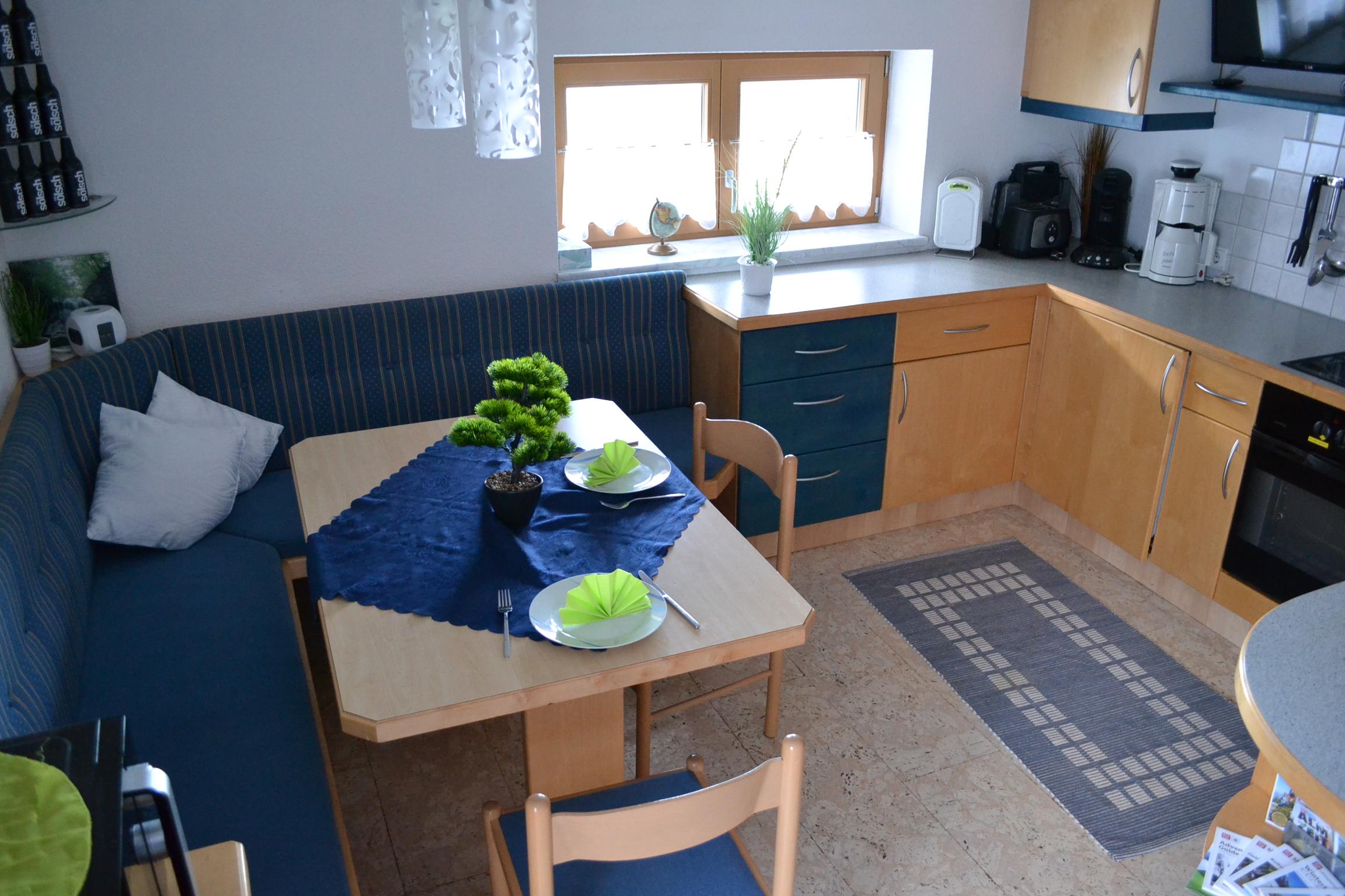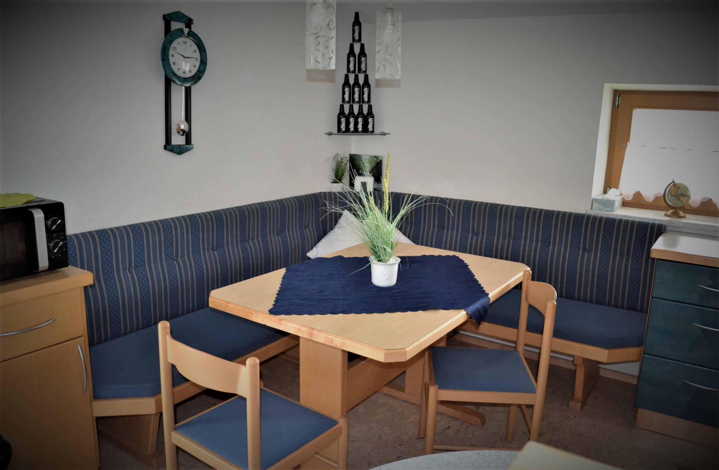 Großes Appartement (ca. 60 m²) besteht aus einem Doppelzimmern mit Wlan-TV, einem weiteren Doppelzimmer, dieses Doppelzimmer ist mit einer Schiebetür von einem Raum mit gemütlicher Wohnlandschaft (Schlafmöglichkeit für die 5. Person) mit Wlan-TV und Schreibtisch abgetrennt, einem Badezimmer mit Badewanne, Dusche/WC, WC separat, großzügige Wohnküche (Cerankochfeld, Backofen, Geschirrspüler, Wasserkocher, Filter-Kaffeemaschine und Tab (Senseo) -Kaffeemaschine, Kühlschrank/Gefrierfach, Mikrowelle, Grundausstattung mit Zucker, Salz, Kaffee usw.) mit TV. Zugang zum möblierten Balkon von einem der Doppelzimmer und der Wohnküche.