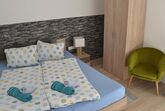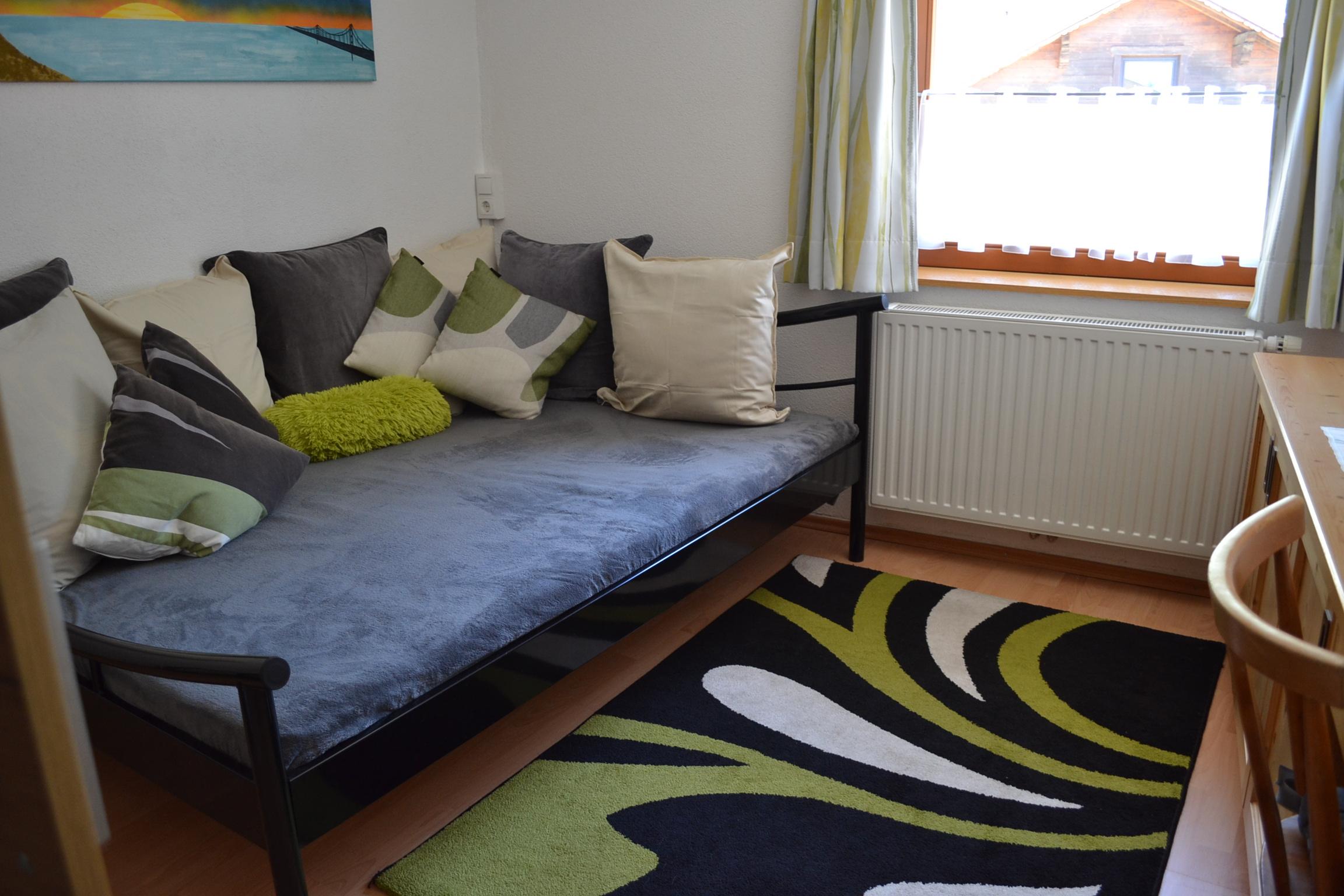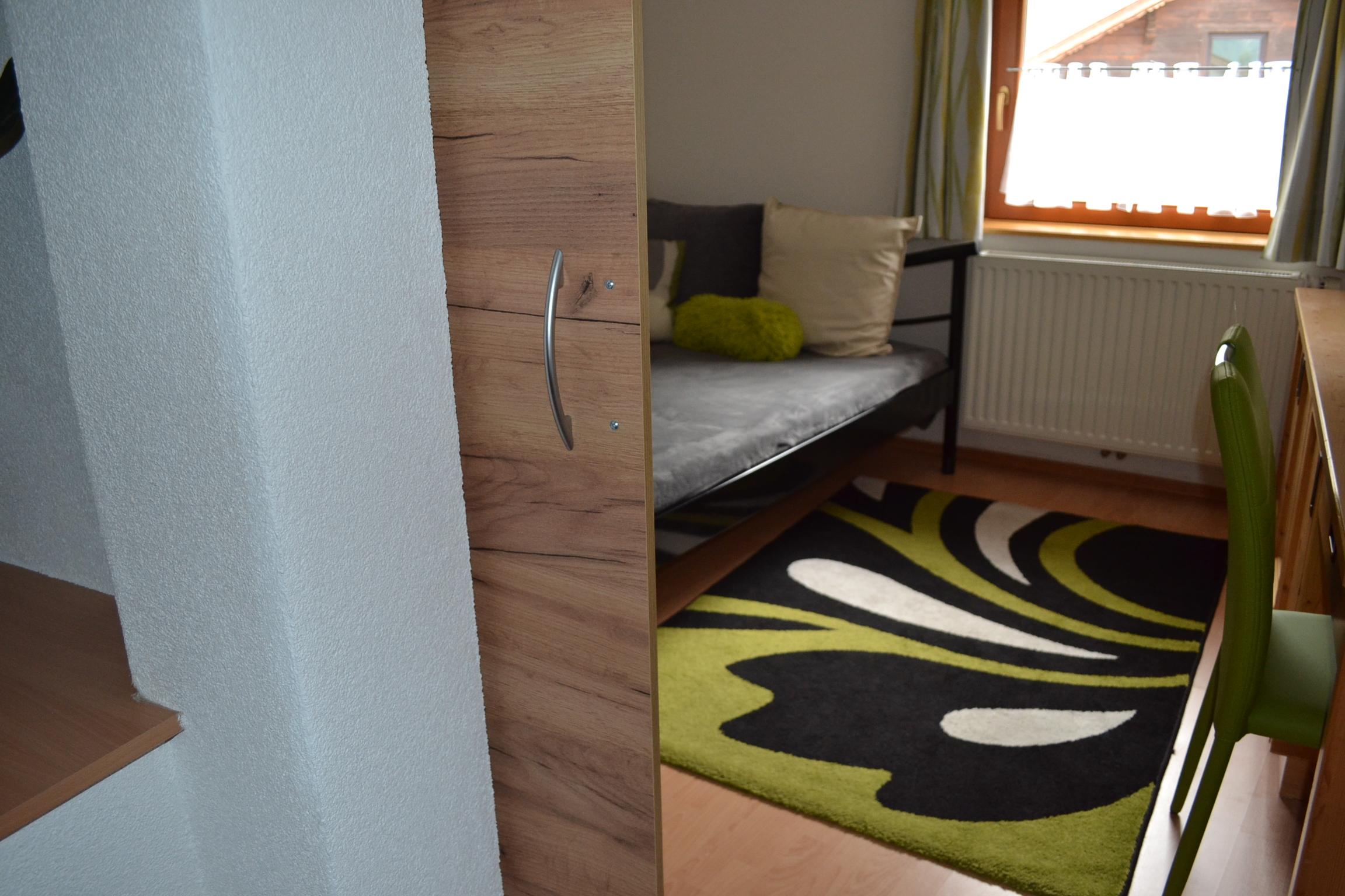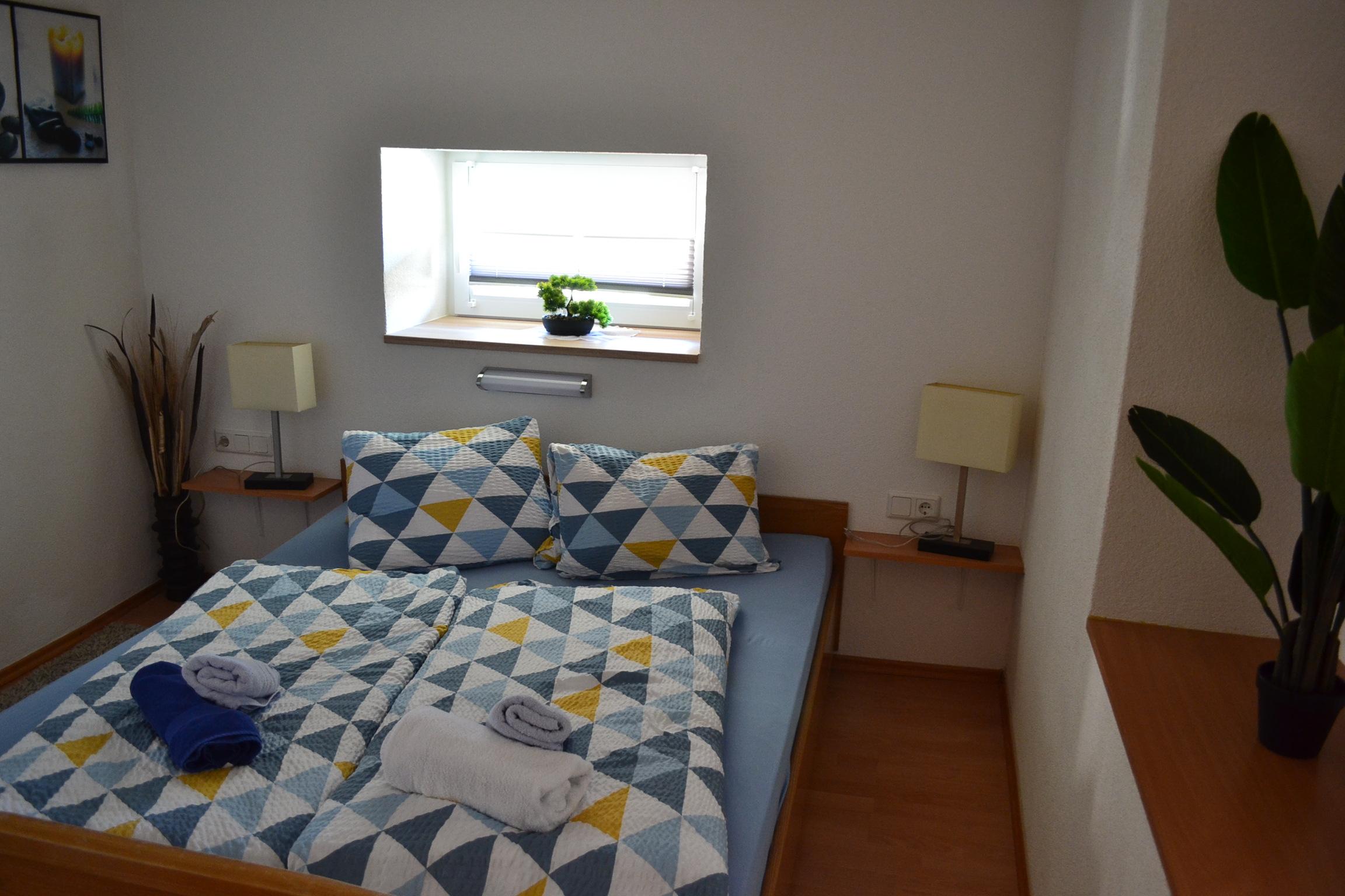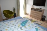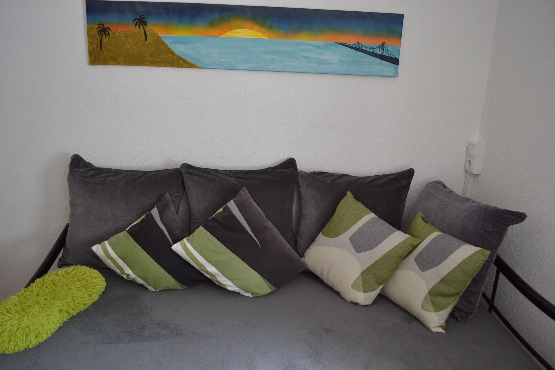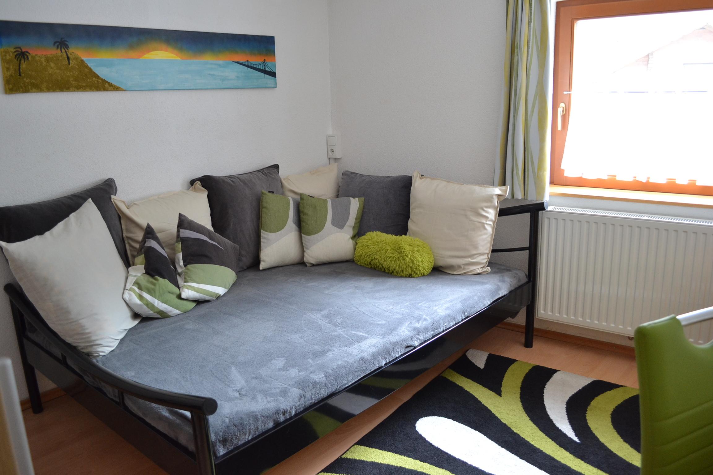 Großes Appartement (ca. 60 m²) besteht aus einem Doppelzimmern mit Wlan-TV, einem weiteren Doppelzimmer, dieses Doppelzimmer ist mit einer Schiebetür von einem Raum mit gemütlicher Wohnlandschaft (Schlafmöglichkeit für die 5. Person) mit Wlan-TV und Schreibtisch abgetrennt, einem Badezimmer mit Badewanne, Dusche/WC, WC separat, großzügige Wohnküche (Cerankochfeld, Backofen, Geschirrspüler, Wasserkocher, Filter-Kaffeemaschine und Tab (Senseo) -Kaffeemaschine, Kühlschrank/Gefrierfach, Mikrowelle, Grundausstattung mit Zucker, Salz, Kaffee usw.) mit TV. Zugang zum möblierten Balkon von einem der Doppelzimmer und der Wohnküche.