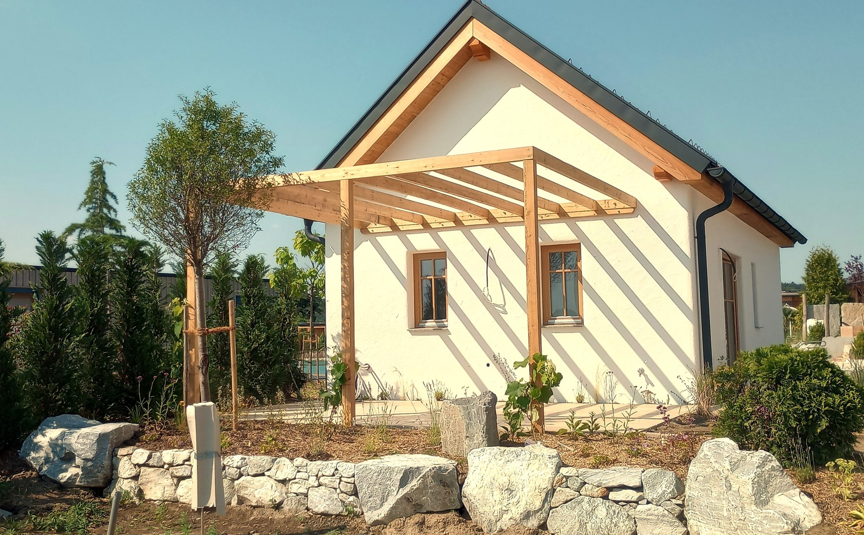 Wenn Sie schon immer einmal inmitten eines Weingartens Urlaub machen wollten, dann sind Sie in unseren gemütlichen Winzerstöckl Chalets genau richtig. Die Häuser sind harmonisch in einen privaten kleinen Winzergarten eingefügt und haben einen direkten privaten Zugang zum Gartensee. Die Anreihung der Häuser erinnert an eine klassische Kellergasse und auch die typischen Farben und Materialien des Weinbaues finden sich in den Häusern wieder. Die Genusshäuser bilden den idealen Ausgangspunkt für Weintouren in und rund um Langenlois.