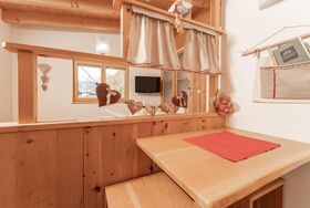 Ihr Doppelzimmerim Dachgeschoss hat 46 m² und verfügt über 1 Schlafraum mit Zirbenholz-Doppelbett, Bad DU/WC, großer Wohnraum mit Sitzecke, Kitchenette und Schlafsofa (für 2 Kinder) und Balkon. Dieses Zimmer hat einen direkten Zugang zum SPA & Wellness Bereich.