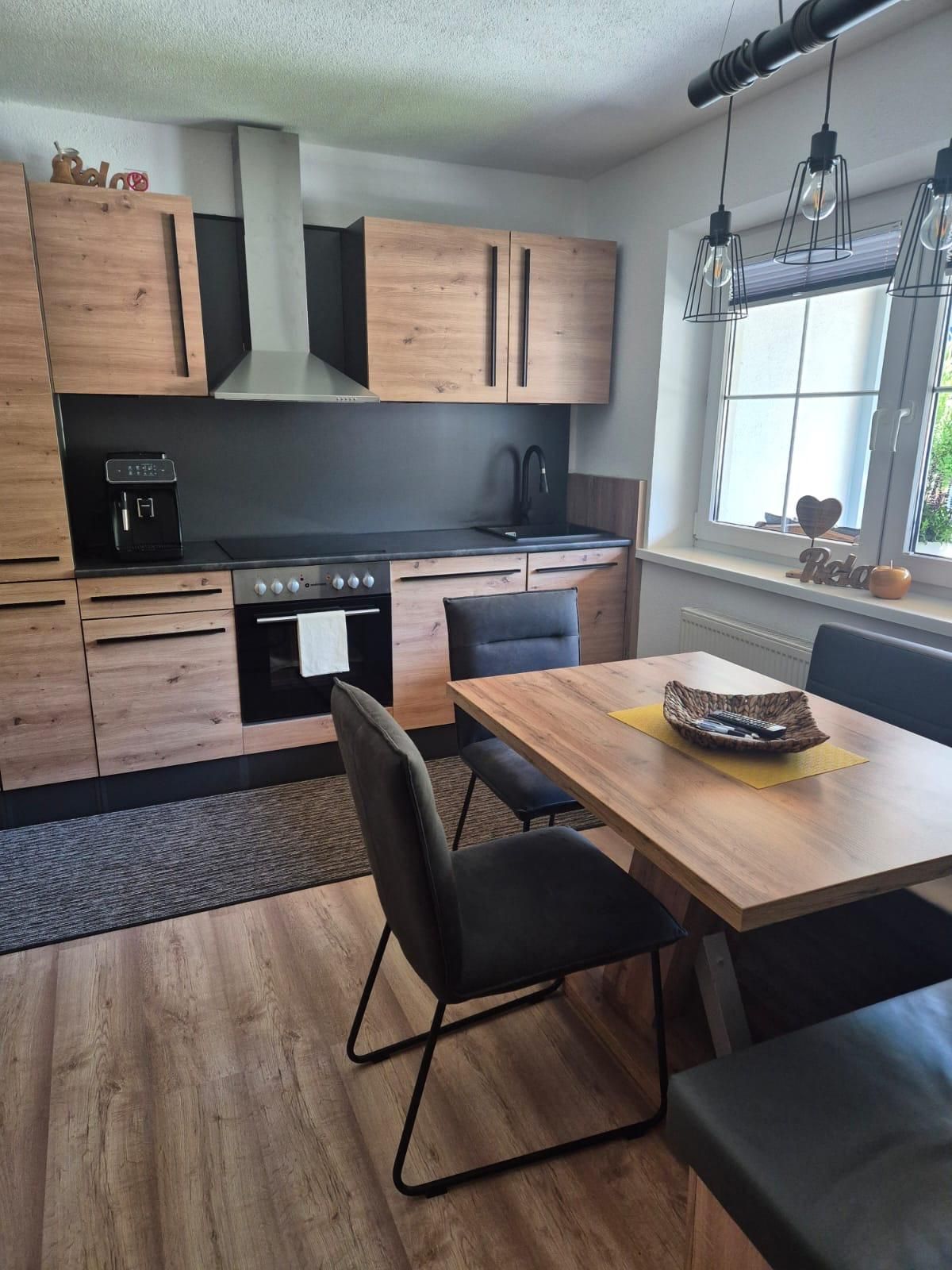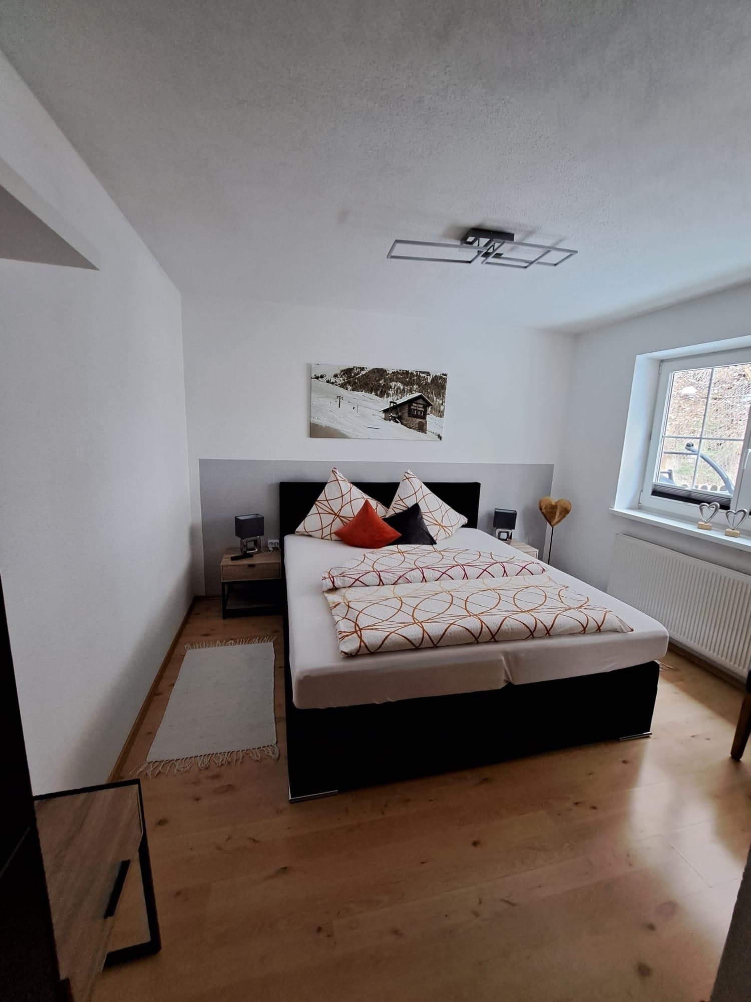 Modern ausgestattes Apptartement Nederkogl mit geräumiger und vollausgestatteter Wohnküche (Kaffeemaschine, E-Herd, Kühlschrank uvm.), Kabel-TV, Radio und 2 Doppelzimmer mit jeweils einem Badezimmer mit Dusche/WC (das 2. Schlafzimmer befindet sich ein Stockwerk höher). Größe: ca. 45 m².