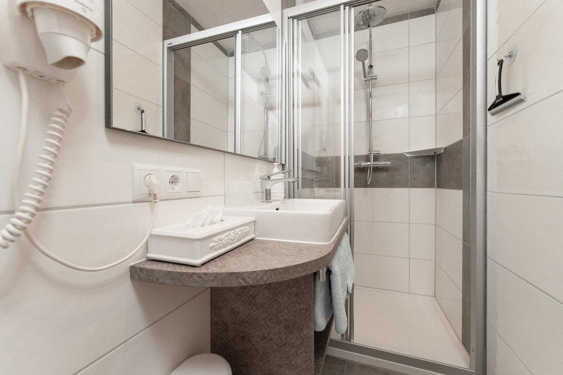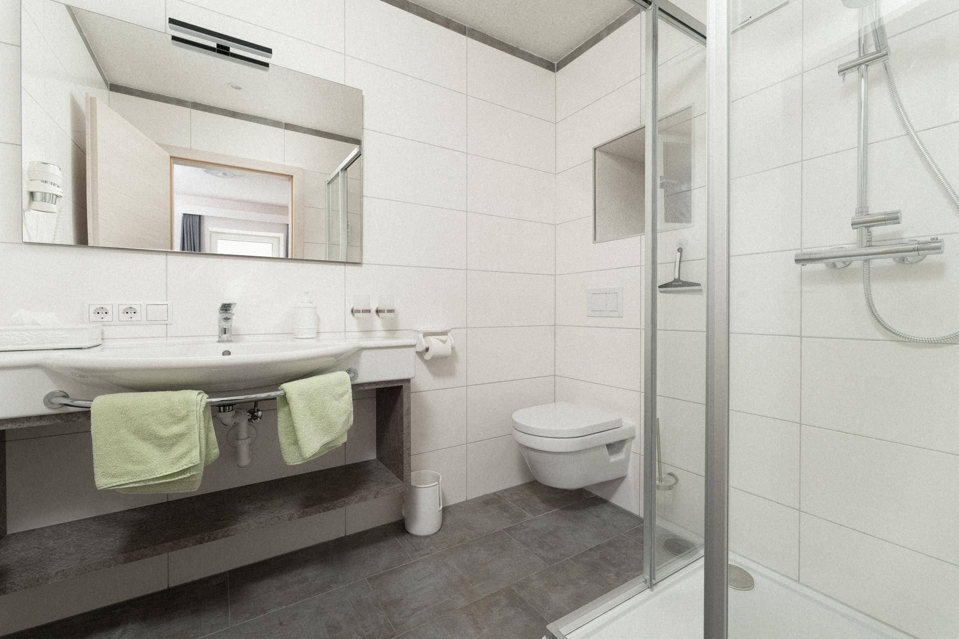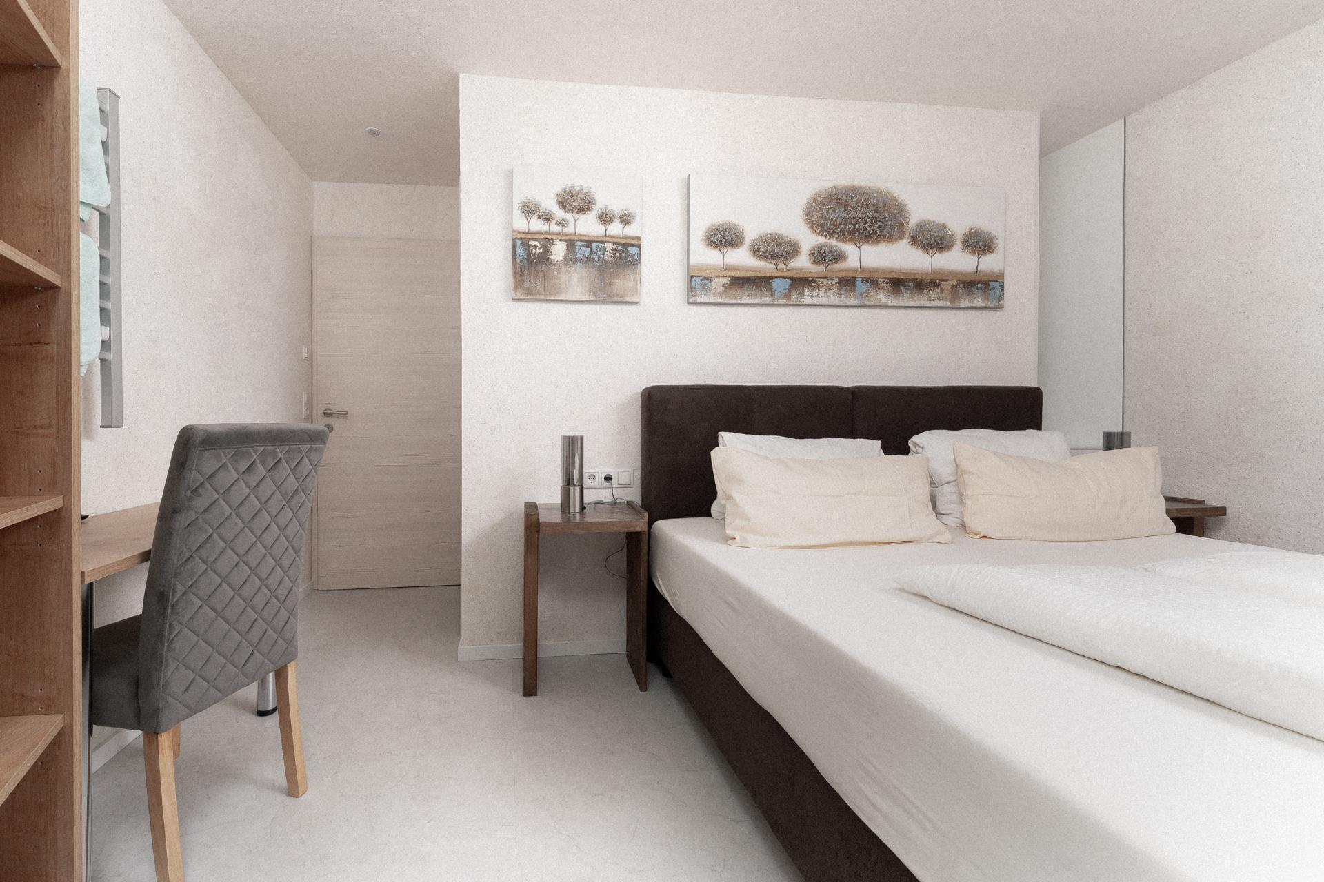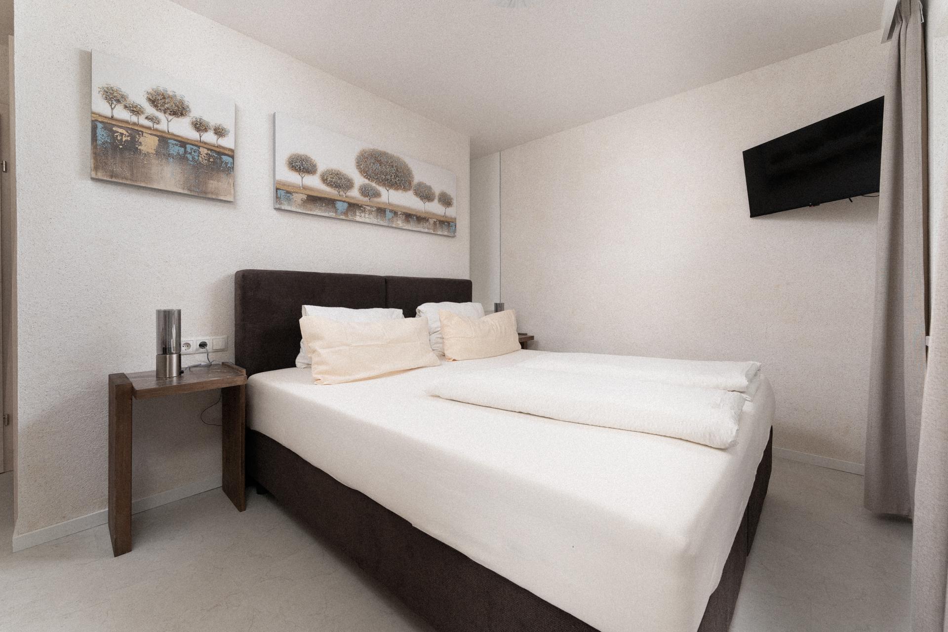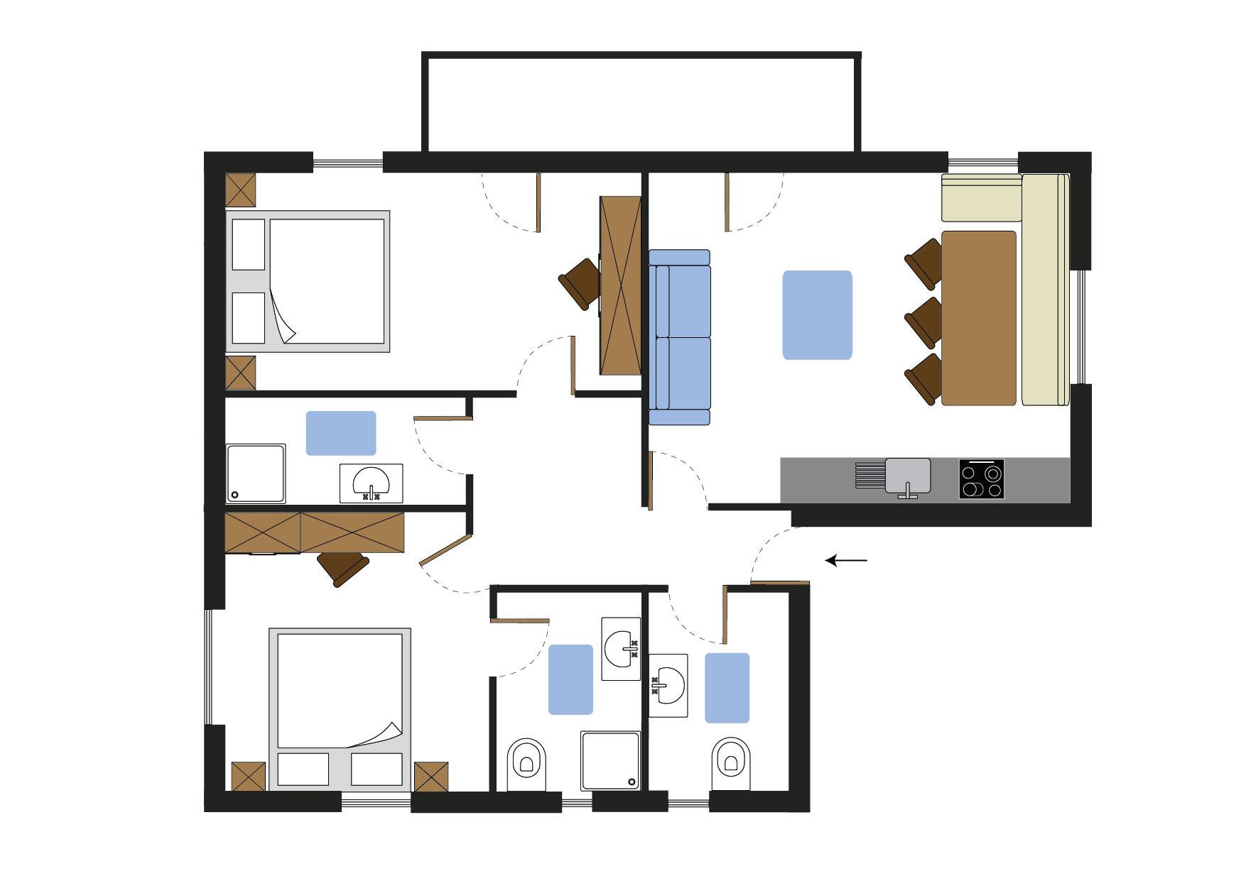 Bei einer Belegung mit bis zu 2 Personen stehen 1 Schlafzimmer bzw. Badezimmer zur Verfügung, ab einer Belegung mit 3 Personen stehen 2 Schlafzimmer bzw. Badezimmer zur Verfügung.