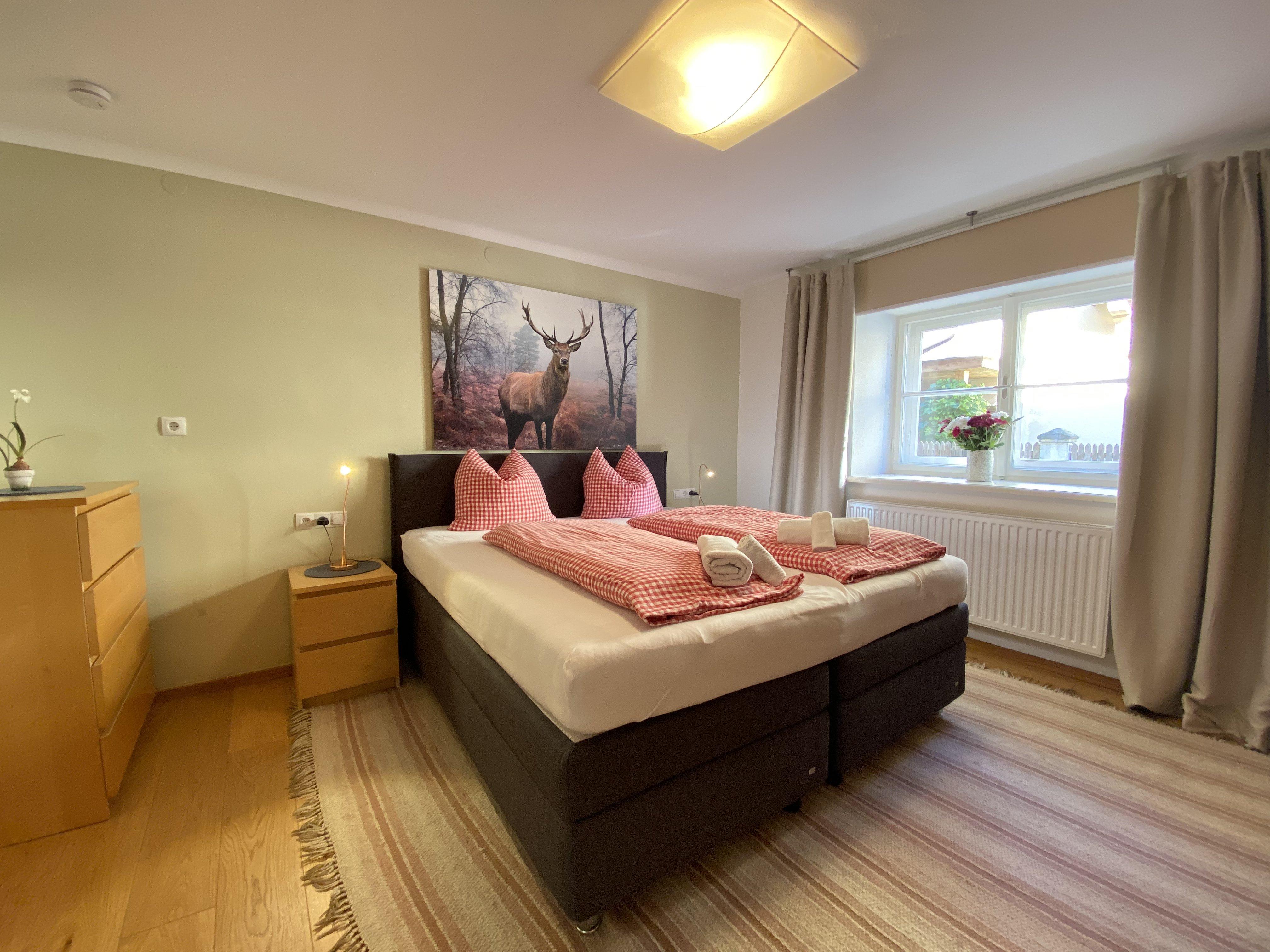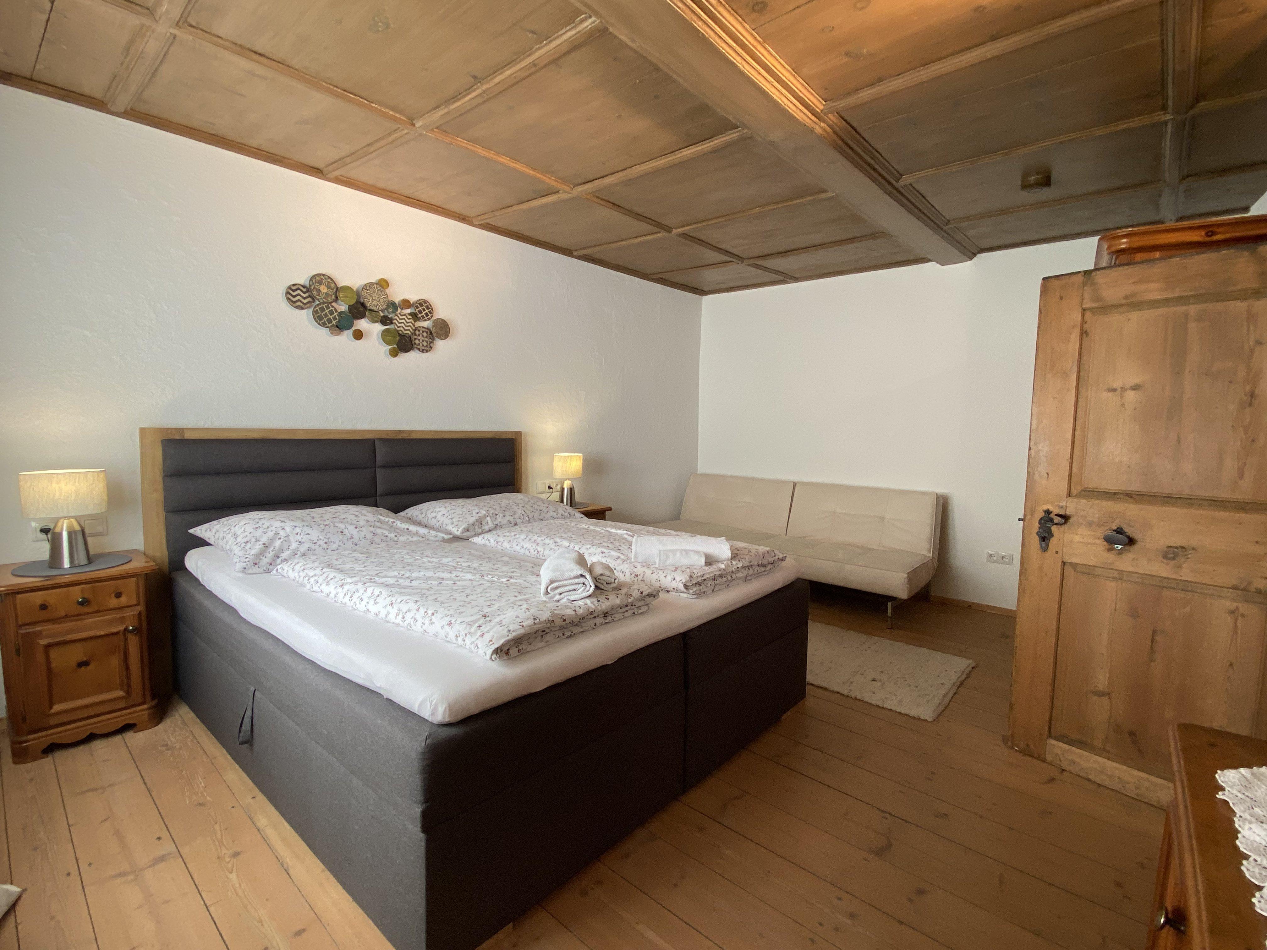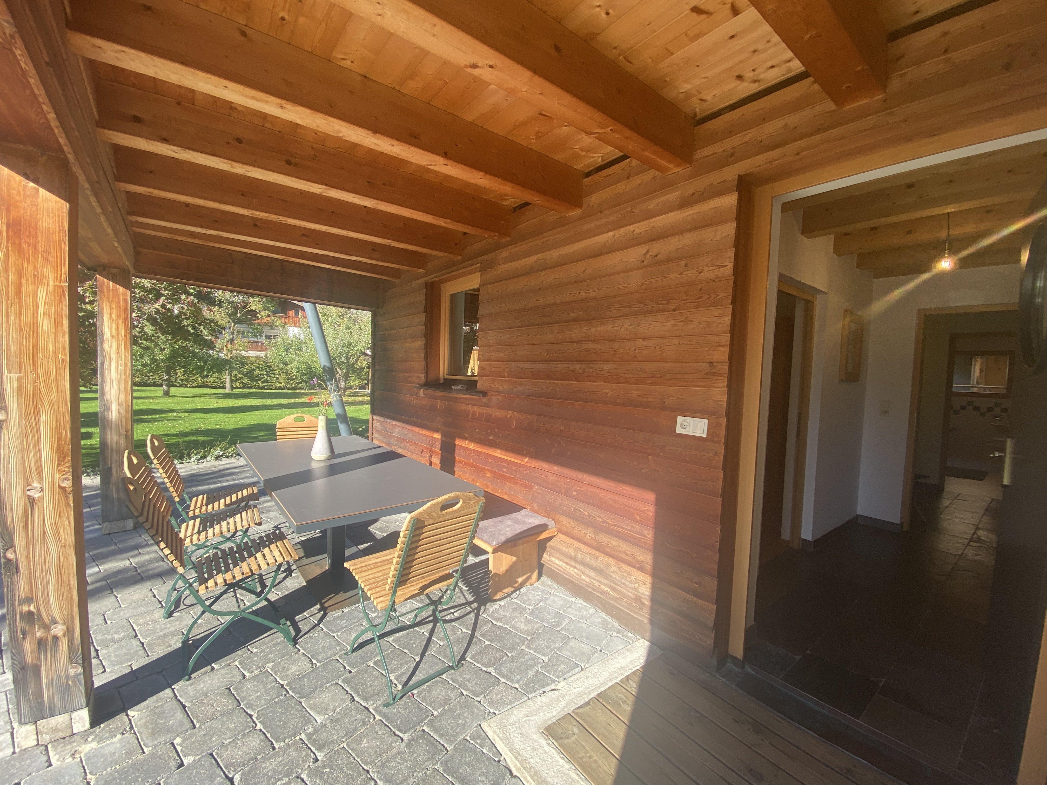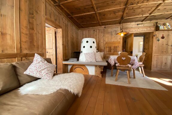 Das Chalet Ida ist im EG des Hauses gelegen und ist barrierefrei. 3 Schlafzimmern mit Doppelbetten, 1 davon mit zuätzlichem Schlafsofa für die 7. Person; 1 Badezimmer mit Badewanne, Dusche/WC; ein seperates WC. Die Tiroler Bauernstube ist mit Zirbenmöbeln und großem Tisch, einem Kachelofen mit Ofenbank und Zirbentäfelung eingerichtet und extrem großzügig und urgemütlich. Zusätzlich eine vollausgestattete riesige Küche mit großem Sitz- und Essbereich, ein großzügiger Flur mit Abstellraum. Terrasse und Garten.
