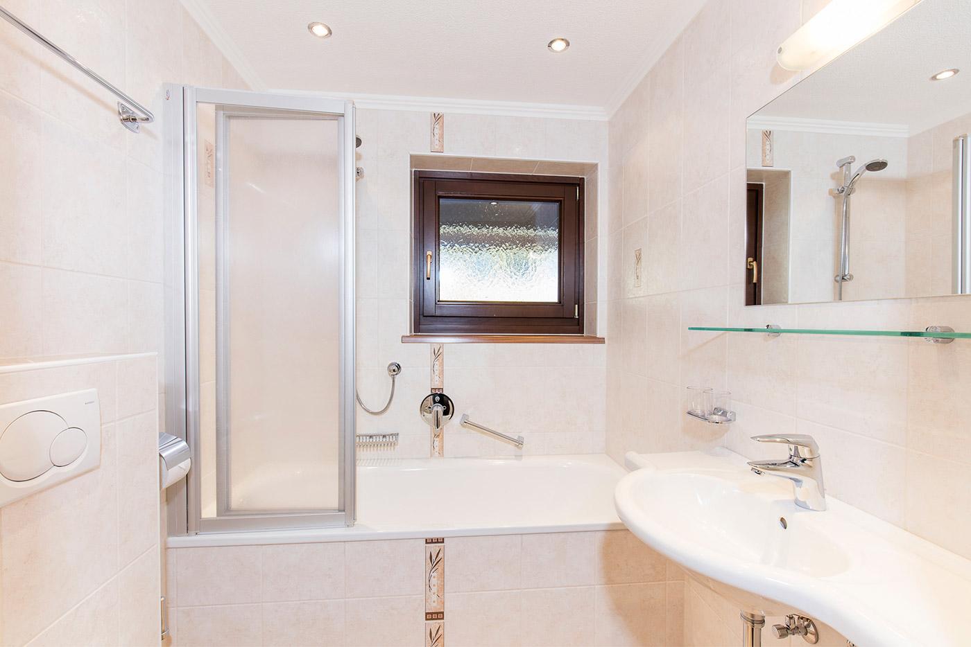 1 Dreibettzimmer mit Kabel-TV,. Balkon sowie Badezimmer mit Badewanne/WC und Haartrockner,