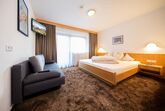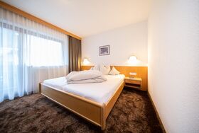 Helles Doppelzimmer mit Dusche und WC, Flat-TV und Balkon. Größe ca. 20 m²