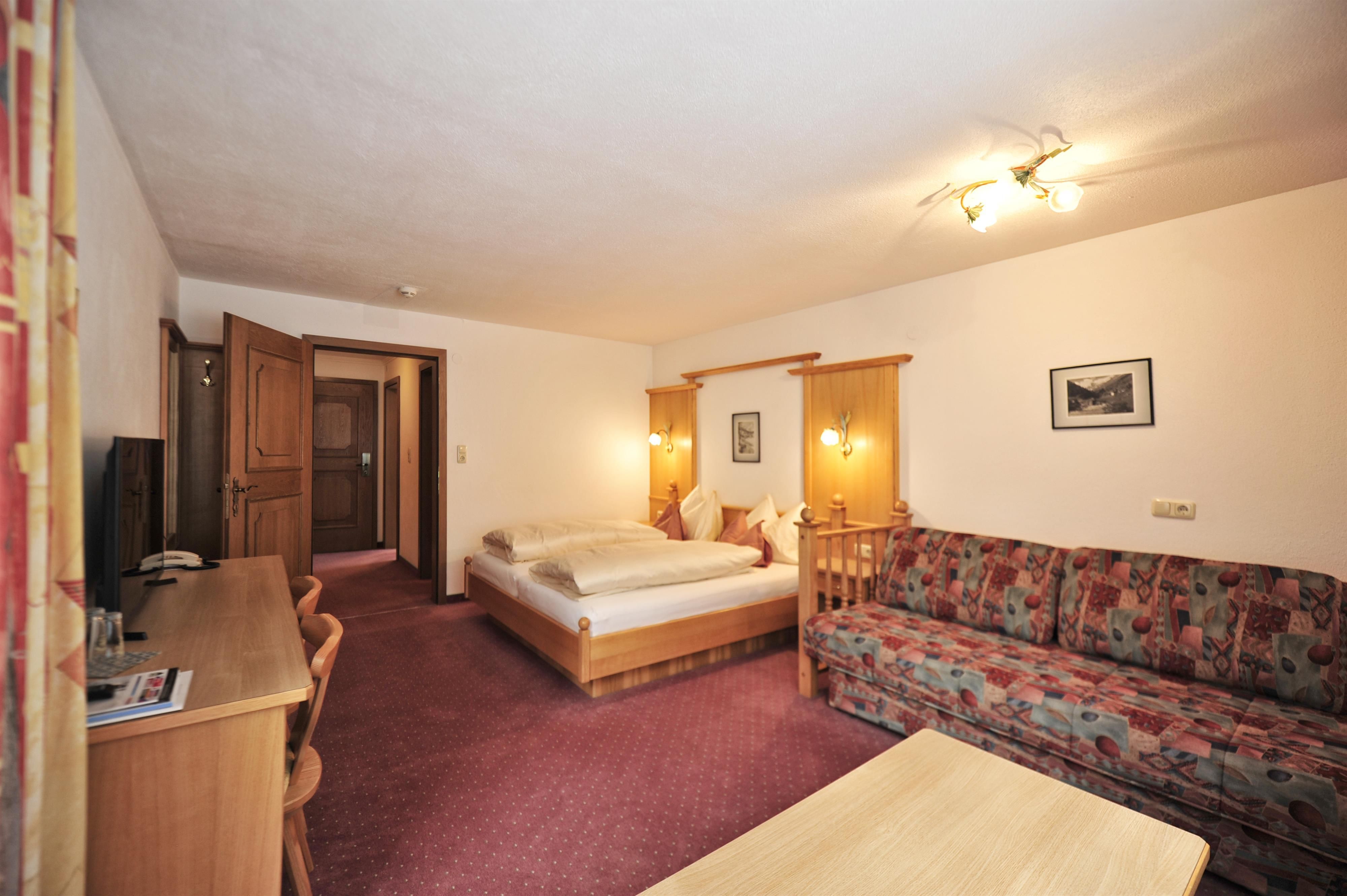 Geräumiges Familienzimmer mit einem Doppelbett und Doppelcouch, getrenntes Bad, WC, Radio, Safe, TV, Telefon;
