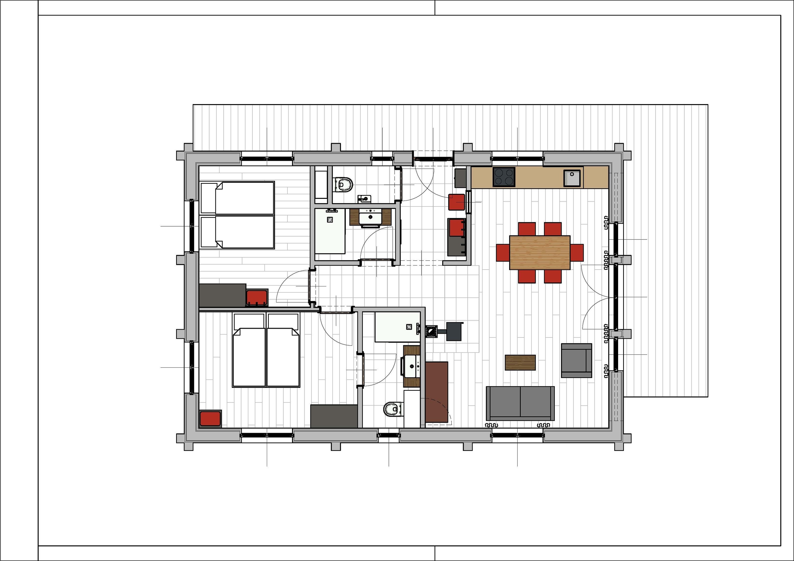 Unsere Landhäuser bieten 80 m² Wohnbereich mit zwei Schlafzimmer, 2 Badezimmer,