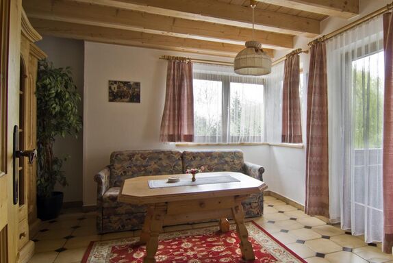 Appartement/Suite Saphir im 1. Stock mit ca. 47 m² besteht aus 1 Doppelzimmer; ein Wohnzimmer mit einer Schlafcouch für 2 weitere Personen, Sat-TV, Radio-CD und Safe, 1 Badezimmer mit Badewanne und Dusche; 1 seperates WC; eine vollausgestattete Küche mit Elektroherd, Kühlschrank, Geschirr, Wasserkocher, Kaffeemaschine, Essbereich uvm.; einen Vorraum. Das Appartement verfügt über einen Balkon.