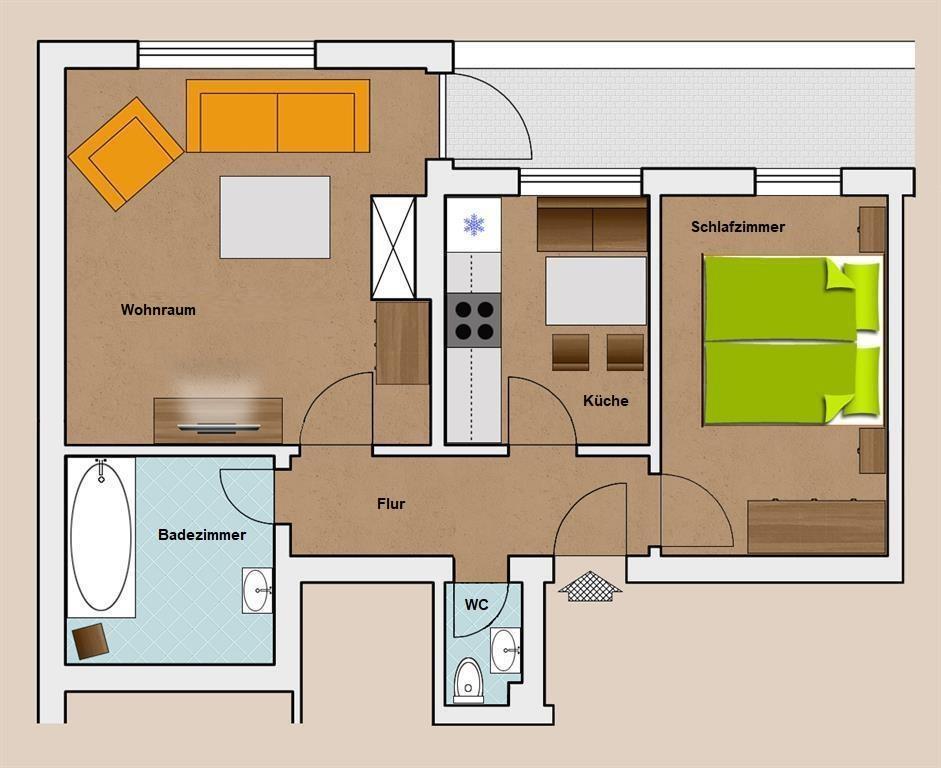 Appartement/Suite Smaragd im 1. Stock mit ca. 42 m² besteht aus 1 Doppelzimmer (Betten auf Anfrage getrennt möglich); 1 Wohnraum mit Schlafcouch für 2 weitere Personen, Sat-TV und Safe; 1 vollausgestattete Küche mit Elektroherd, Kühlschrank, Geschirr, Wasserkocher, Kaffeemaschine, Essbereich uvm., 1 Vorraum; 1 Badezimmer mit Badewanne oder Dusche; 1 seperates WC. Das Appartement verfügt über einen Balkon.