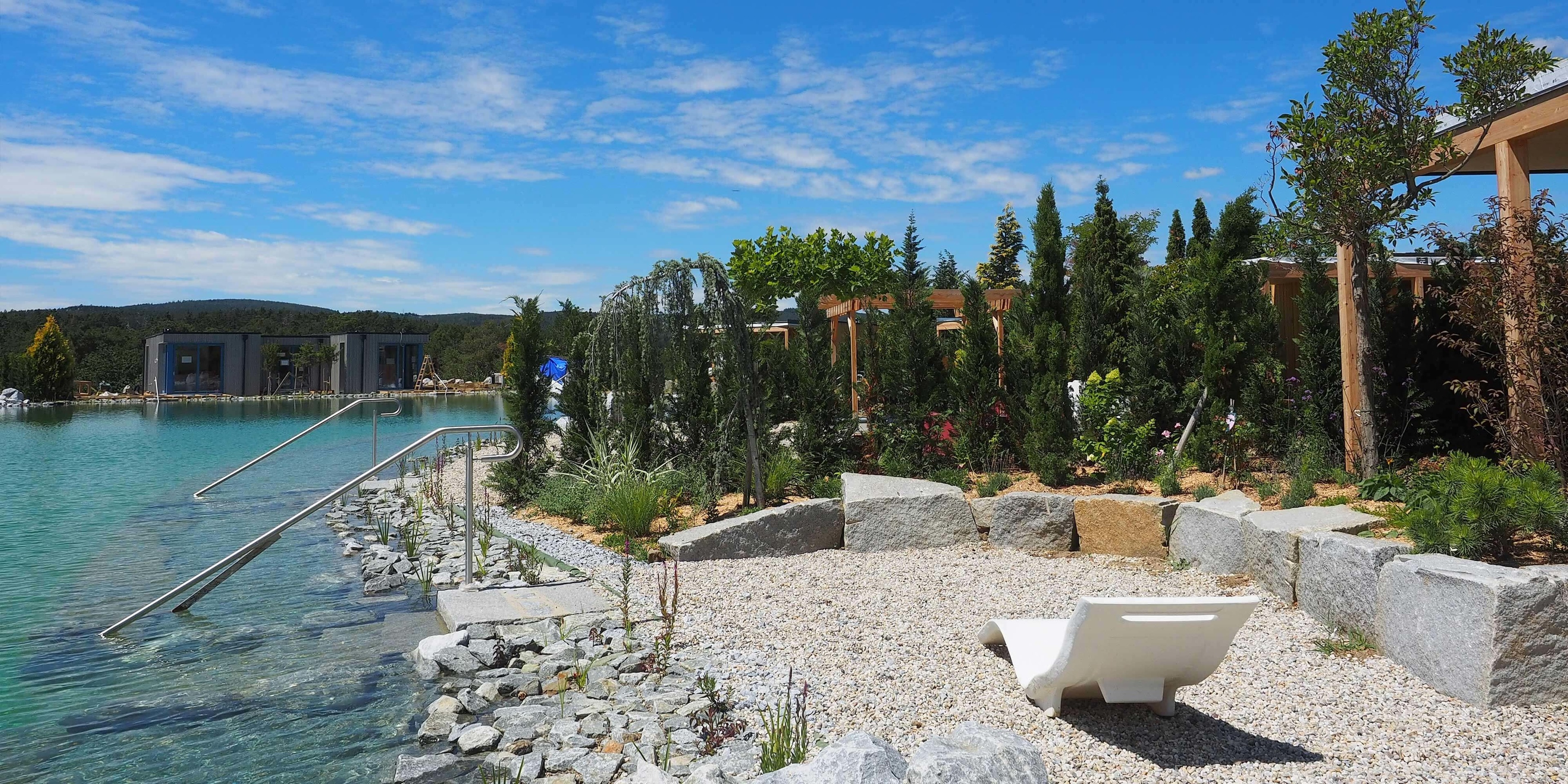 nachhaltige Holzriegelbauweise eingesetzt, welche ein besonders angenehmes Raumklima bietet. Das moderne Design des Hauses findet sich auch im Interieur wieder. Unsere Studios sind mit Klima-Anlage ausgestattet und verfügen über einen gemütlichen Wohnbereich mit 43 Zoll TV, ein Schlafzimmer mit Doppelbett, sowie ein Bad mit Regendusche und getrennter Toilette. In den Studios steht Ihnen eine Küche mit 2 flammigen Herd, Mikrowelle mit Heißluft und Grillfunktion, Kühlschrank samt Gefrierfach, Geschirrspüler, Kaffeemaschine, Wasserkocher, hochwertigem Geschirr, Weingläsern ausgestattet zur Verfügung. Von der Terrasse mit Tischgrill überblicken Sie den ganzen Gartensee und genießen Sie den Weitblick bis zum Ötscher. Der private Themengarten ist verträumt, romantisch und sehr harmonisch gestaltet, und bietet entweder eine Sauna oder eine Feuerwasserwanne unter freiem Himmel - genau das richtige um Zeit zu zweit zu genießen.
