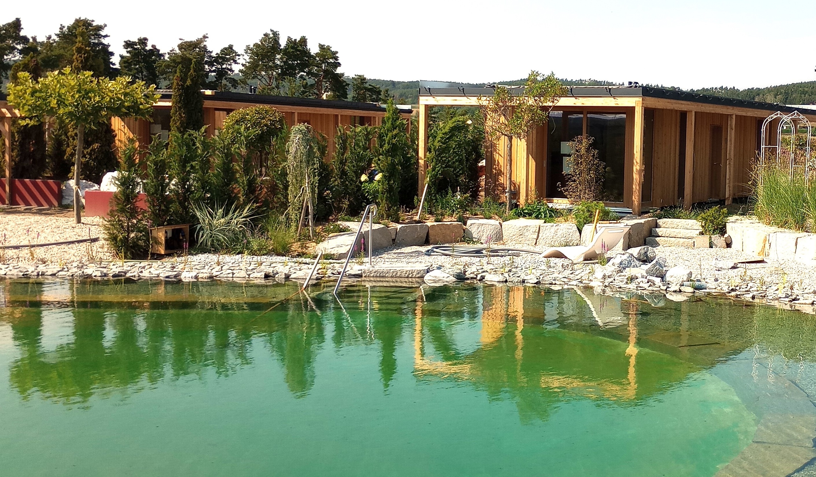 nachhaltige Holzriegelbauweise eingesetzt, welche ein besonders angenehmes Raumklima bietet. Das moderne Design des Hauses findet sich auch im Interieur wieder. Unsere Studios sind mit Klima-Anlage ausgestattet und verfügen über einen gemütlichen Wohnbereich mit 43 Zoll TV, ein Schlafzimmer mit Doppelbett, sowie ein Bad mit Regendusche und getrennter Toilette. In den Studios steht Ihnen eine Küche mit 2 flammigen Herd, Mikrowelle mit Heißluft und Grillfunktion, Kühlschrank samt Gefrierfach, Geschirrspüler, Kaffeemaschine, Wasserkocher, hochwertigem Geschirr, Weingläsern ausgestattet zur Verfügung. Von der Terrasse mit Tischgrill überblicken Sie den ganzen Gartensee und genießen Sie den Weitblick bis zum Ötscher. Der private Themengarten ist verträumt, romantisch und sehr harmonisch gestaltet, und bietet entweder eine Sauna oder eine Feuerwasserwanne unter freiem Himmel - genau das richtige um Zeit zu zweit zu genießen.