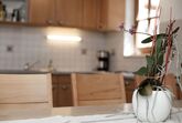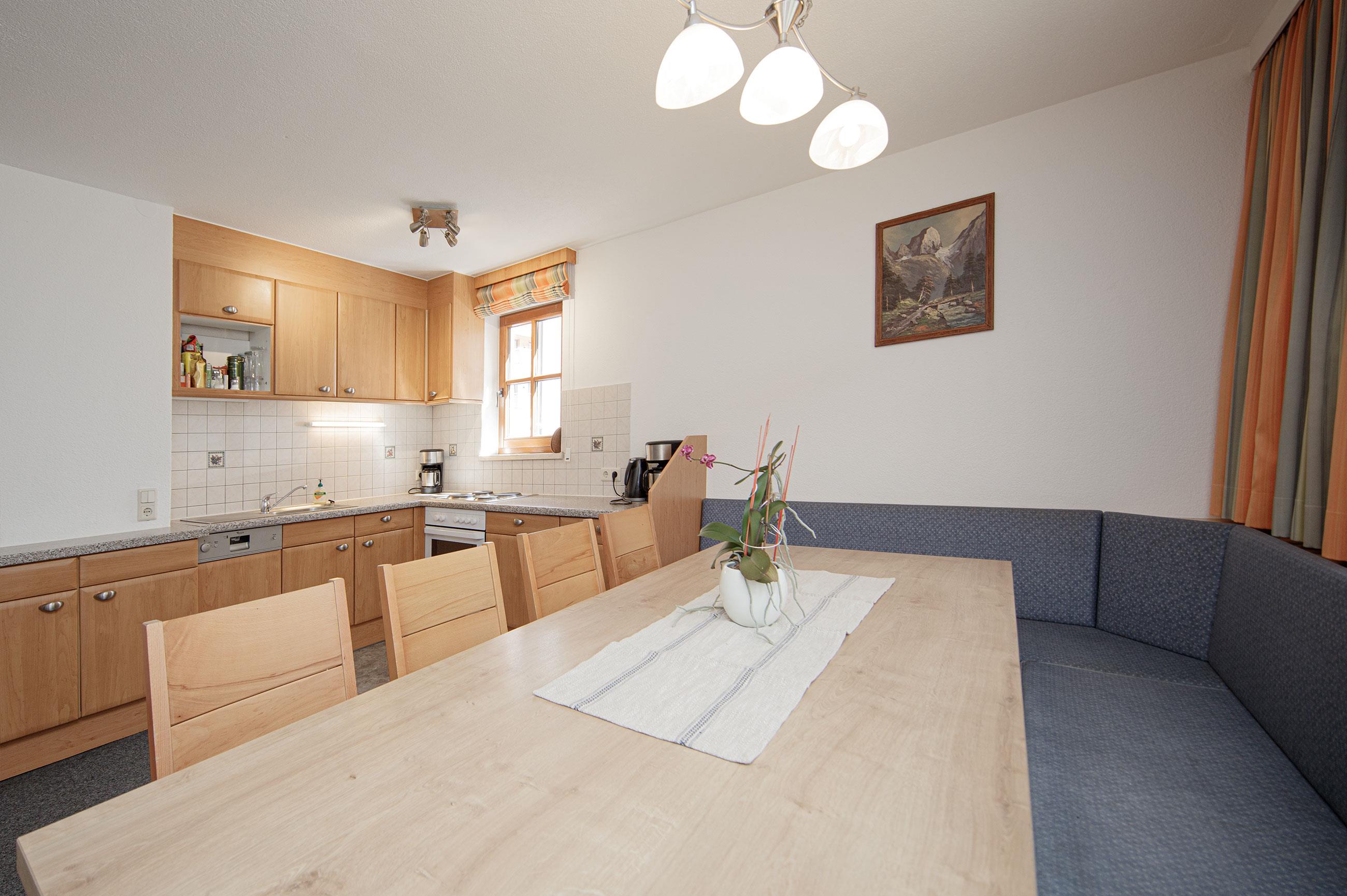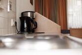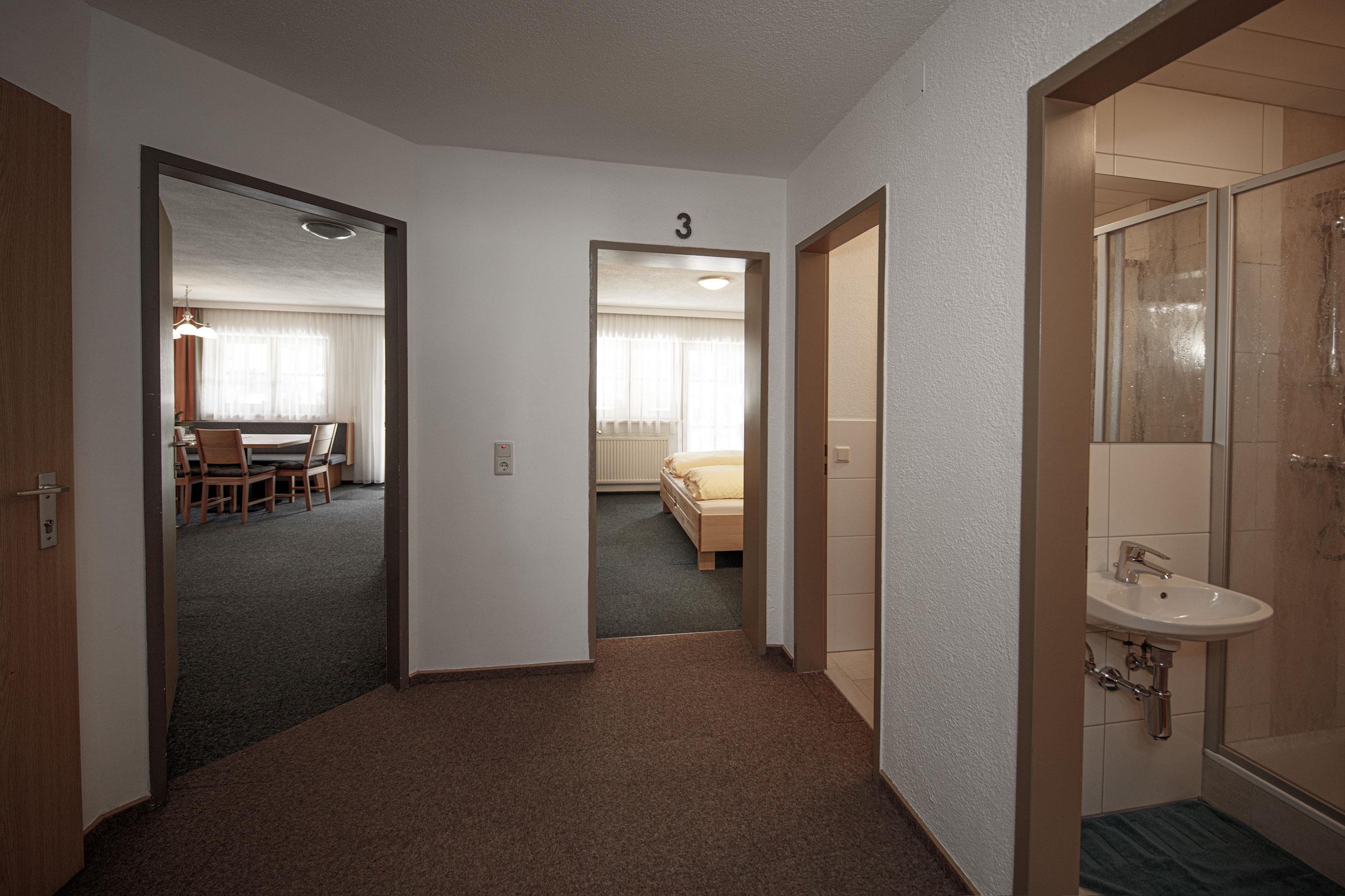 Das Appartement ist ca. 110m² über 2 Etagen. Es verfügt über 5 Schlafzimmer wie folgt: 2 Doppelzimmer mit jeweils Dusche und Waschbecken, weiteres Doppelzimmer mit Waschbecken, Dusche/WC separat. 2 weitere Doppelzimmer jeweils mit zusätzl. Zustellbett, Dusche und Waschbecken, WC separat. Wohnküche mit 4 Platten-Herd, Backofen, Mikrowelle, Geschirrspüler, Kaffeemaschine und großem Esstisch.