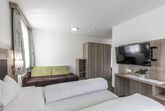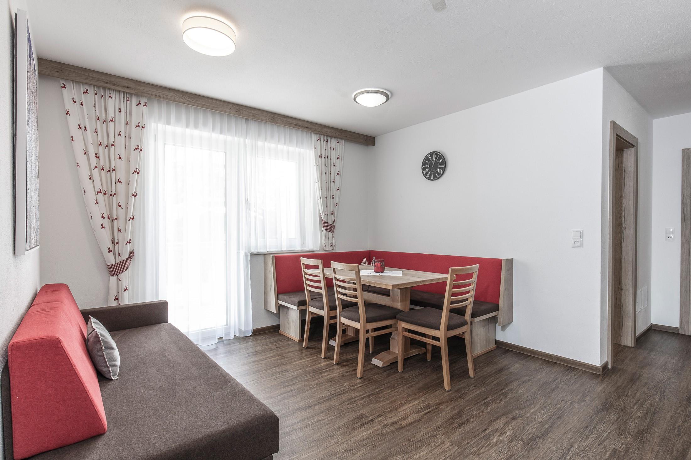 Appartement (ca. 80 m²) mit zwei Doppelzimmer mit jeweils einer Zusatzcouch für 1 weitere Person, großer Flat-TV, Balkon, und W-Lan. 2 Badezimmer mit Dusche, WC, Föhn. Ein Vorraum, abgetrennte Küche und separater Wohnraum mit Essbereich, großer Flat-TV und Balkon. Die Küche ist mit Herd, Backrohr, Geschirr, Spülmaschine, Kaffeemaschine mit Tabs,.. ausgestattet. Bei einer Belegung mit 2 Personen steht nur 1 Doppelzimmer zur verfügung.