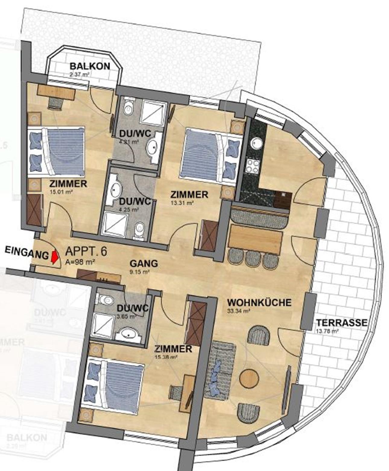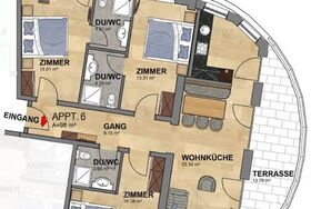 Top 6 mit ca. 100 m²: 3 Doppelzimmer, 3 Badezimmer mit Dusche/WC, großzügiger Wohnraum mit Essplatz und einer vollausgestatteten Küche mit Cerankochfeld, Backofen, Kühlschrank, Mikrowelle, Kaffeemaschine uvm., Balkon mit Ausblick über Sölden.