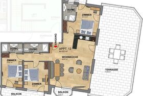 Top 12 mit ca. 104 m²: 3 Doppelzimmer, 3 Badezimmer mit Dusche/WC, Wohn-Essbereich mit ener vollausgestatteten Küchenzeile mit Cerankochfeld, Backofen, Kühlschrank, Mikrowelle, Kaffeemaschine uvm., 70 m² Terrasse und 3 Balkone mit einem herrlichen Ausblick auf Sölden.
