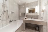 Komfortables Doppelzimmer mit Balkon (ca. 22 m²) und Schlafmöglichkeit für eine 3. Person, Blick zur Bergwelt, Badewanne mit Duschmöglichkeit und Haarfön, separates WC, Flat-TV, Telefon.