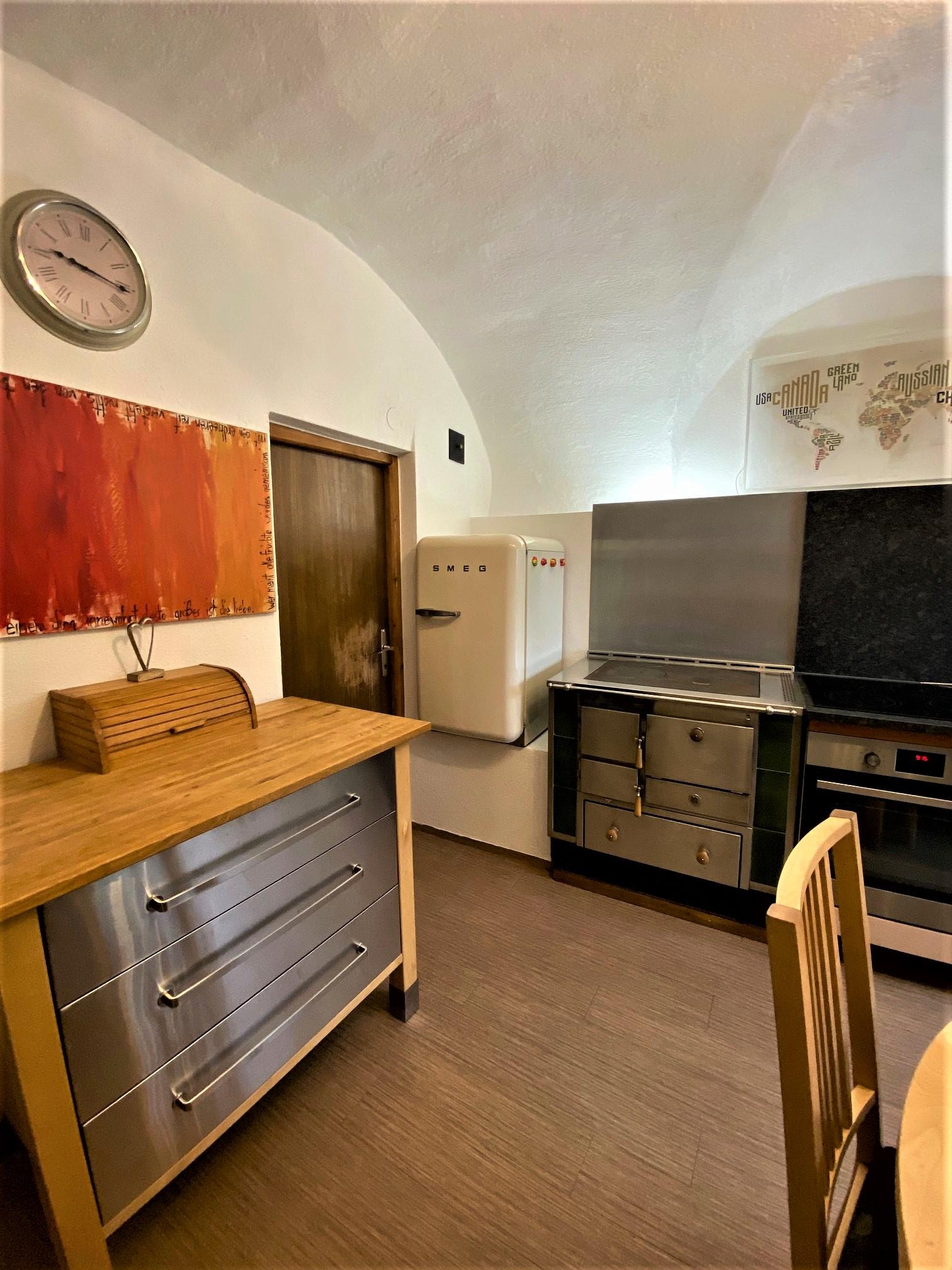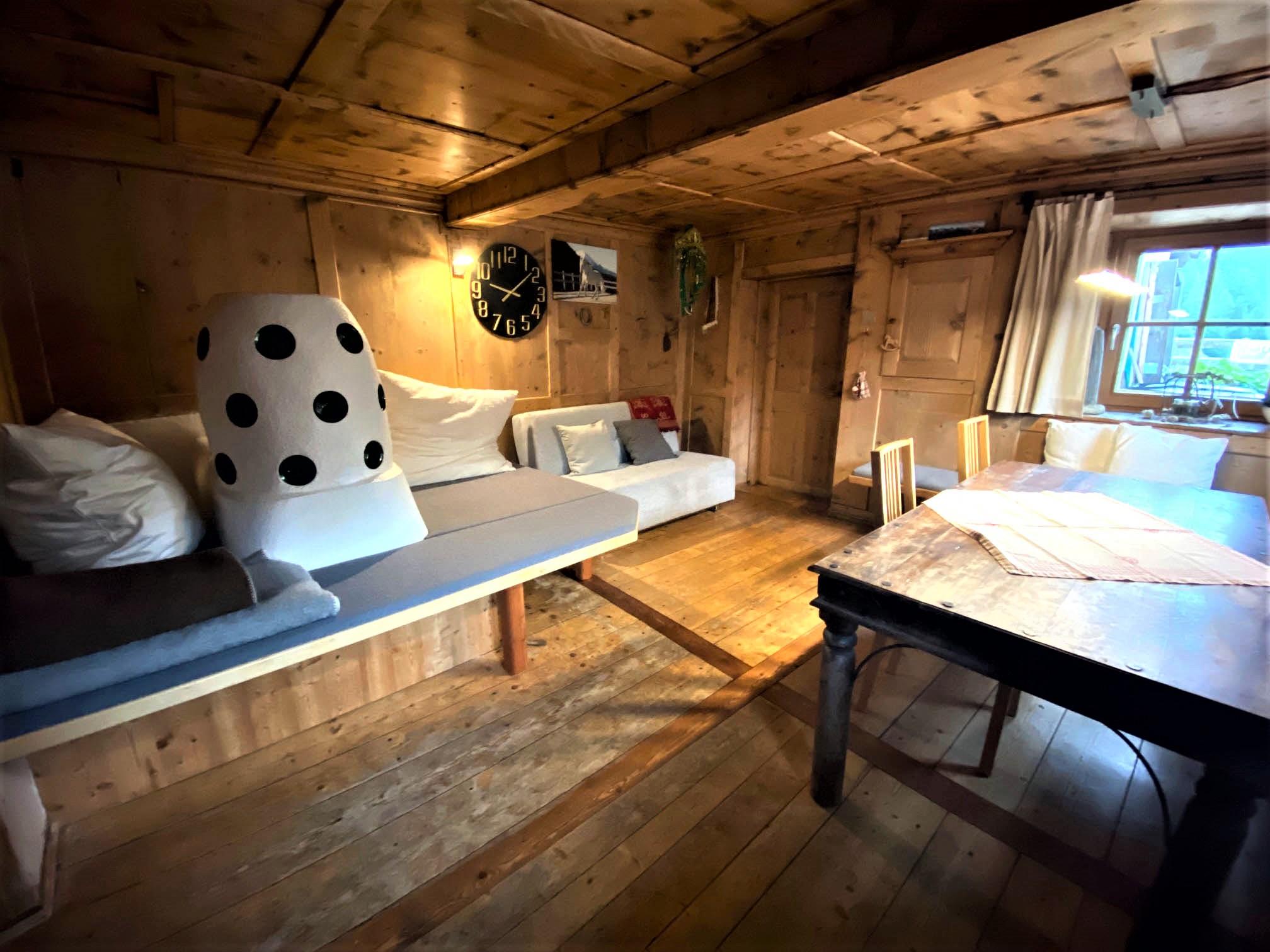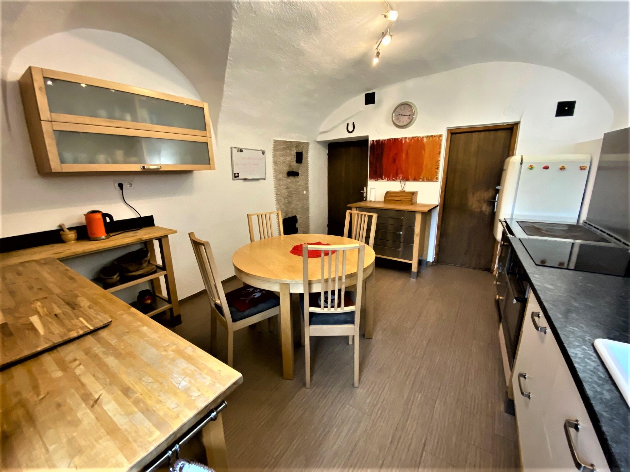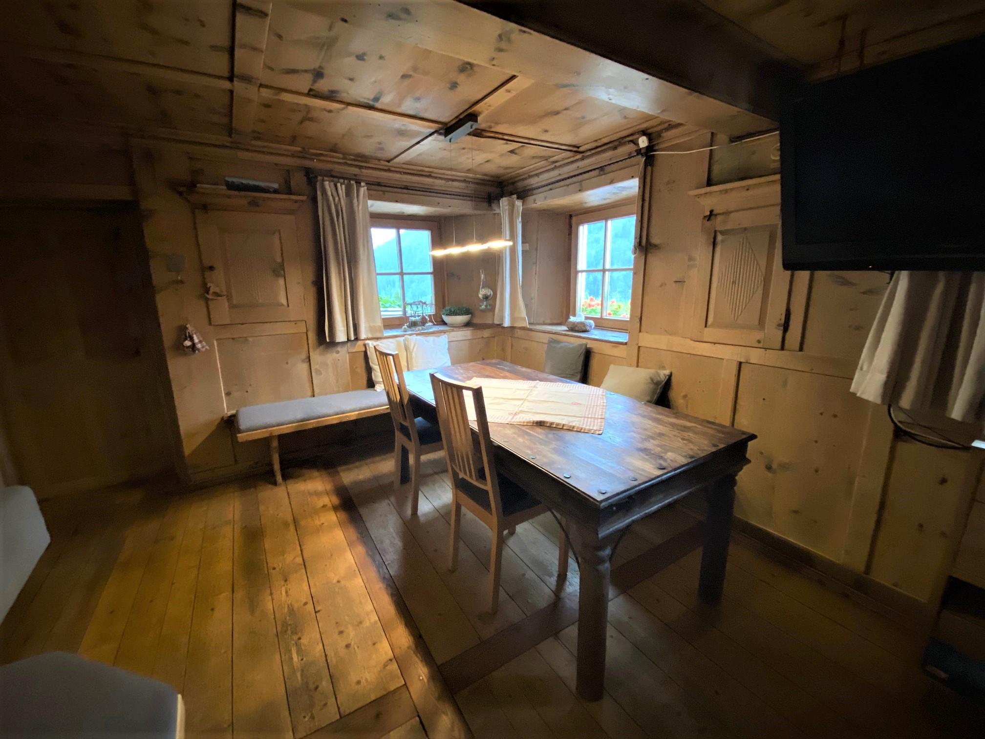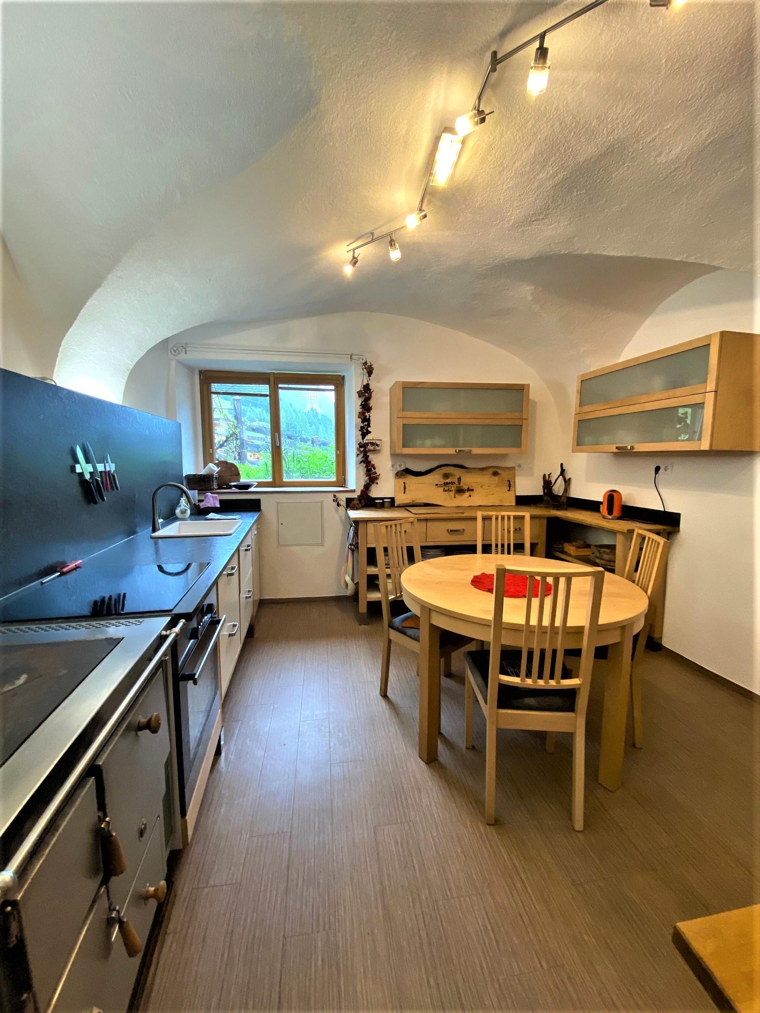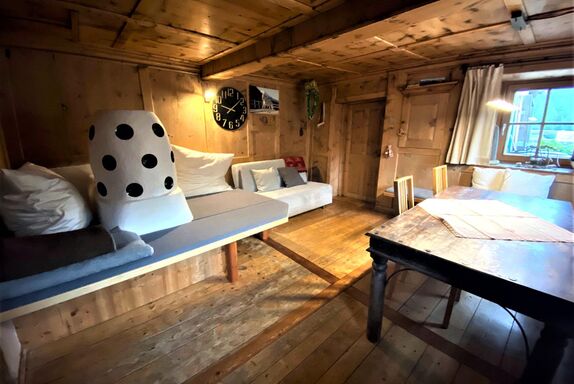 Die Bauernhaushälfte mit ca. 90 m² bietet ausreichend Platz für 4 bis max. 6 Personen und ist auf zwei Stockwerke aufgeteilt. Im Parterre befinden sich eine Küche (Speisekammer) in uraltem Gewölbe, modern eingerichtet und komplett ausgestattet, mit Elektroherd und zusätzlichem Holzofen; eine gemütliche Zirbenstube mit Kachelofen und großflächiger Ofenbank, die zum Kuschlen einlädt, zusätzlich ein geräumiger Tisch mit einer Sitzecke. Hier befindet sich auch ein Ausziehsofa für die 5. und 6. Person; 1 großes Badezimmer mit Dusche und Umkleide; 1 separates WC. Im ersten Stock befinden sich 2 geräumige Doppelzimmer, beide vollständig mit Zirbenholz ausgekleidet. Die beiden Wohnstöcke sind über eine Treppe verbunden.