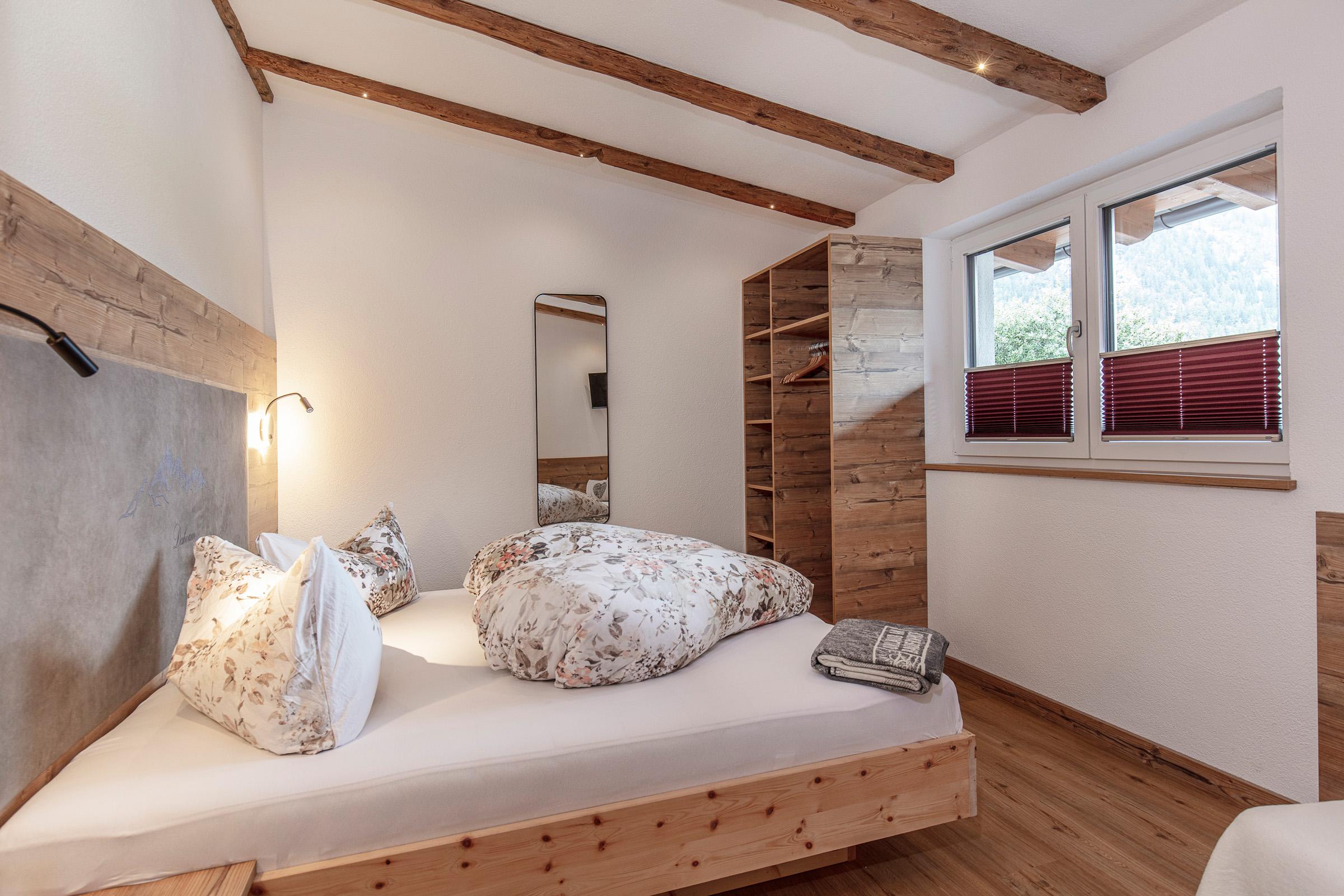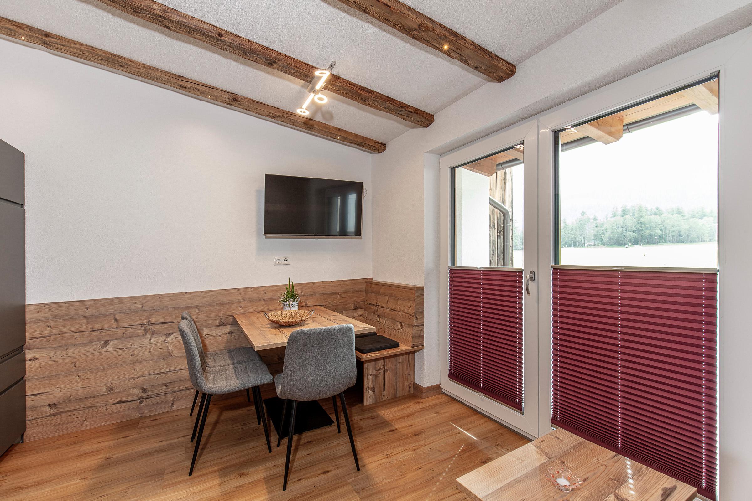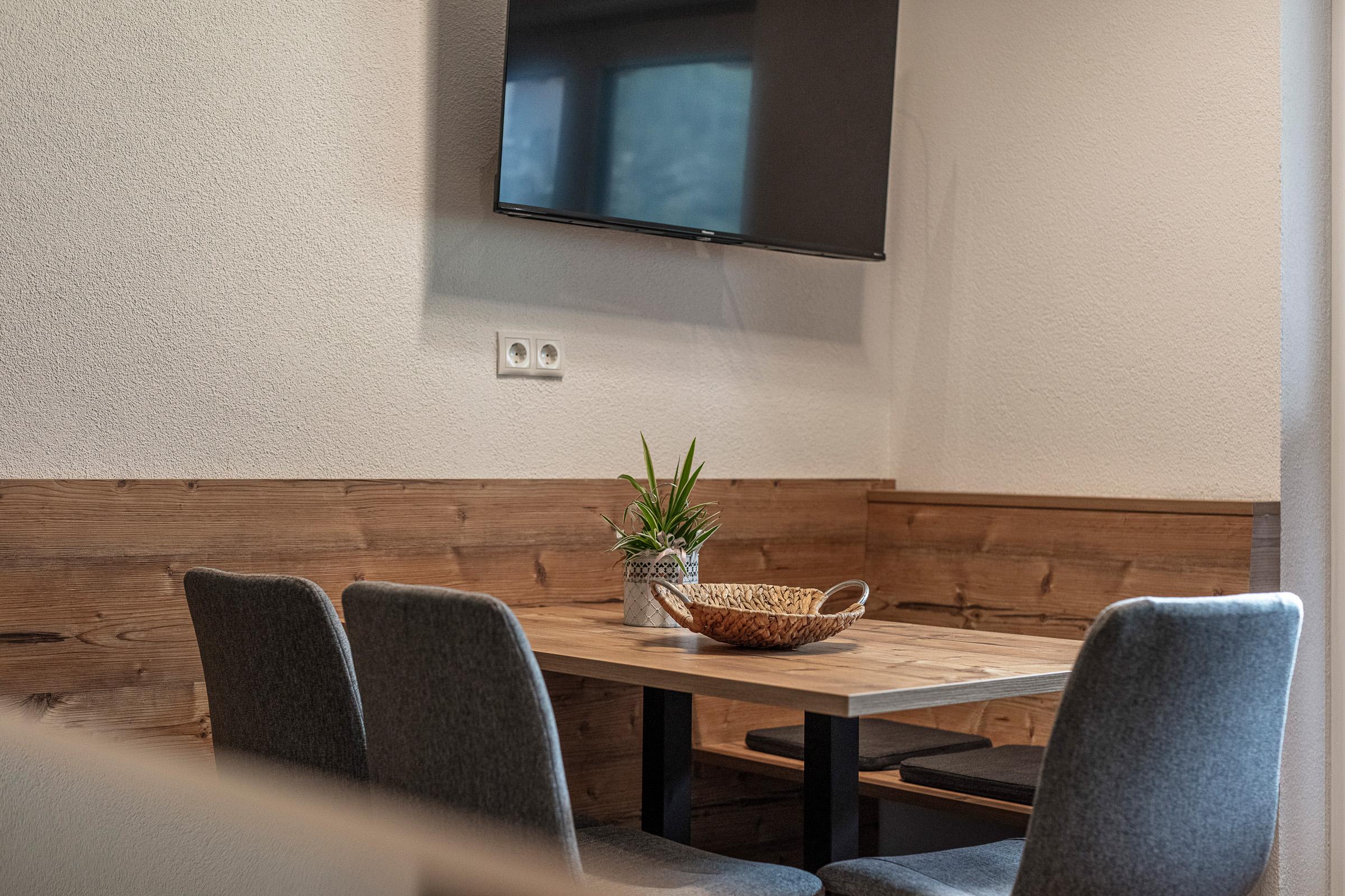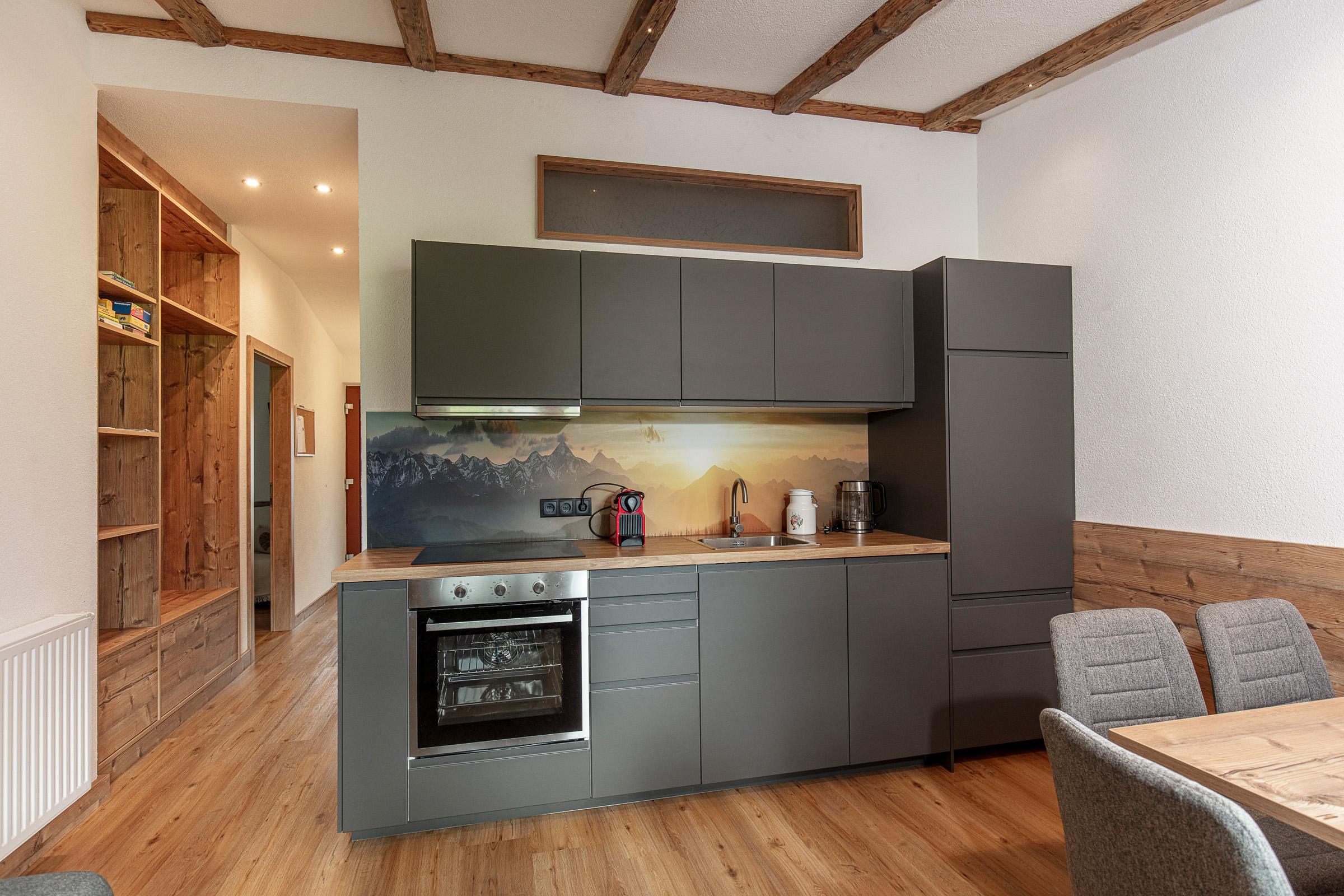 Die Ferienwohnung Dahoam (ca. 70 m²) besteht aus zwei Doppelzimmern, einem Badezimmer mit Dusche/WC und einer vollausgestatteten Wohnküche (Induktionskochfeld, Backrohr, Geschirrspülmaschine, Kühlschrank/Gefrierfach, Nespresso-Kaffee Maschine, Wasserkocher uvm.) mit Sat-TV und Couch. Mit einem faszinierenden Ausblick auf den Hauerkogel und die Ötztaler Alpen rückt der stressige Alltag auf unserem möblierten Balkon schnell in den Hintergrund.
