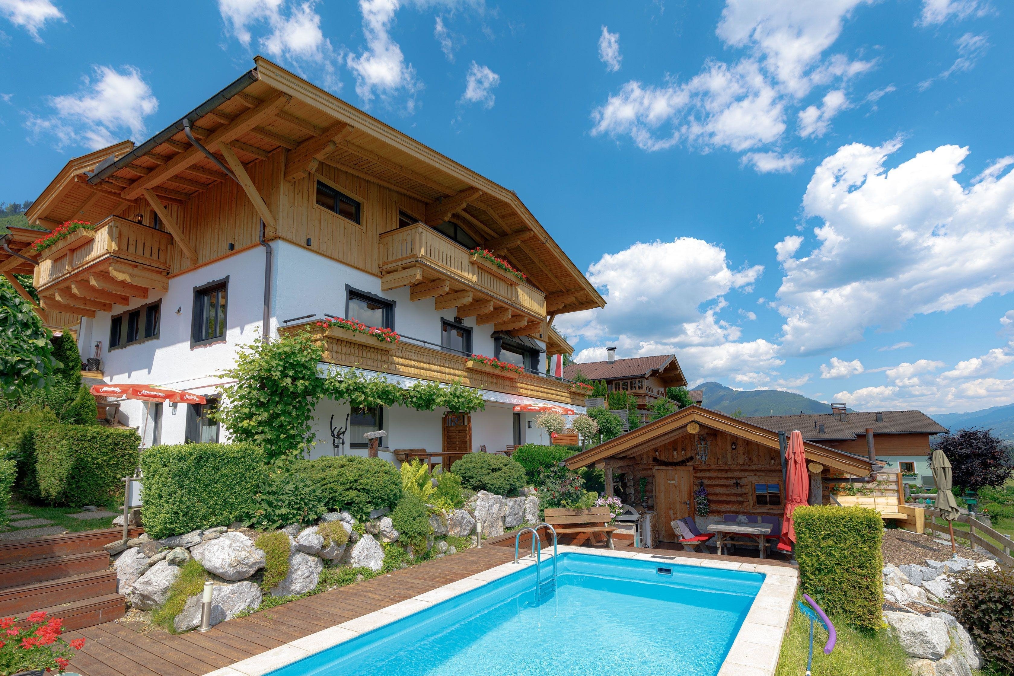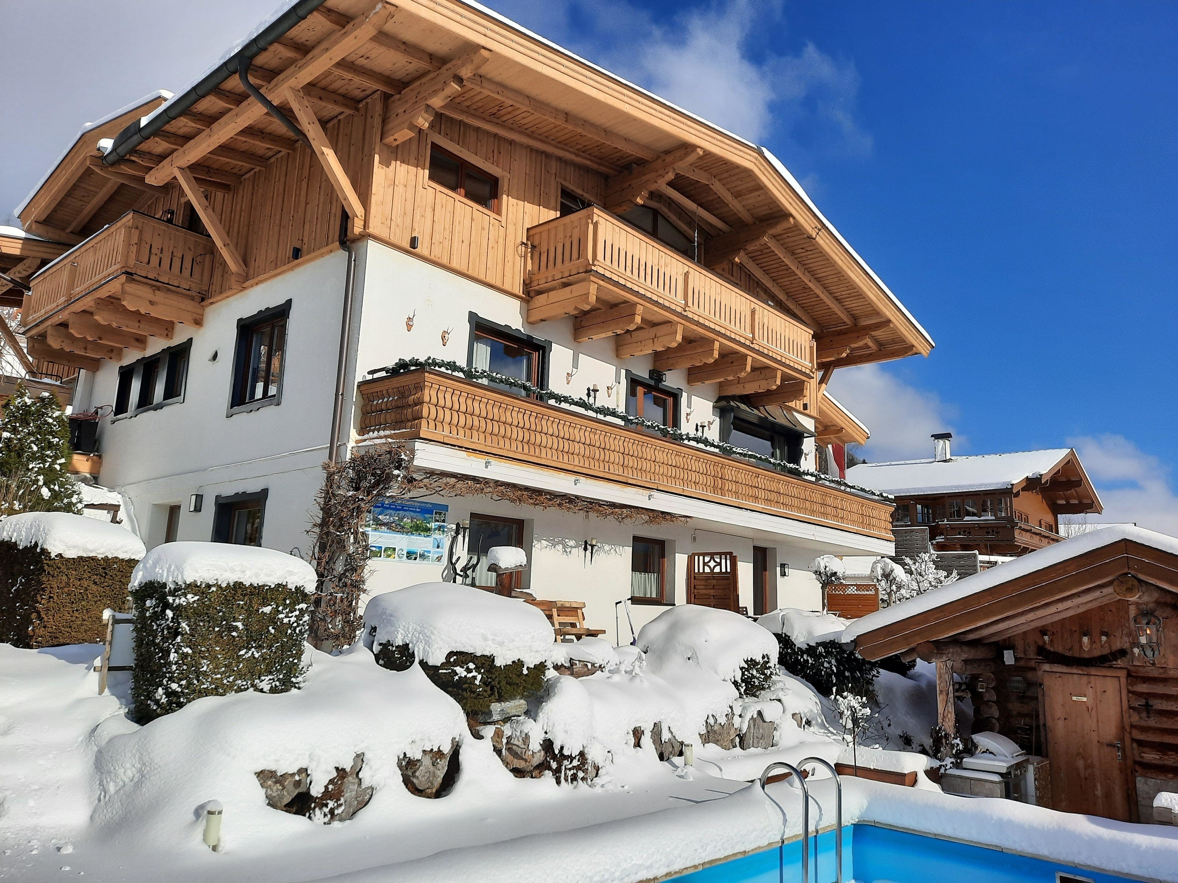 Das Landhaus Kitzblick bietet Ihnen die Geräumigkeit und den Komfort einer Ferienwohnung mit den Annehmlichkeiten einer gut ausgestatteten Pension. So könnn Sie jeden Morgen frische Brotchen bestellen und das beheitzte Schwimmbad und die Sauna benutzen.