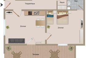 Das schöne Appartement 2 in der 1 Etage, für 3-5Personen mit 48m2 ist ausgestattet mit: