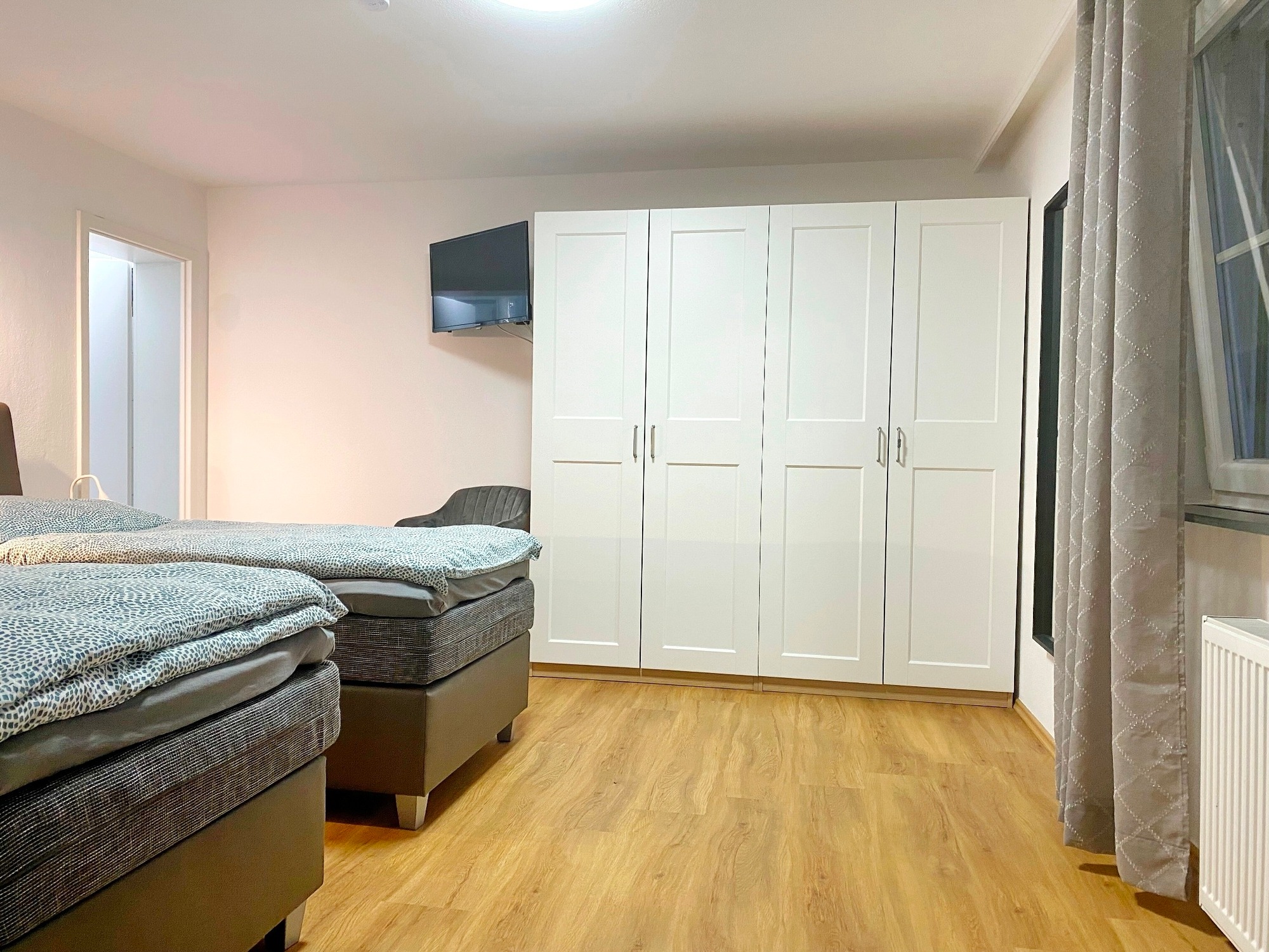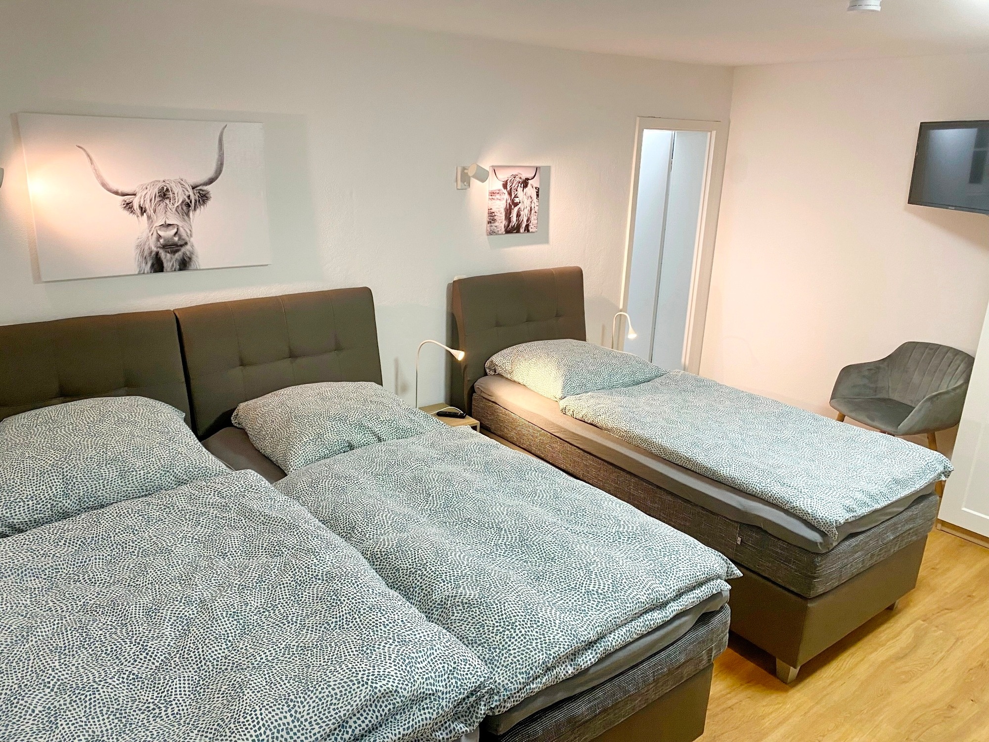 1 Schlafzimmer mit 3 Boxspringbetten, jeweils 90cmx200cm, Bettwäsche, SAT-TV