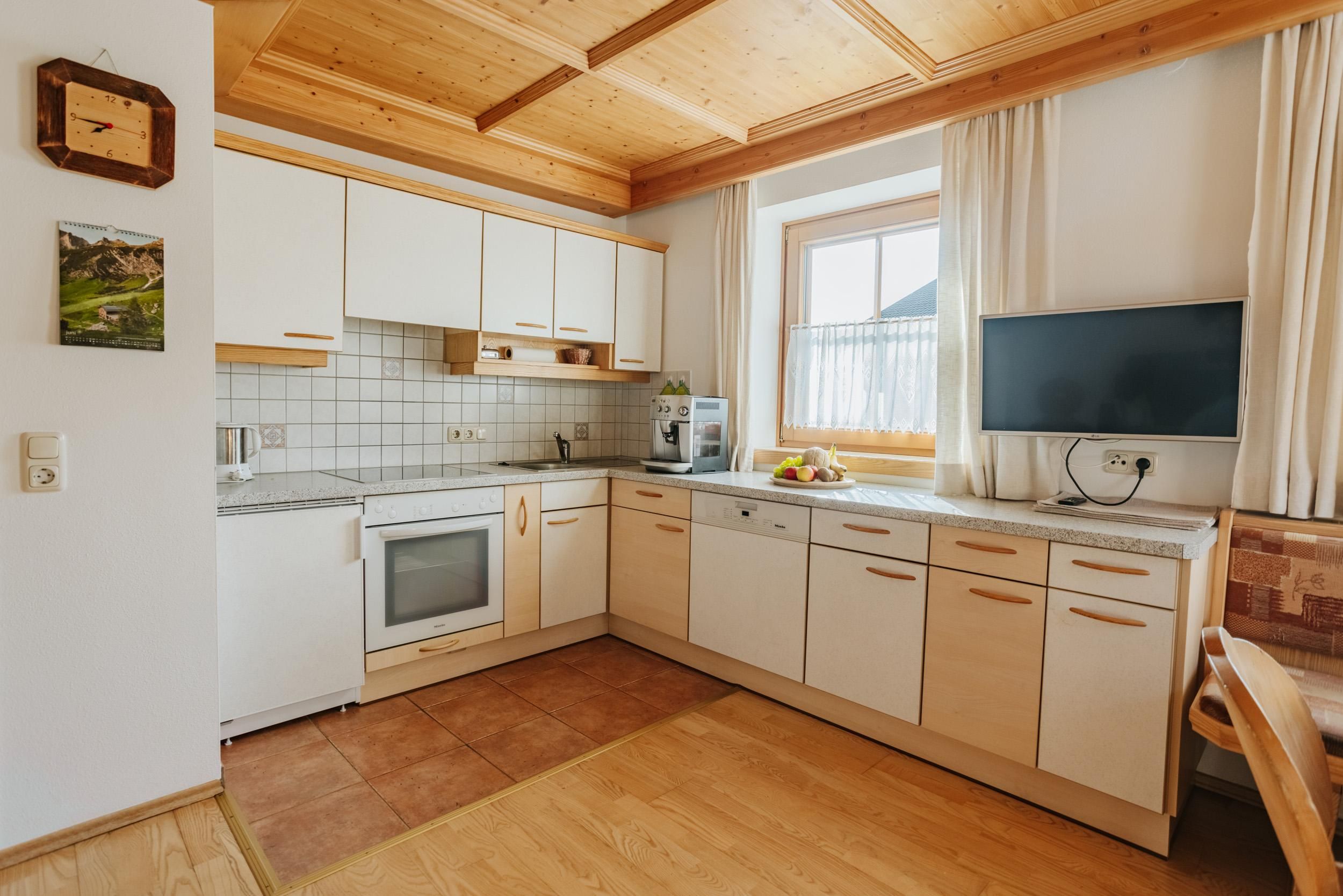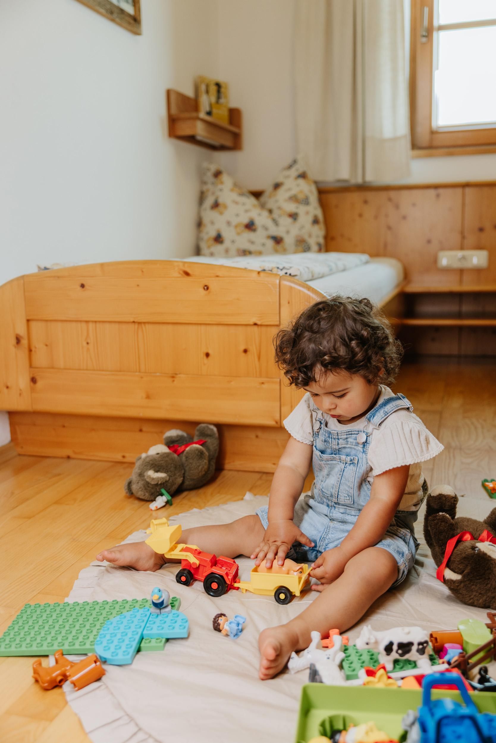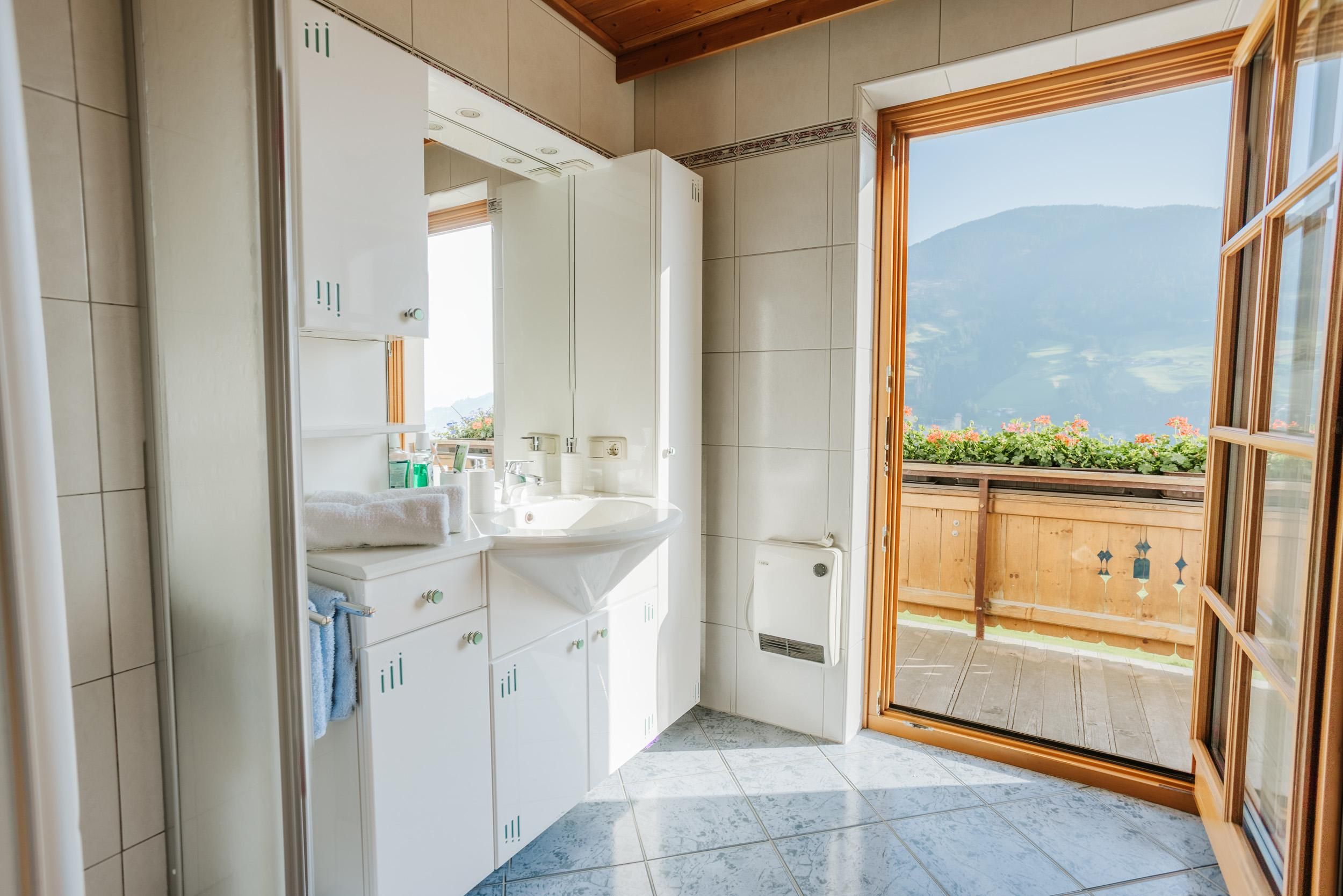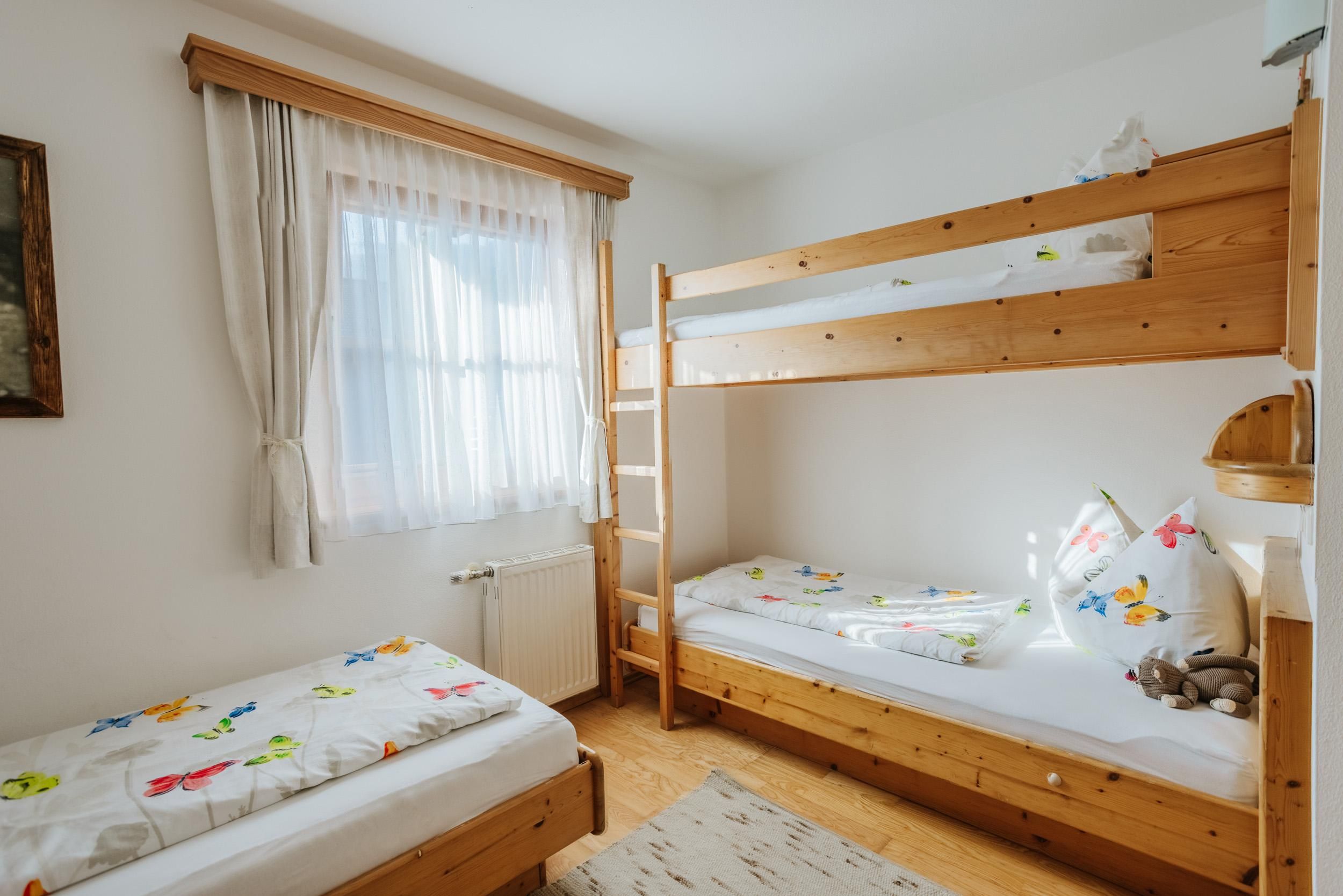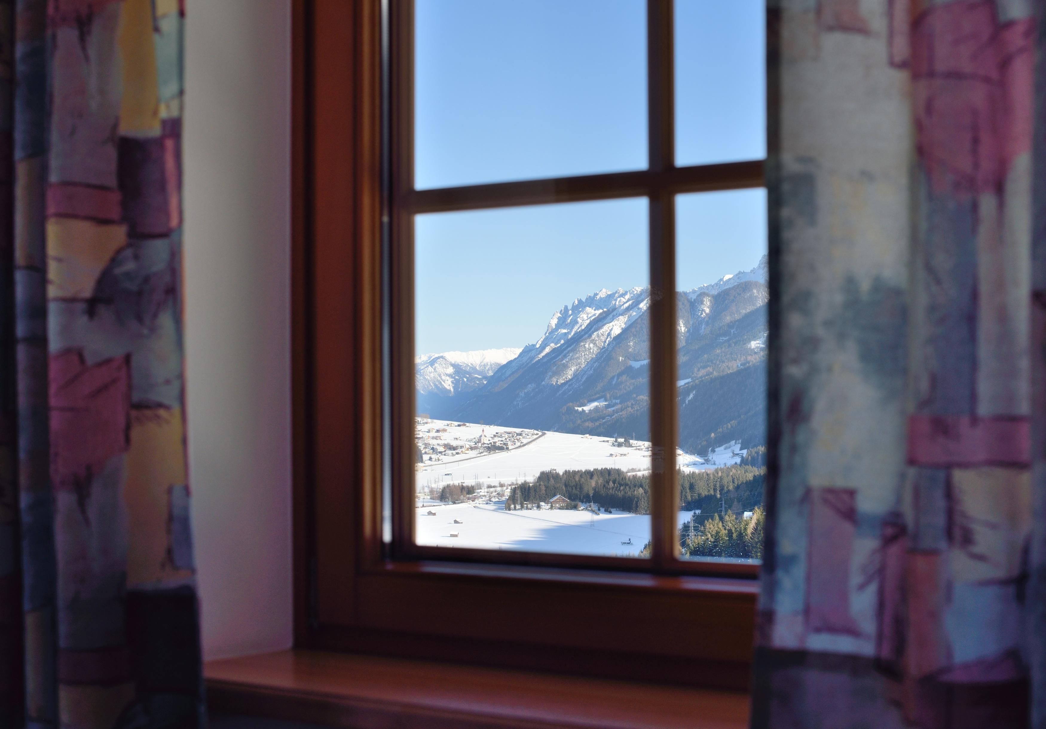 Unsere 75 m² Ferienwohnung Dolomitenblick mit 2 Schlafzimmern und der gemütlichen Wohnküche mit Küche, Bauernofen und Ausziehcouch, Badezimmer, separates WC ist der ideale Urlaubsplatz für die ganze Familie. Großer Balkon mit traumhaftem Ausblick.