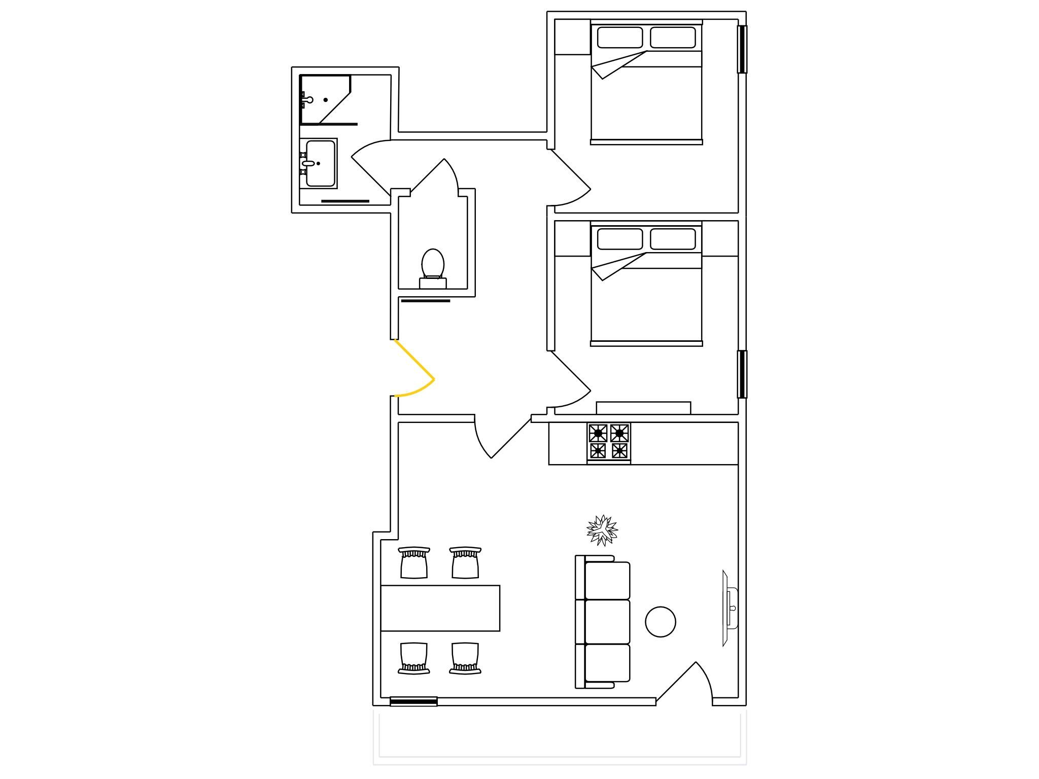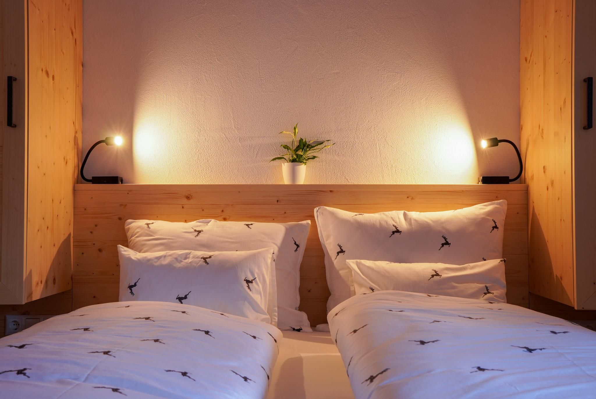 Das Appartement bietet mit zwei getrennten Schlafzimmern und hoher Deckenhöhe ausreichend Platz zur Erholung.