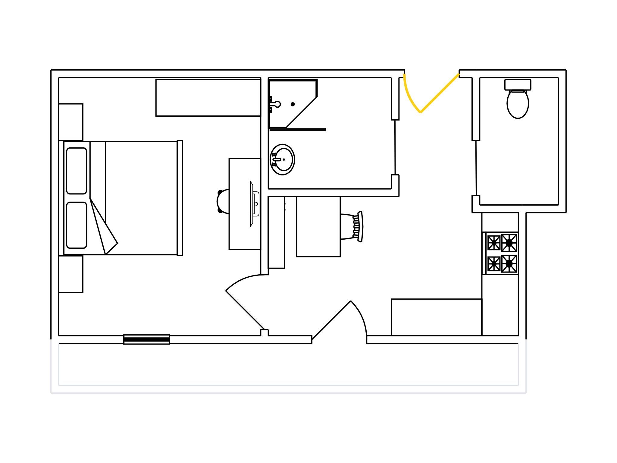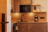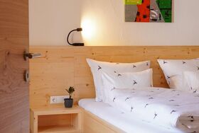 Das Appartement bietet einen Balkon überzeugt mit einem handgefertigten Holzschlittenbett.