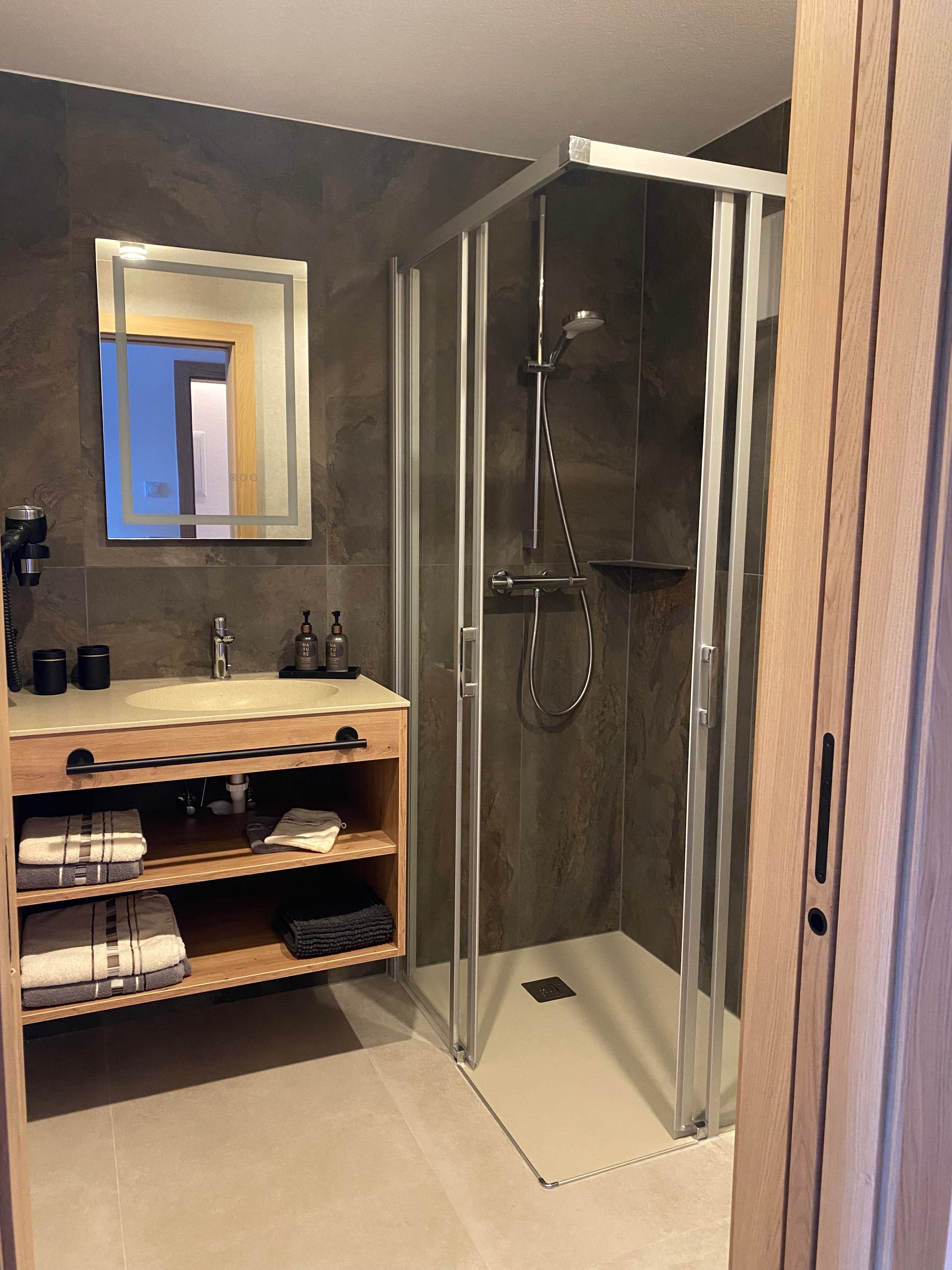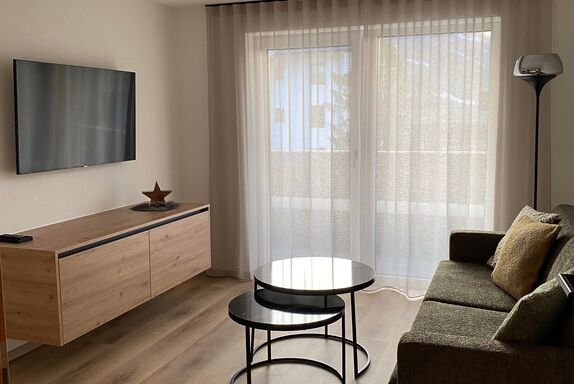 Modernes, neu renoviertes Appartement mit 2 Schlafzimmern, eigenem Wohnzimmer mit ausziehbarer Schlafcouch, gut ausgestatteter Küche, 2 Bäder, 1 seperates WC und Balkon mit Bergblick. Ideal für 2 bis 6 Personen - stilvoll und komfortabel.