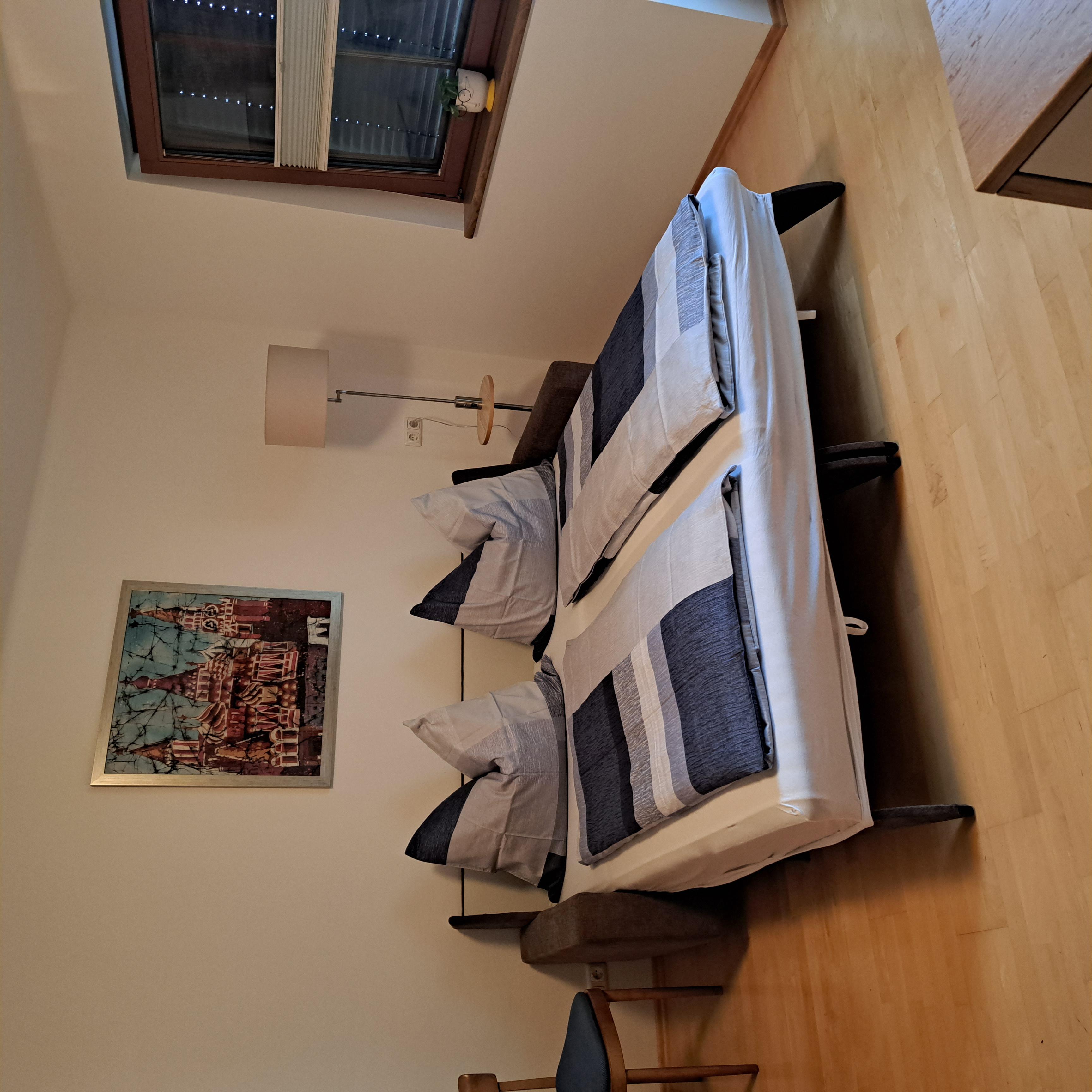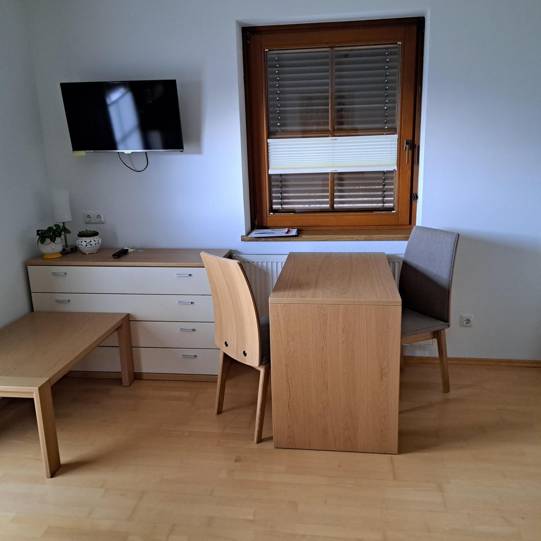 Wohn-/Schlafzimmer mit ausziehbarer Couch, Schreibtisch, Sat-TV