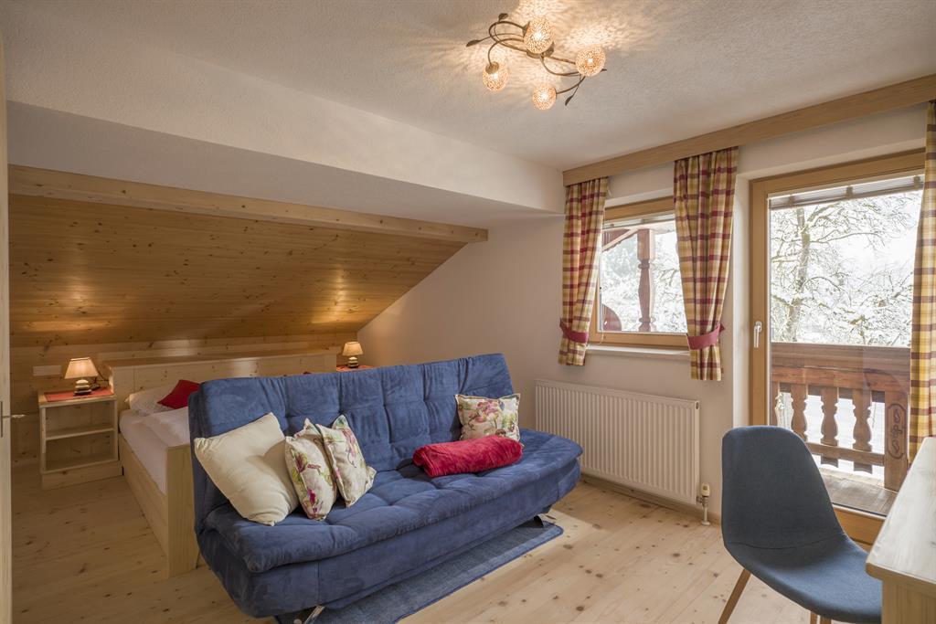 Die gemütliche Ferienwohung mit Balkon, Kabel-TV und Kochnische inkl. Geschirrspüler lädt zum Verweilen nach einer schönen Wanderung oder nach einem erlebnisreichen Skitag ein. Die Wohnung ist ideal für 2 Personen. Der Wohn- Schlafraum und ein kleines Zimmer mit getrennten Betten schaffen Platz für bis zu 4 Personen.