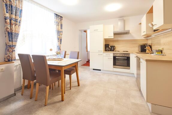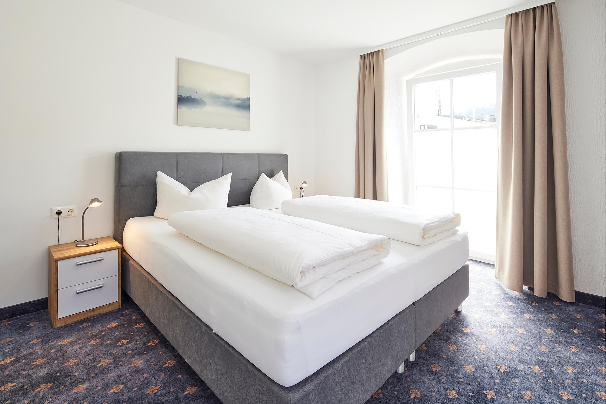 Unser Appartement Zwoa befindet sich im 1 Stock und besteht aus 2 Schlafzimmer, einer Wohnküche, einem Badezimmer und einem Balkon.