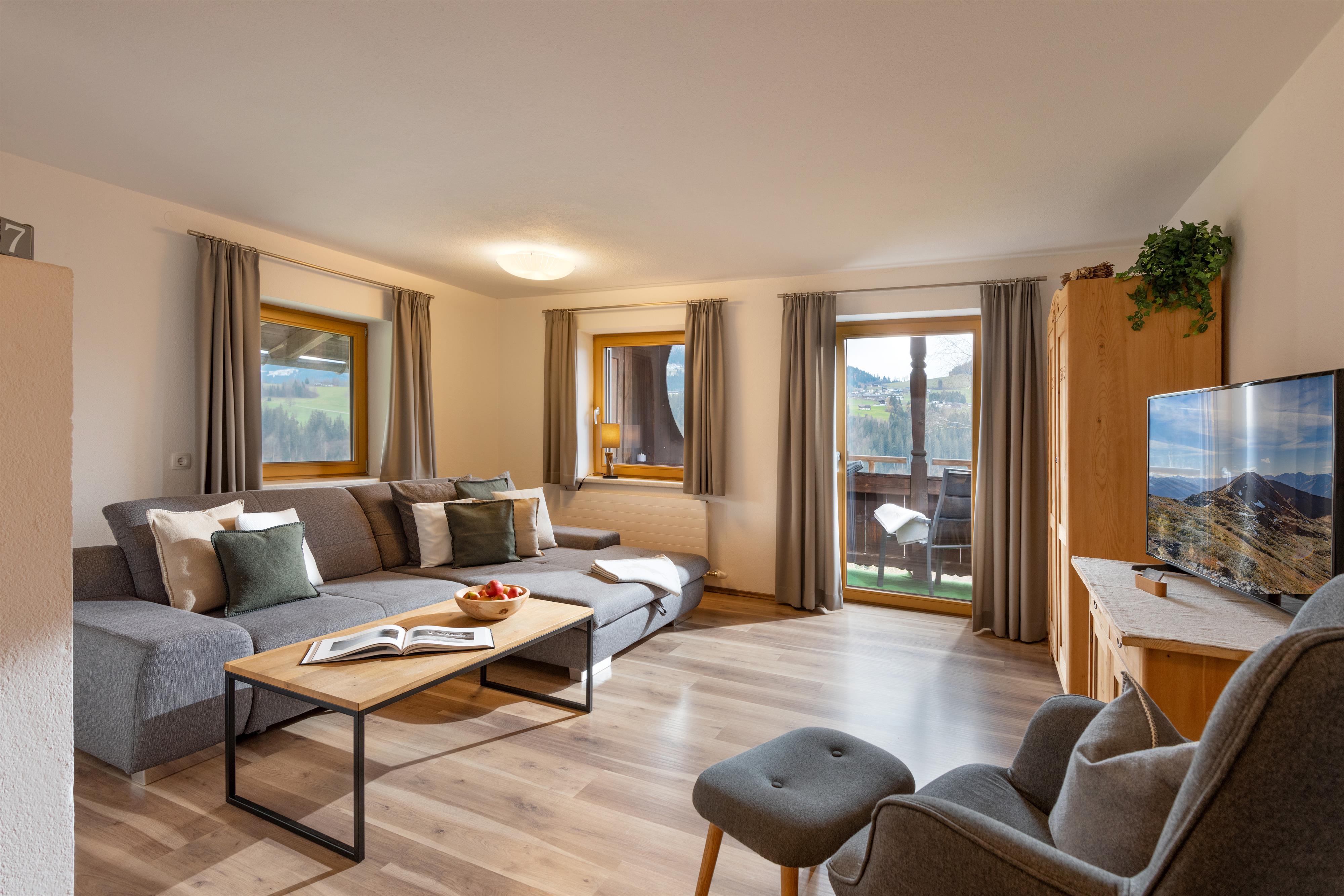 Unser alleinstehender Hof liegt in ruhiger Lage direkt hinter dem Ortskern auf der Anhöhe. Das Zentrum von Hopfgarten erreichen Sie in 5 Gehminuten. In unmittelbarer Nähe befinden sich Lebensmittelgeschäfte, eine Apotheke, Banken und ein Postamt. Mobilität wird in der Region Hohe Salve groß geschrieben, in Ihrer Gästekarte sind Zug und Bus inklusive.