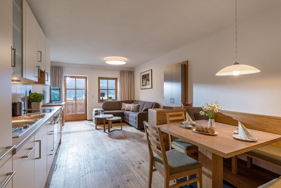 Die helle Wohnung mit Balkon befindet sich im 1. Stock unseres Bauernhauses. Sie verfügt über 1 Wohn-Schlafraum (kein separates Schlafzimmer) mit voll ausgestatteter Küche, einem Bad mit Dusche und WC. Das Appartement lädt zum Ausspannen ein. SAT-TV und WLan sind inklusive.