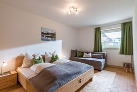 Unser Appartement Alpenrose mit ca 90² im Erdgeschoss bietet Platz für bis zu 6 Personen. Verfügt über helle Räume, eine Terrasse und Garten mit Kinderspielplatz. Es verfügt über 2 Schlafzimmer mit Doppelbetten, einer Wohnküche mit ausziehbarer Schlafcouch, einem Badezimmer und zwei WC.